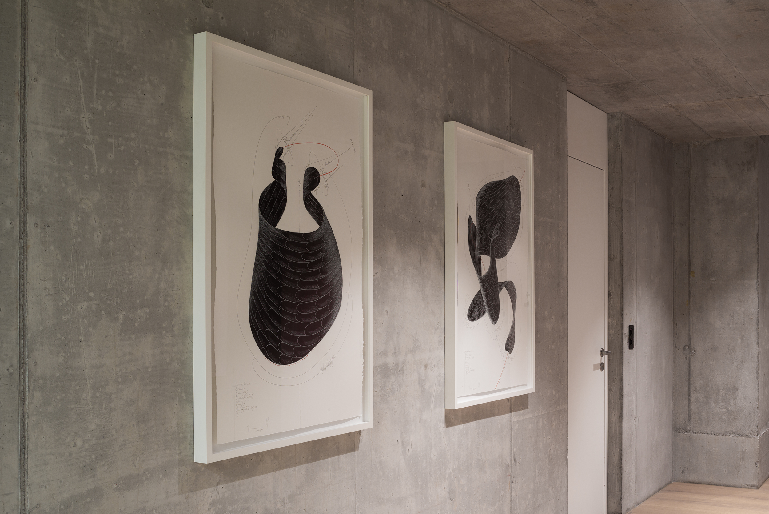 Works on View: Triade 4, Dyade 02, Dyade 04, Dyade 11, Dyade 12, The Sum of All Best Practices (I,III,X), H.Schmitz: Intensität, Atmosphären + Musik (1,2,3,6, 11, 14, 16), Synchronisity V, Inherited Desire (2, 4, 8, 10), Heart, Cocoon