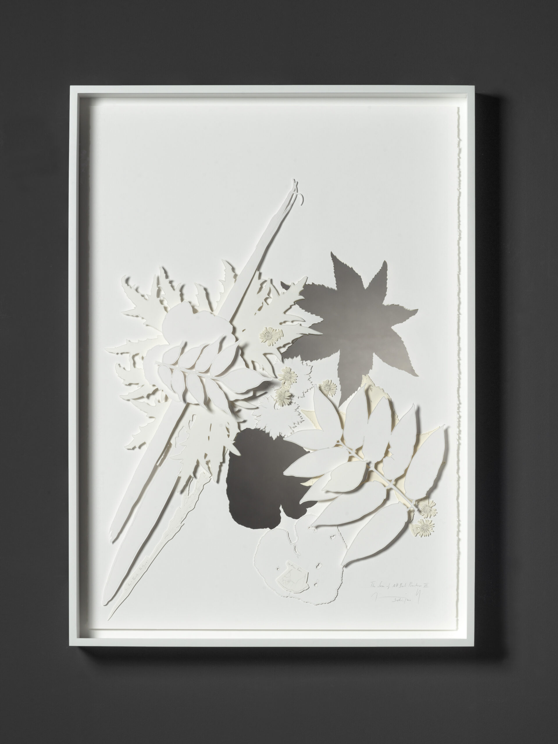 In the exhibition 2.0 featuring Jorinde Voigt and Xiyadie, paper transcends its two-dimensional origin and becomes the silent narrator of tales of delicacy, rebellion, and existence. The title of the show has several meanings: It refers to the exhibition being the first one in P Two One Gallery’s new space called 2.0, to the fact that the exhibition presents two artists, as well as to the binary symbolism of the numbers – 2 representing existence and material and 0 representing absence or the subconscious. The overlap of the artists practices is predominately their use of material but presenting them alongside one another brings out conceptual parallels too, allowing alternate readings of each artist’s work. For both of them, the fragility of each cut or fold becomes a poetic maker of time, capturing moments in the creation of the artwork. Jorinde Voigt and Xiyadie also share an exploration of ecological representation. Voigt’s abstractions featuring tree leaves converse with Xiyadie’s organic masses infused with fauna and flora, with paper at the center of their works becoming a conduit for the interconnectedness of life.