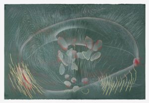 Cutting Loops VII, Jorinde Voigt, Berlin 2017, 100 x 140 cm, Tinte, Tusche, Blattgold, Pastell, Ölkreide, Bleistift auf Papier, Unikat, Signiert