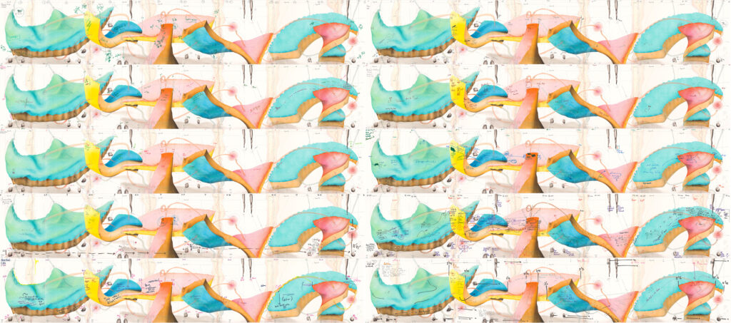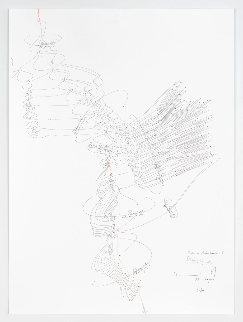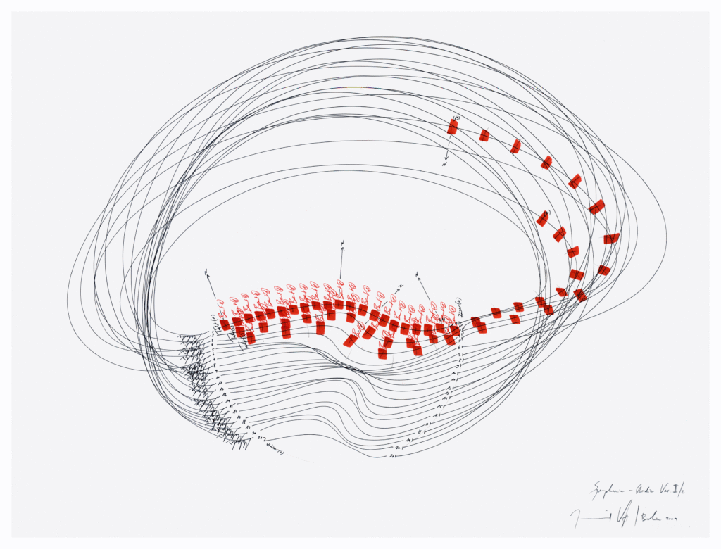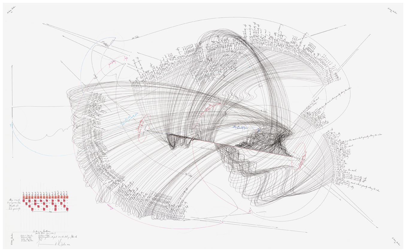 on view: Symphonie Studie Var. IV/2, Jorinde Voigt, Berlin 2009, Tinte, Bleistift auf Papier, 46 x 61 cm, Unikat, and other Symphonie Studies