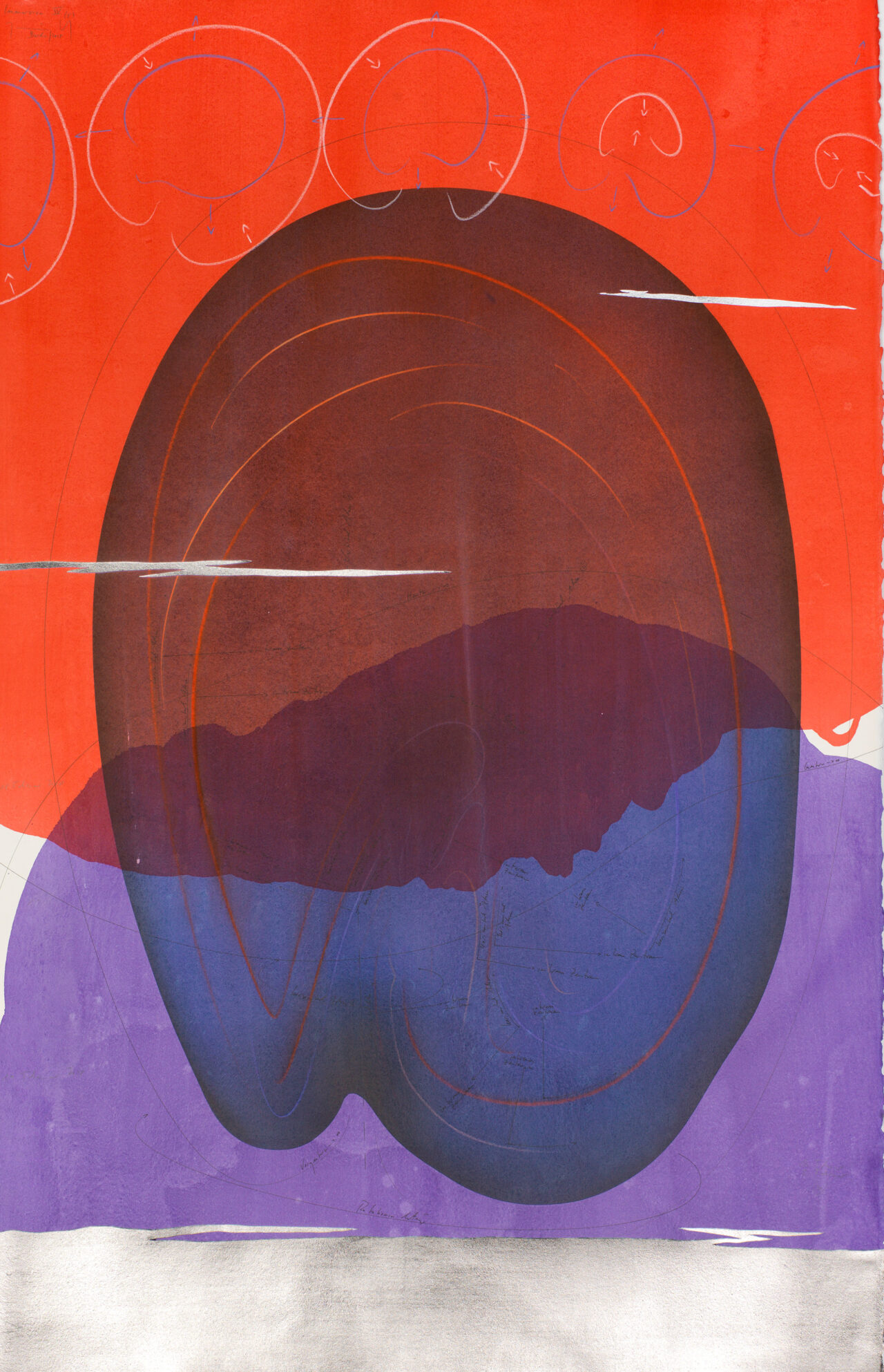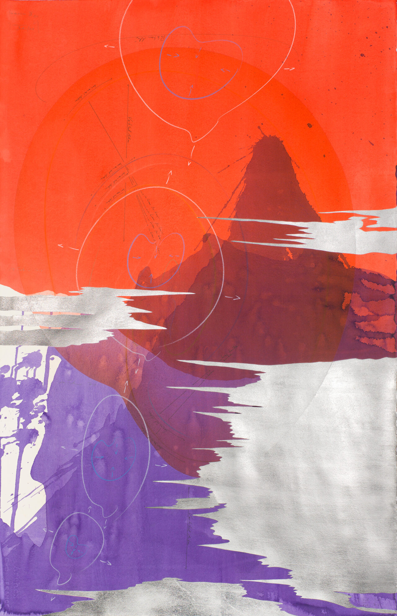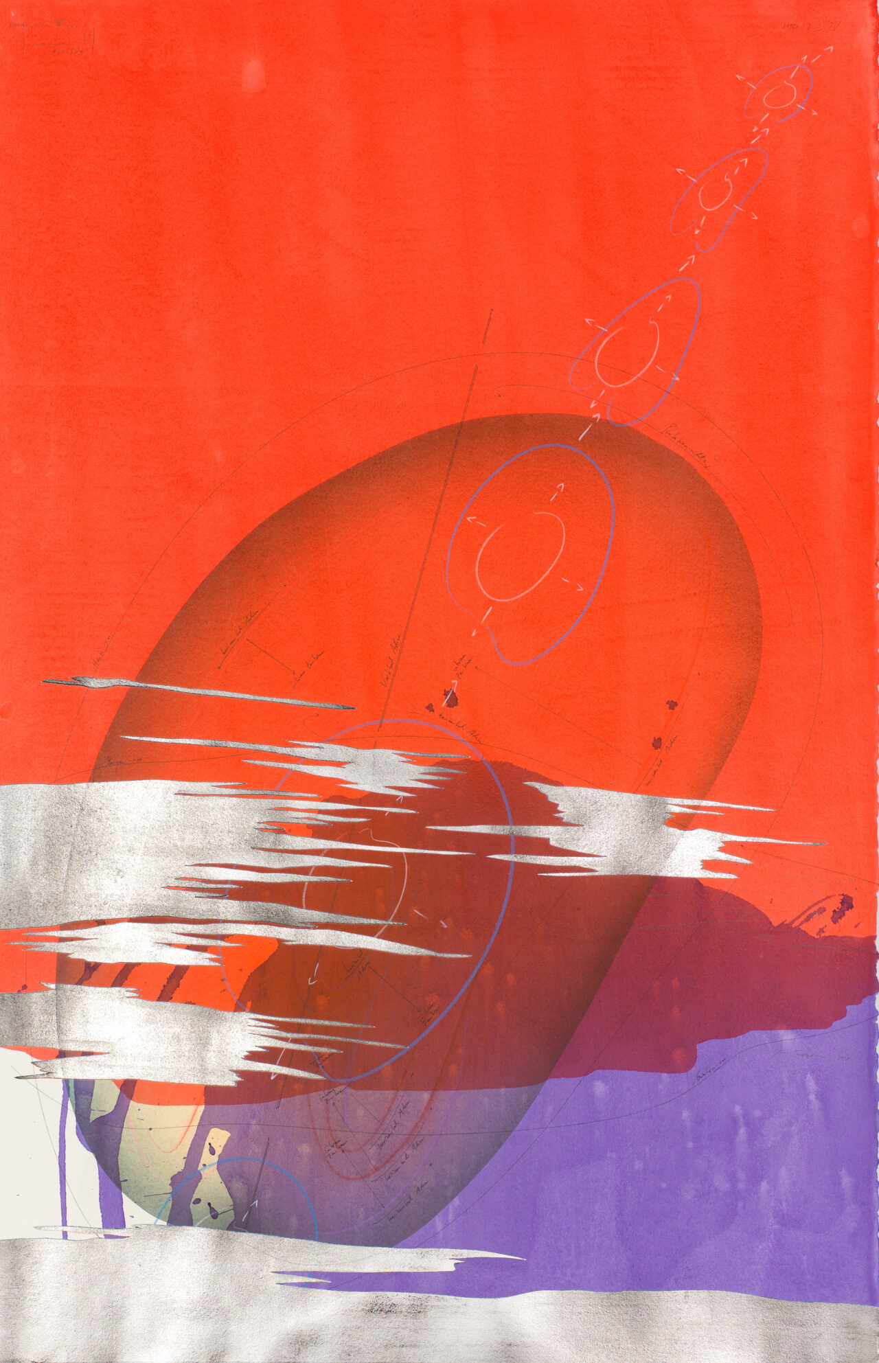 Ink, India ink, aluminium leaf, pastels, oil chalks, graphite on paper, unique, signed