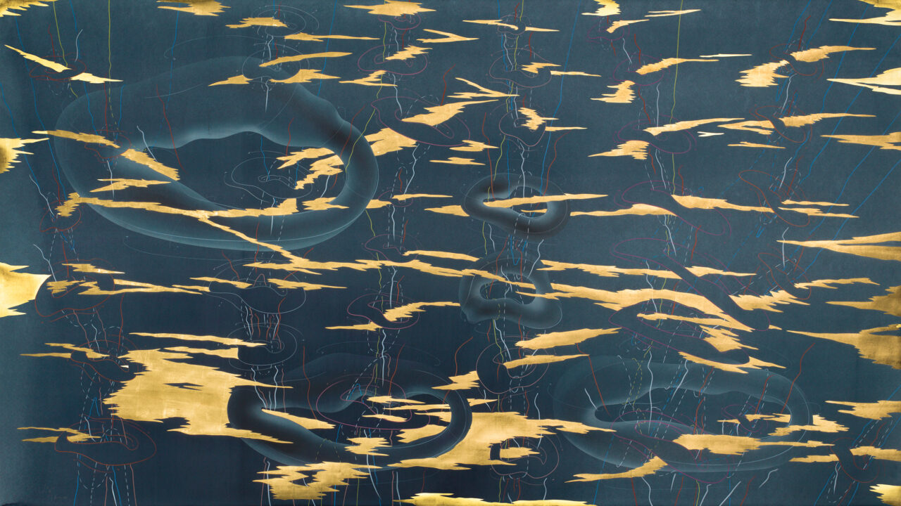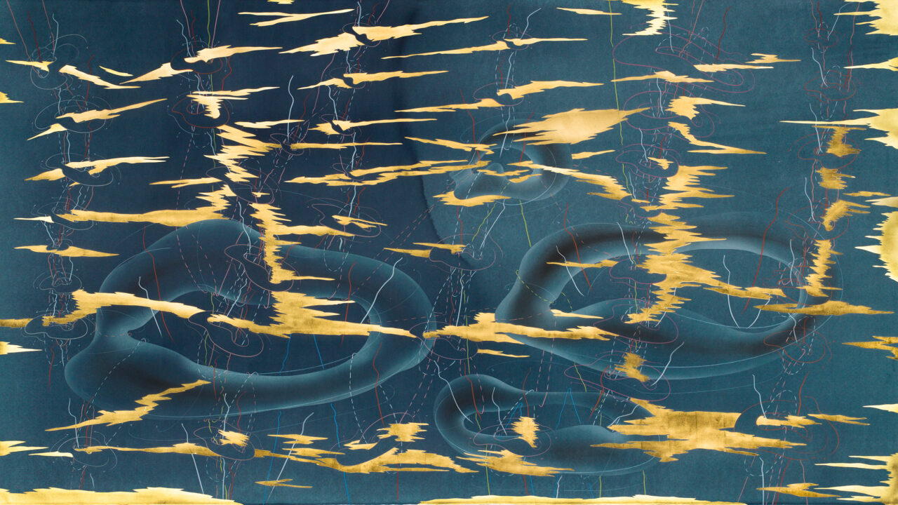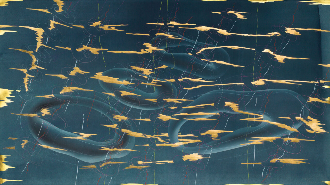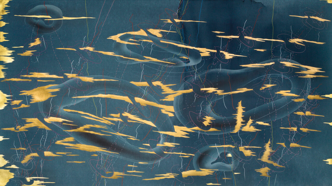 Ink, India ink, gold leaf, pastels, oil chalks, pencil on paper, unique work, signed
