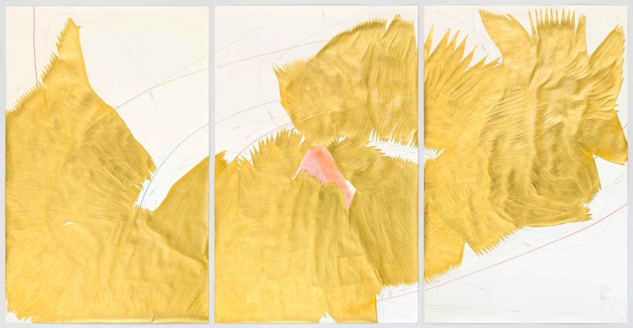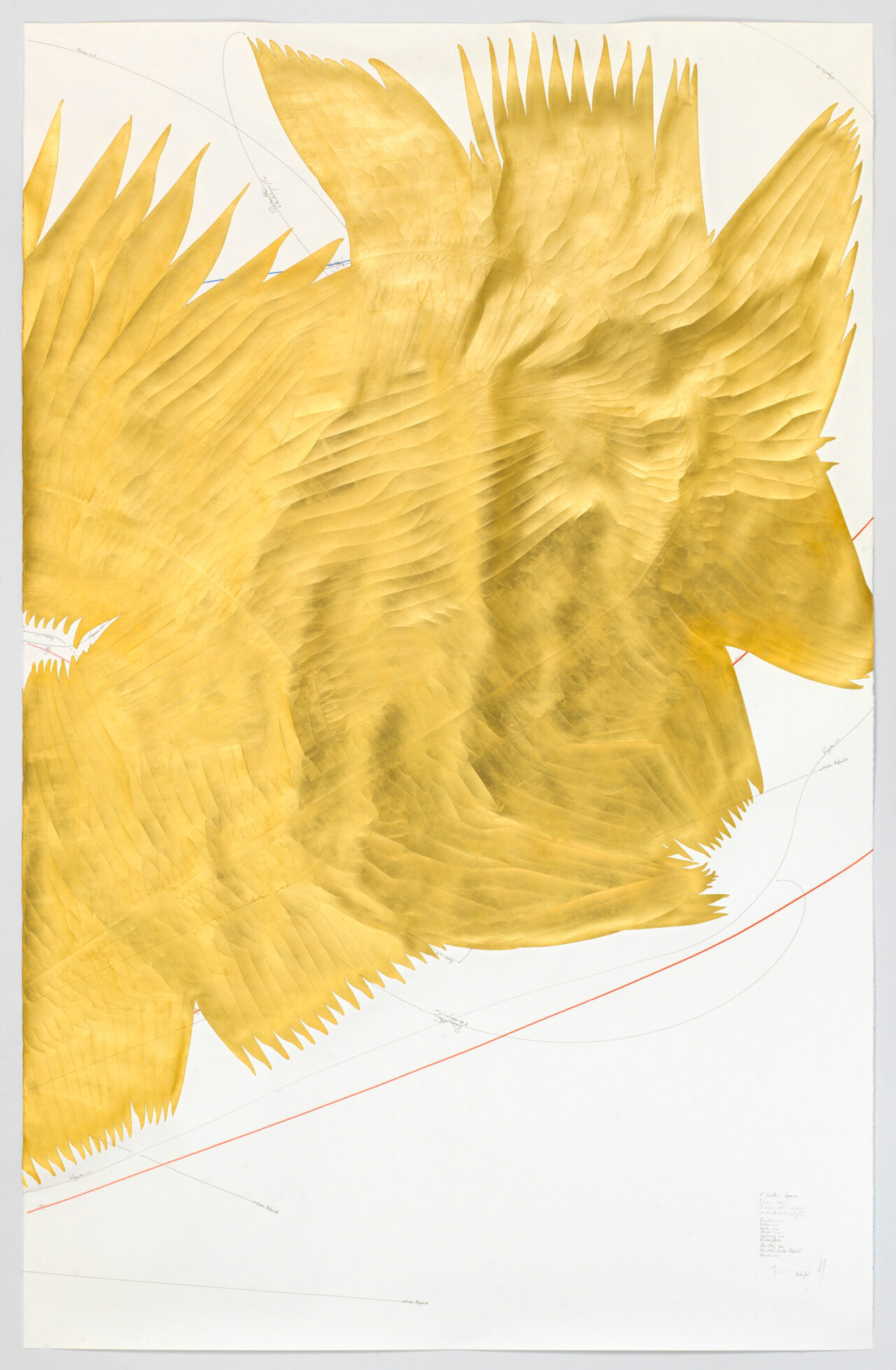 Ink, gold leaf, oil chalks, pastels, pencil on paper, unique, signed