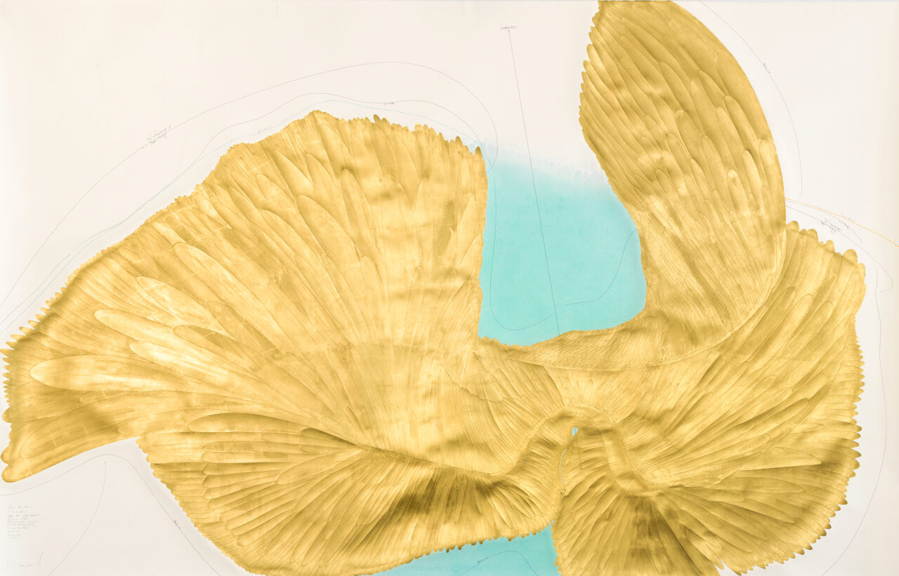 Ink, oil chalks, gold leaf, pastels, pencil on paper