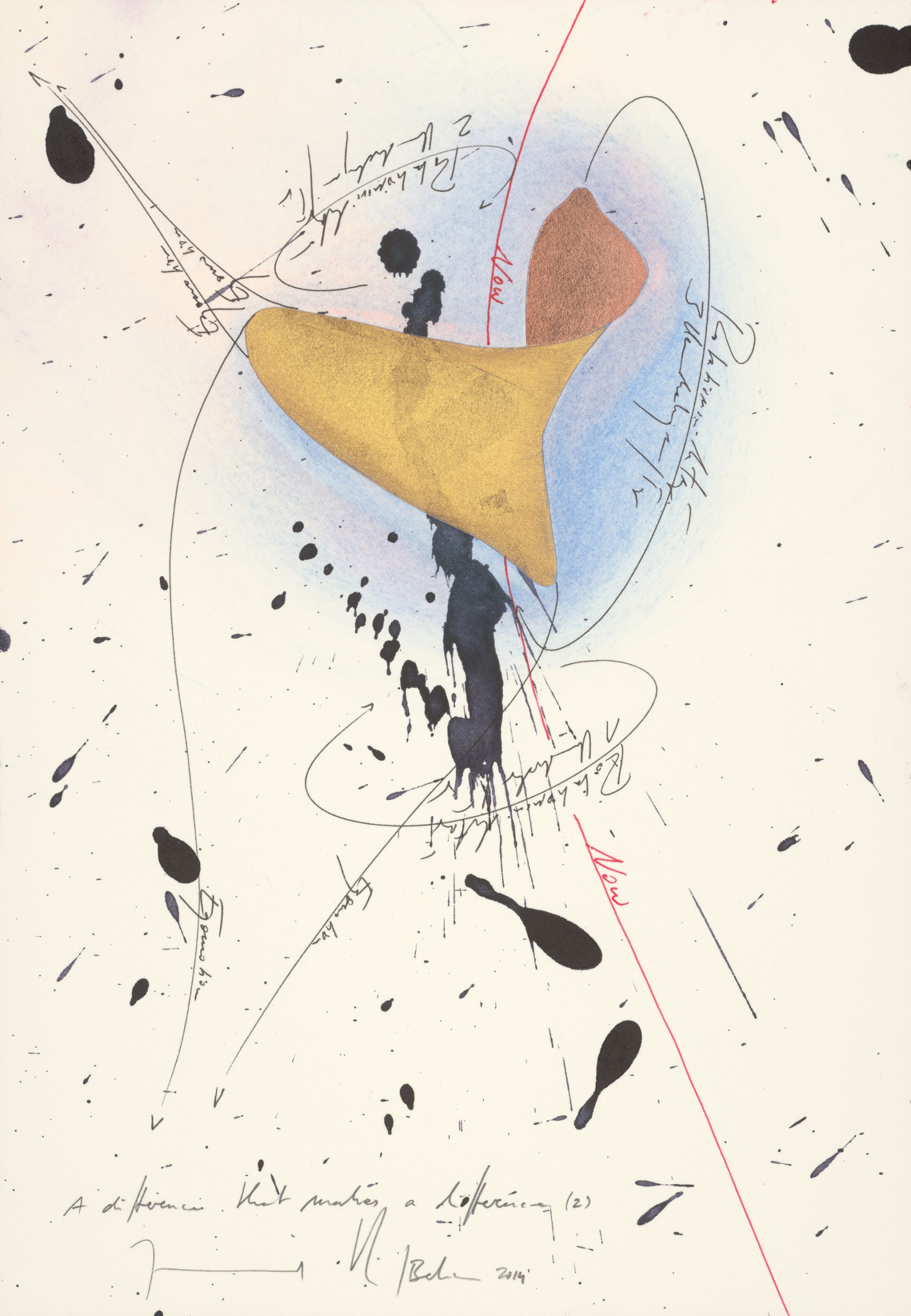 Ink, gold leaf, pastels, graphite on paper, unique, signed