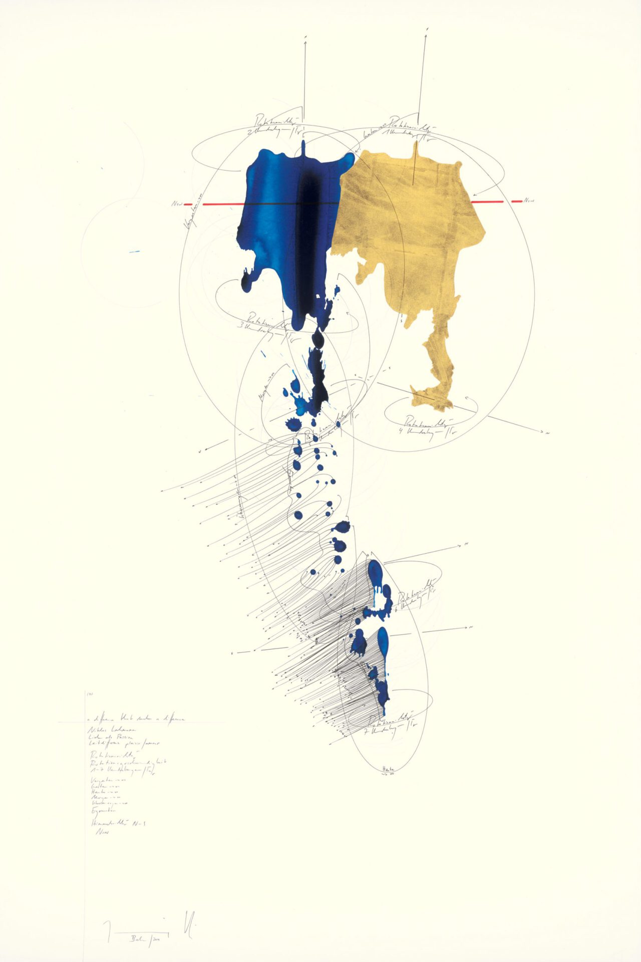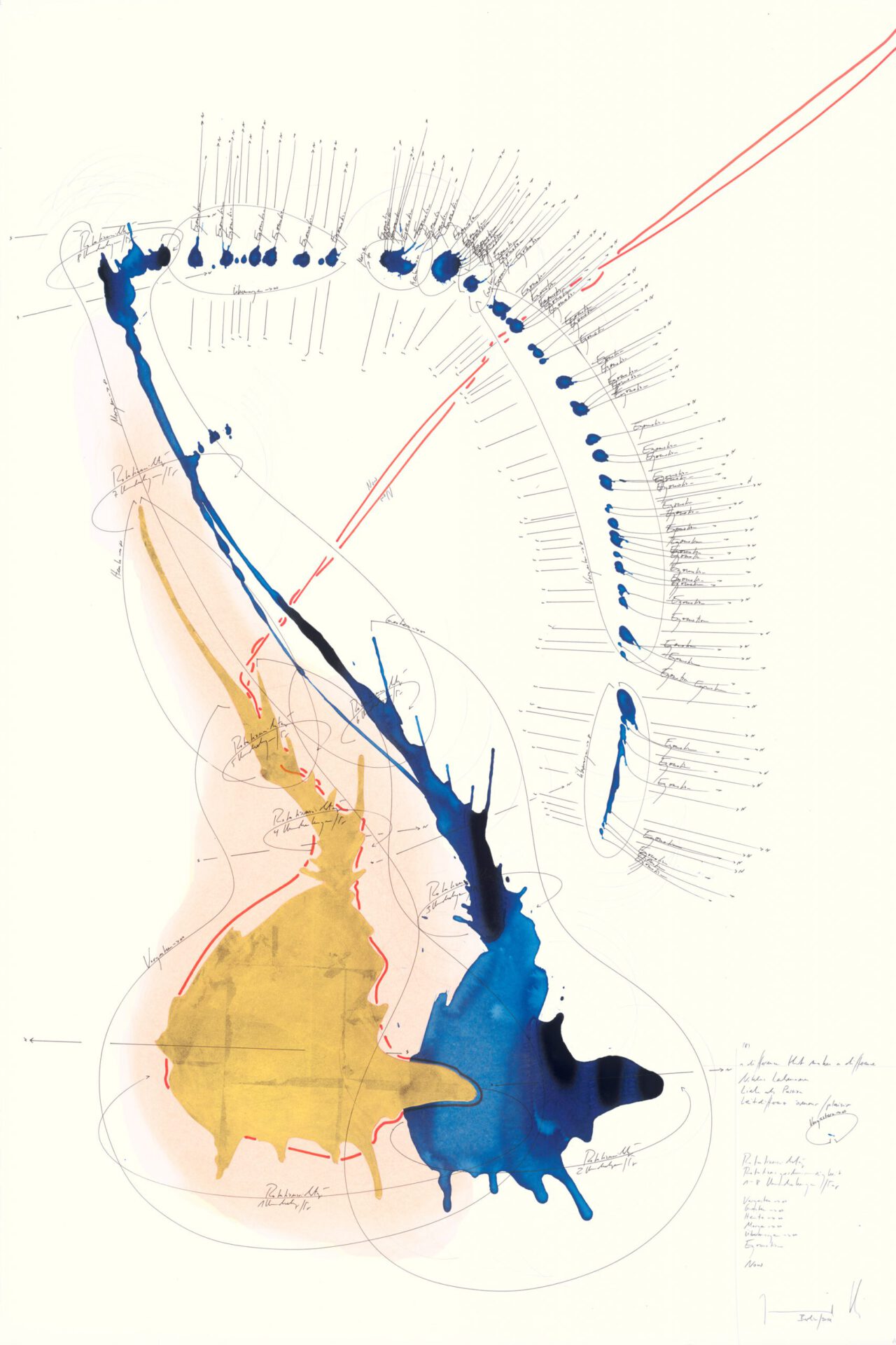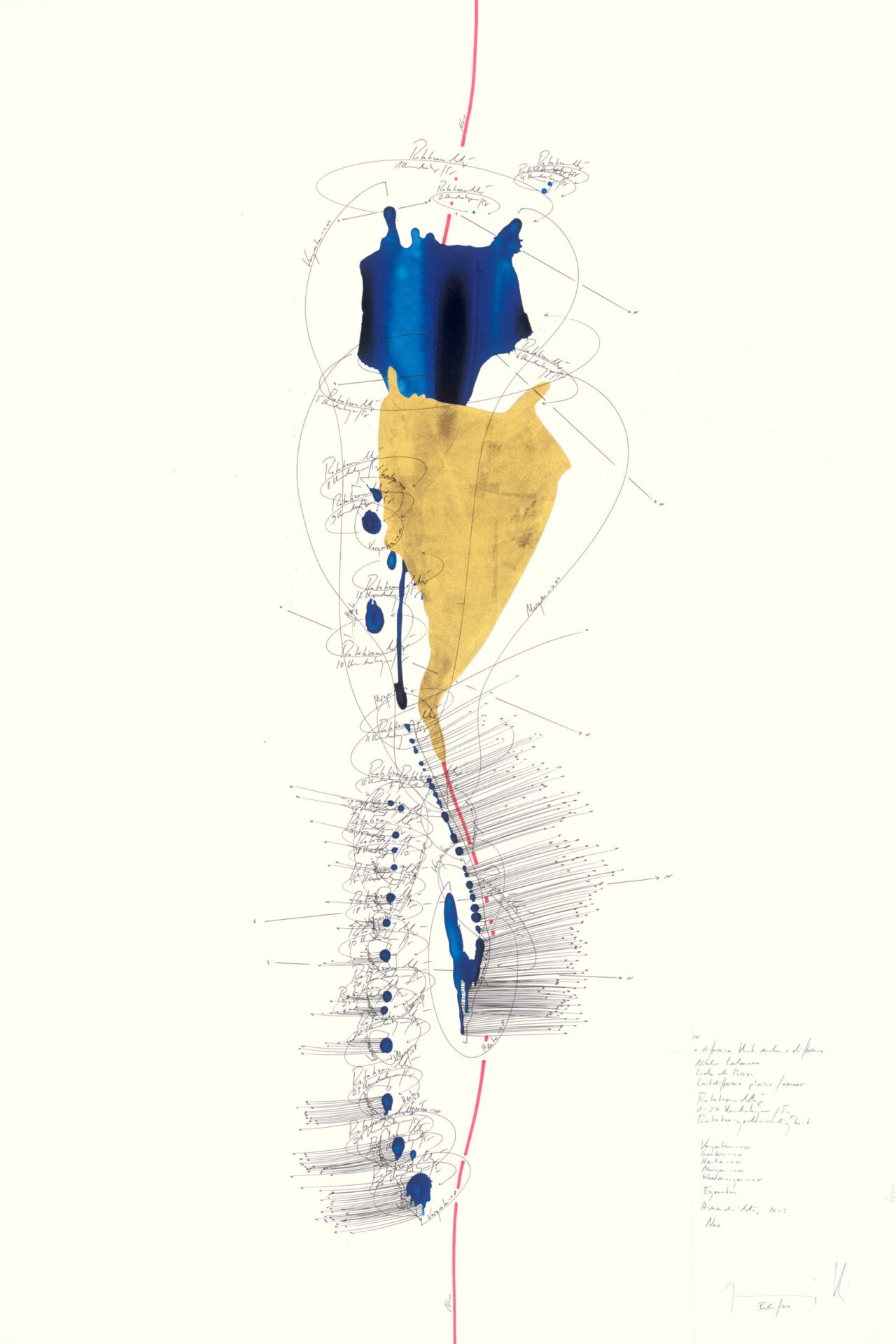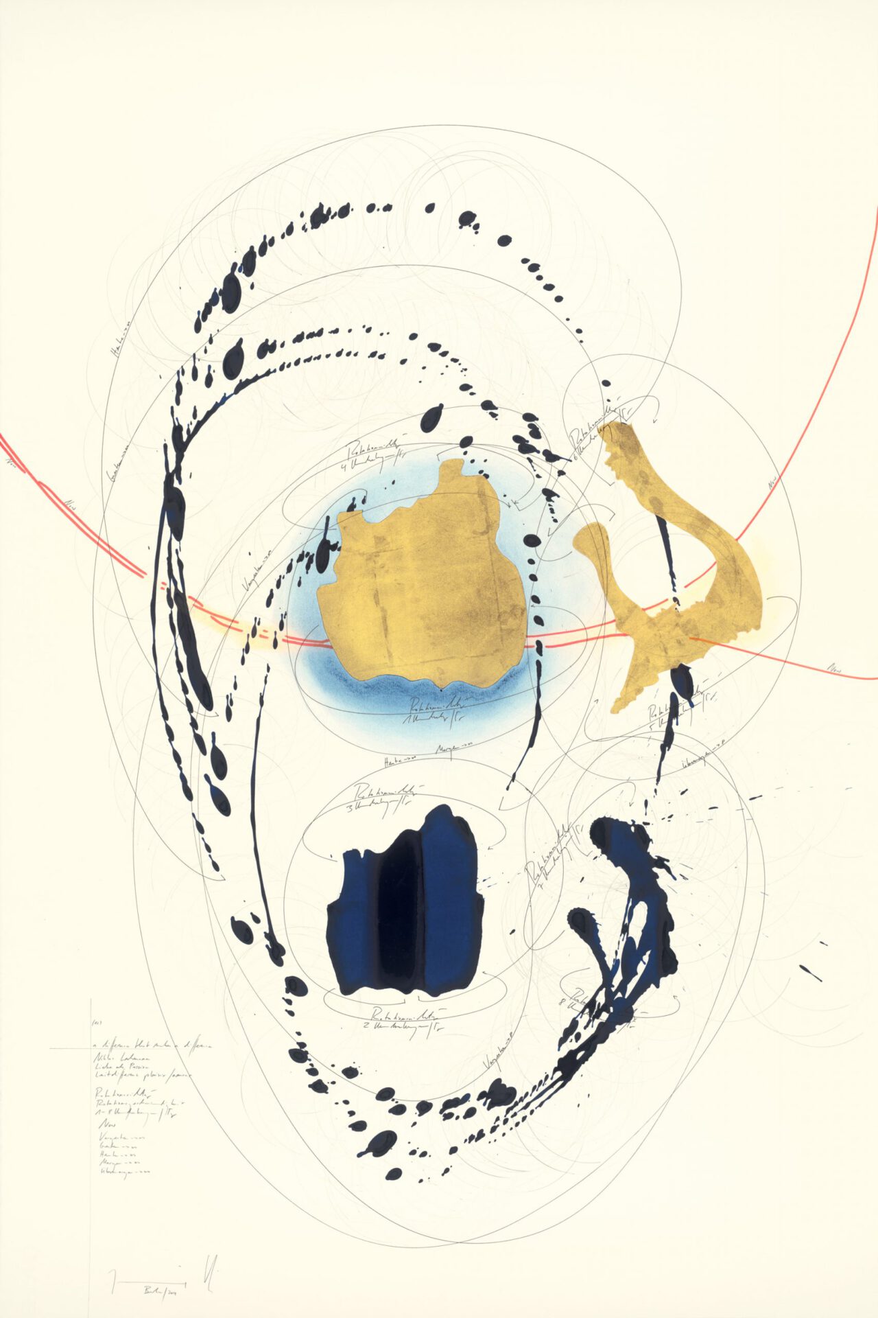 Ink, copper leaf, graphite, pastels, oil chalks, unique, signed