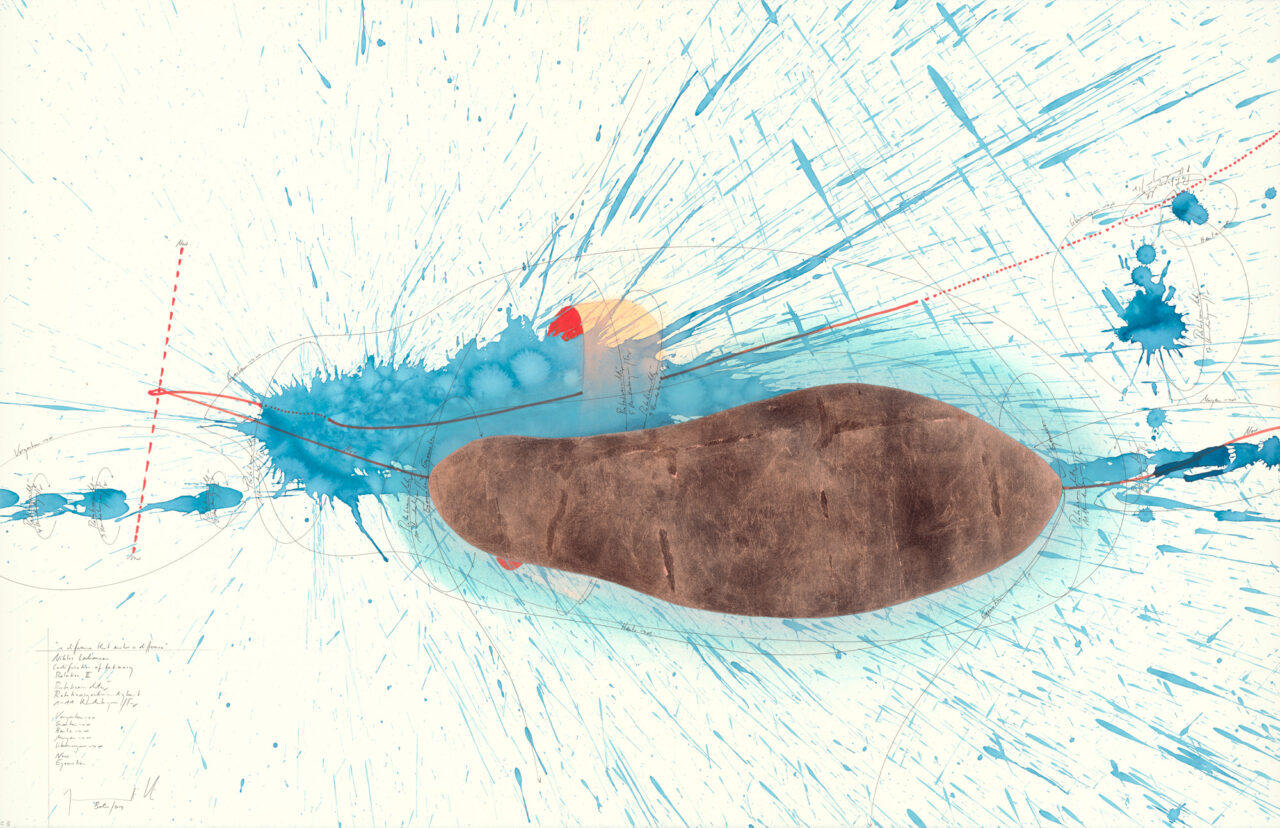 Tinte, Blattgold, Bleistift auf Papier, Unikat, signiert