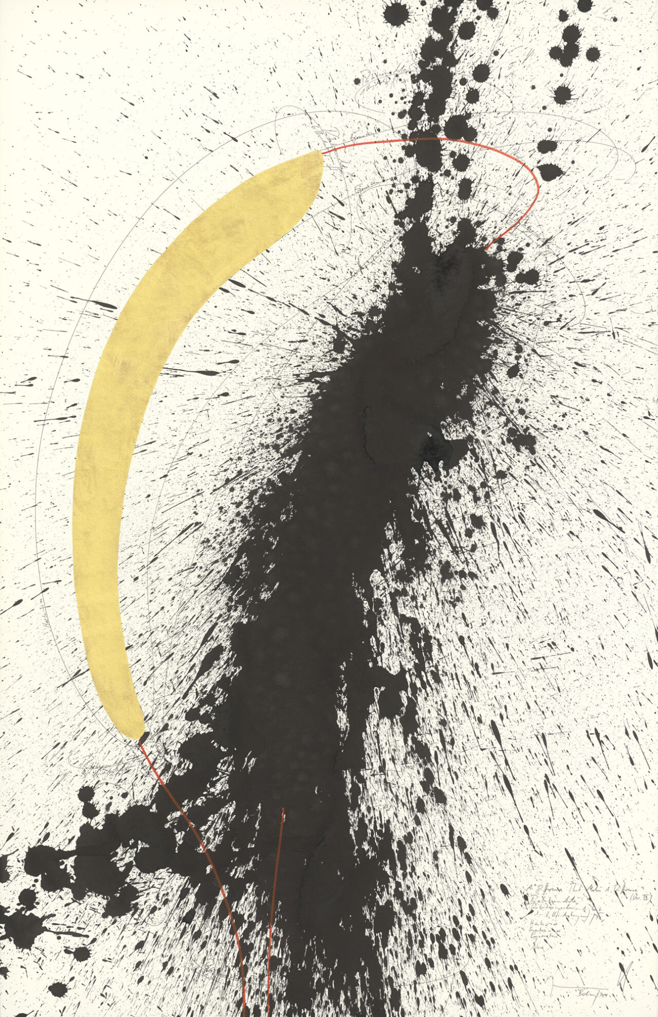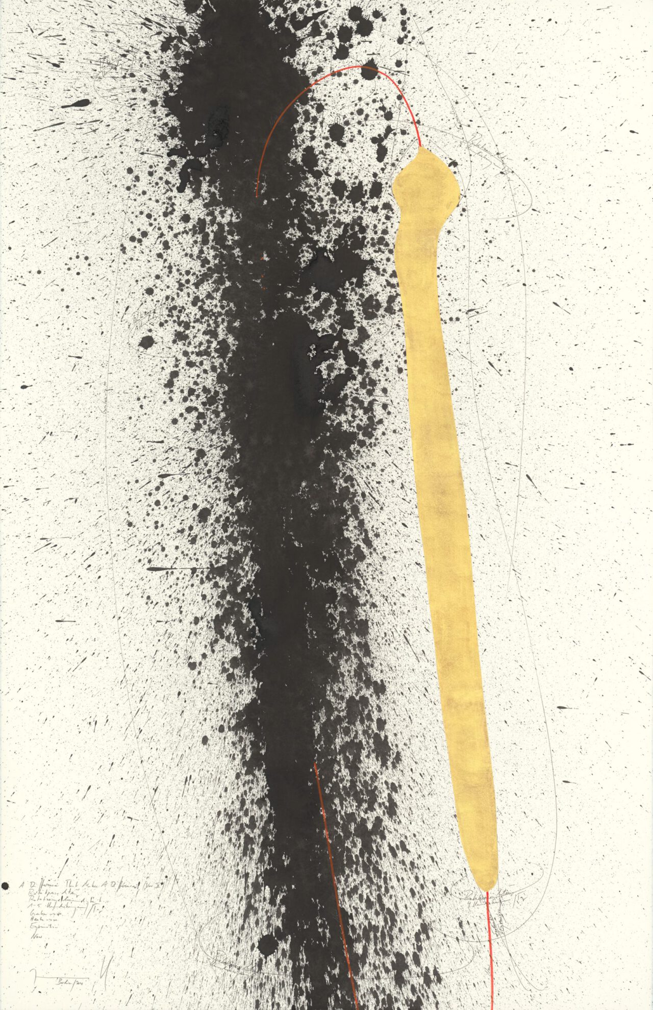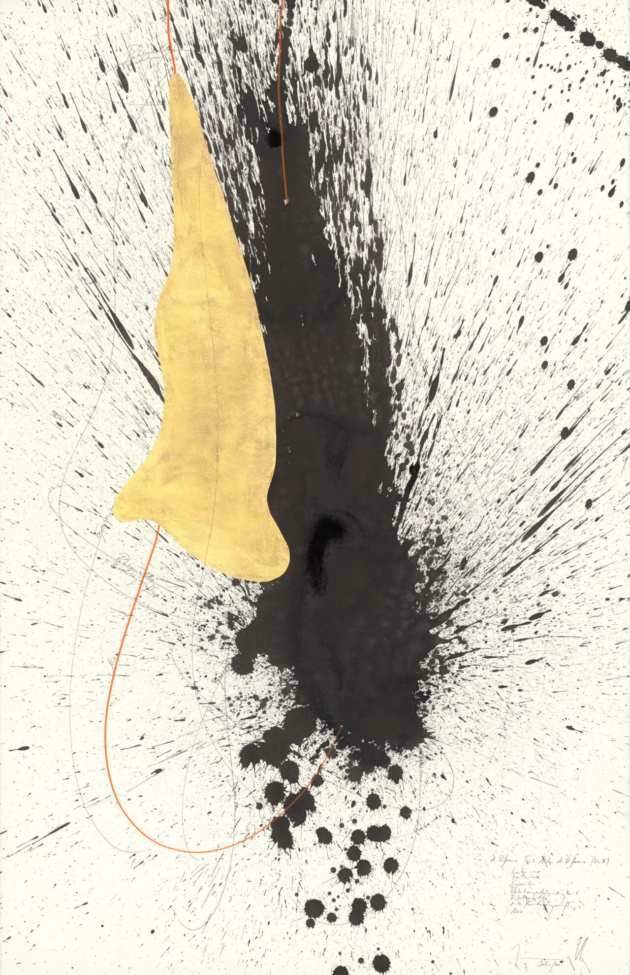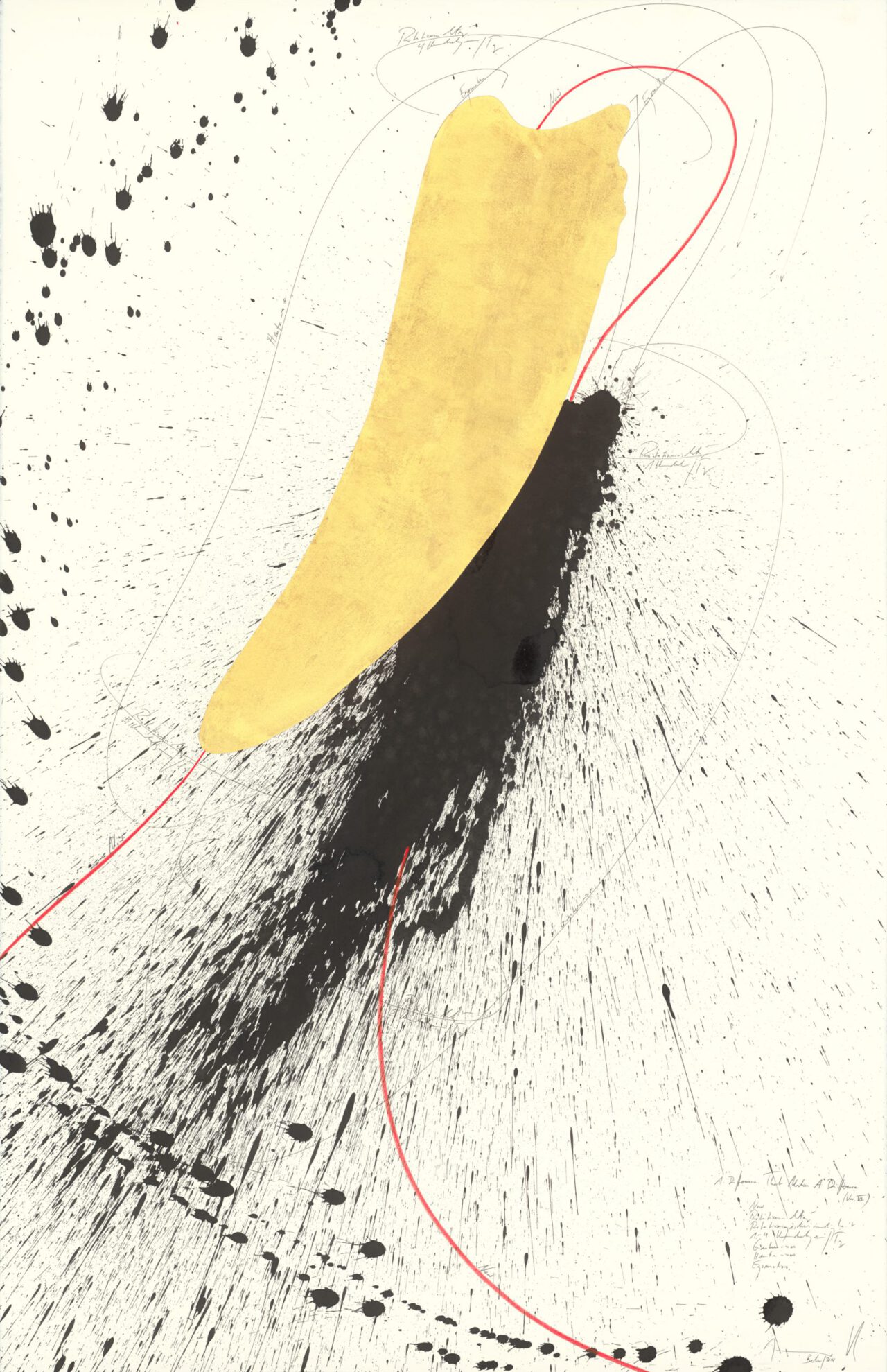 Ink, China ink, gold leaf, oil chalks, graphite on paper, mounted on canvas, unique, signed