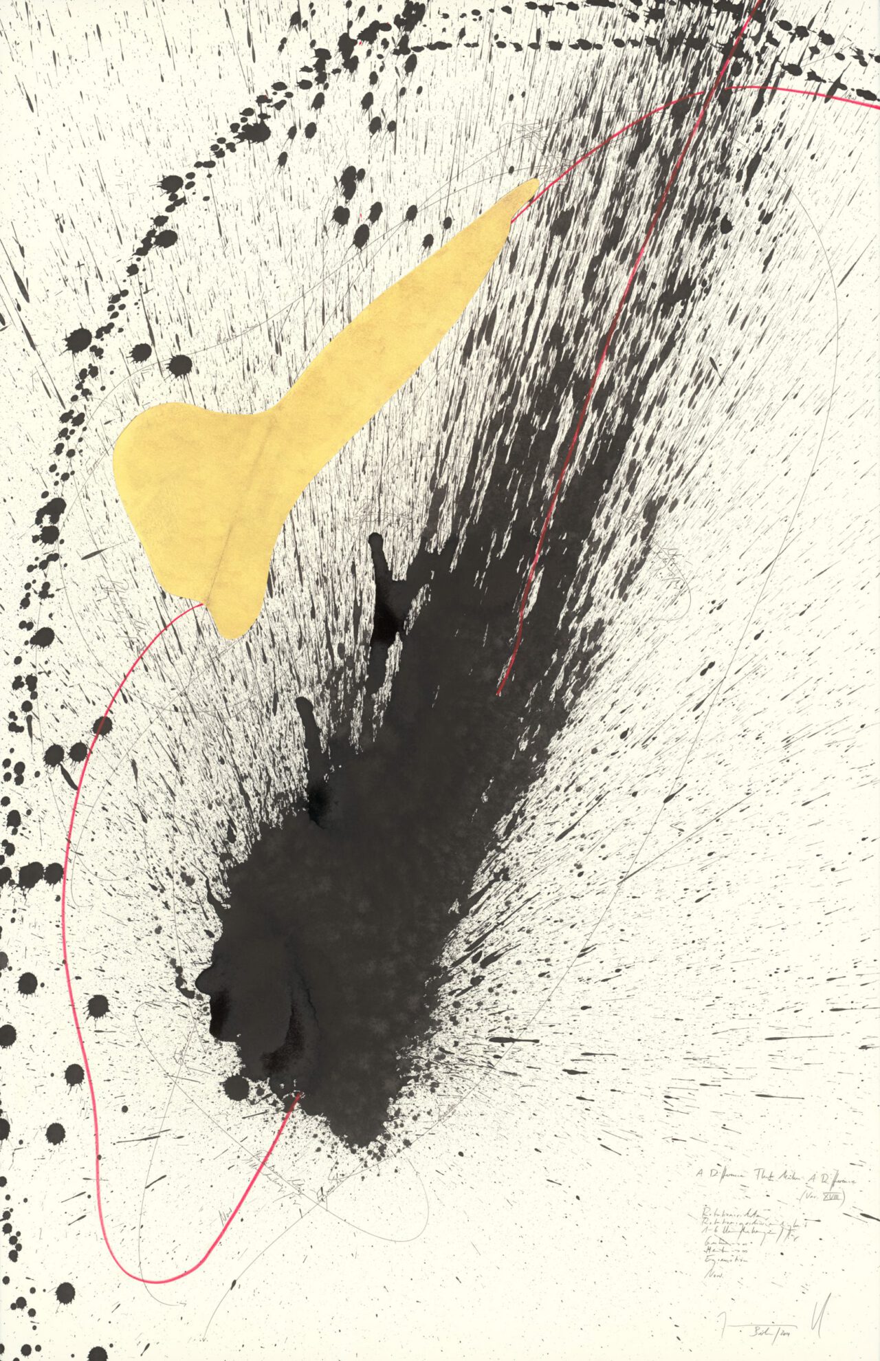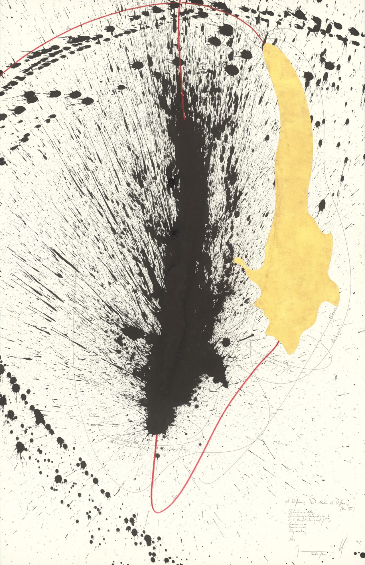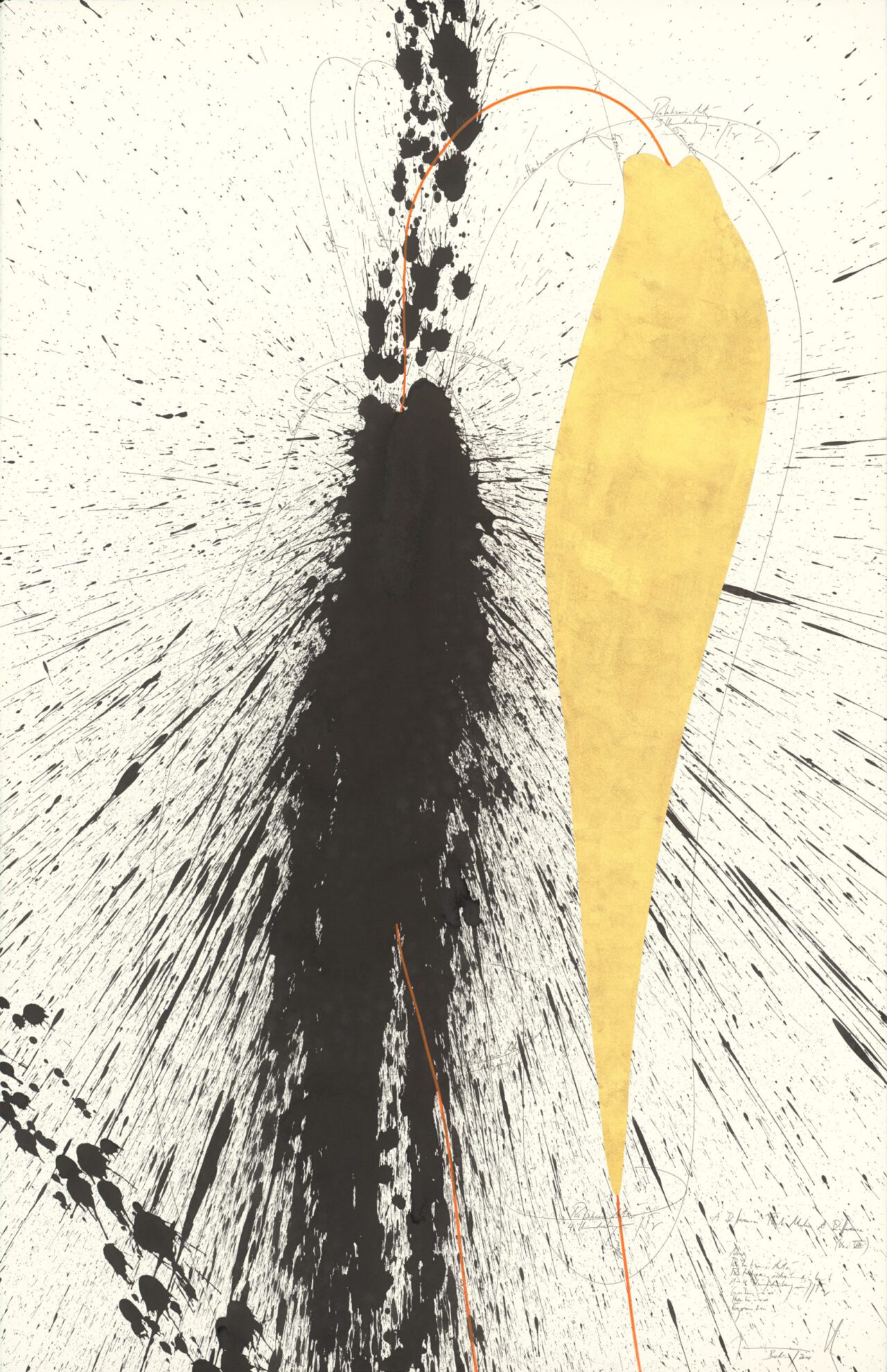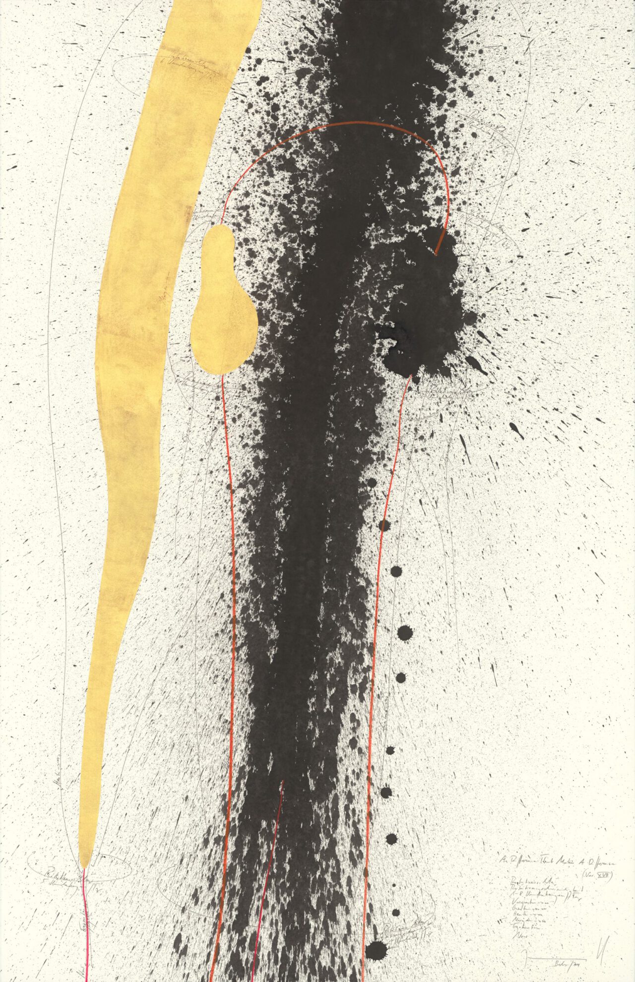 Ink, China ink, gold leaf, oil chalks, graphite on paper, mounted on canvas, unique, signed