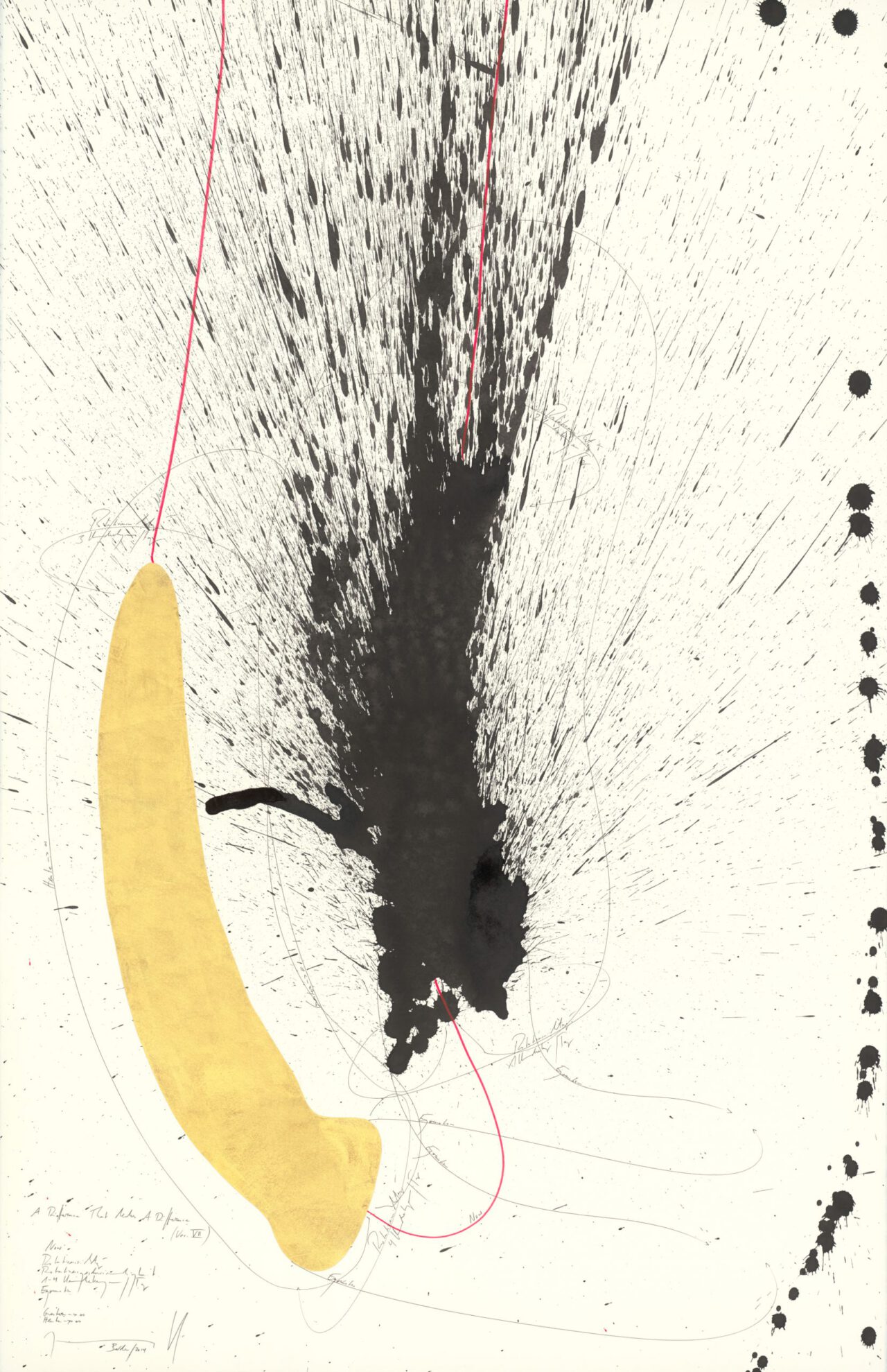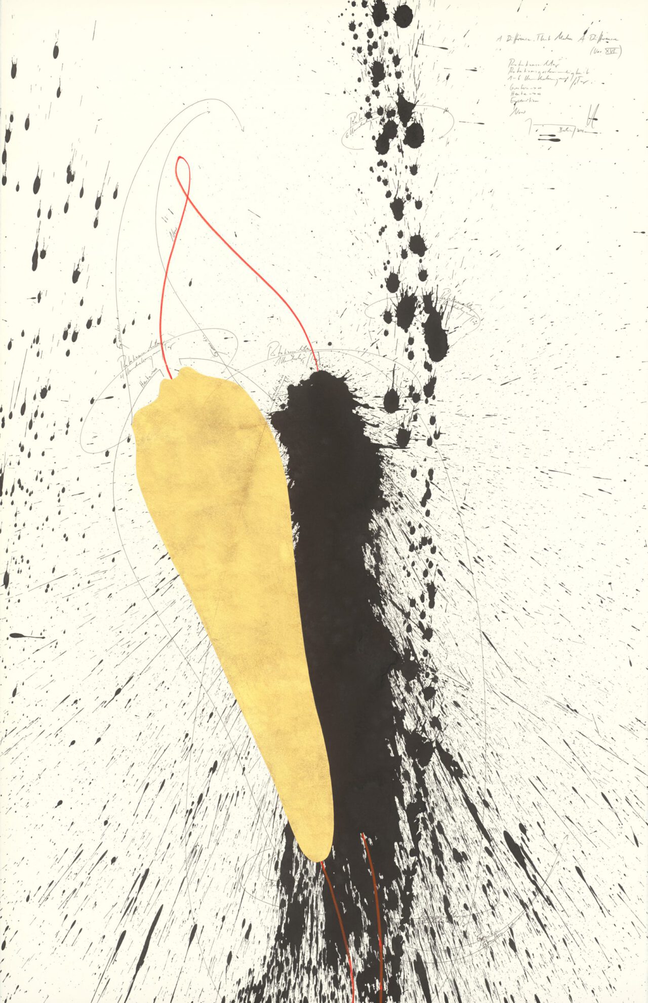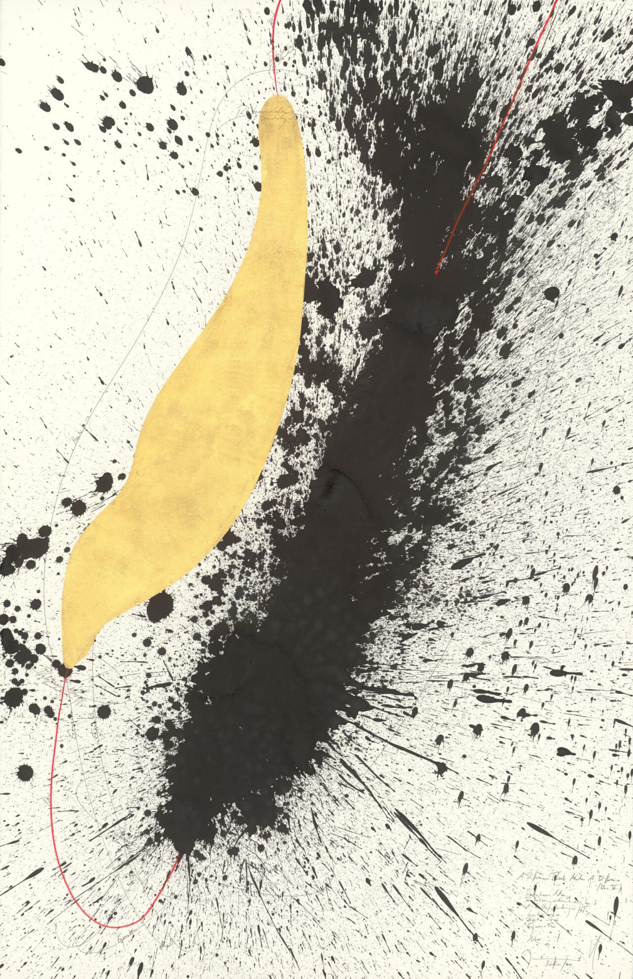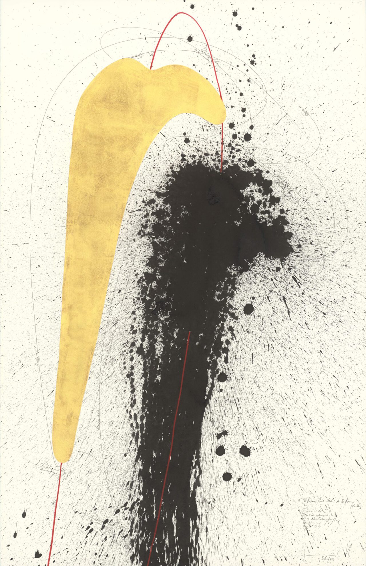 Ink, China ink, gold leaf, oil chalks, graphite on paper, mounted on canvas, unique, signed