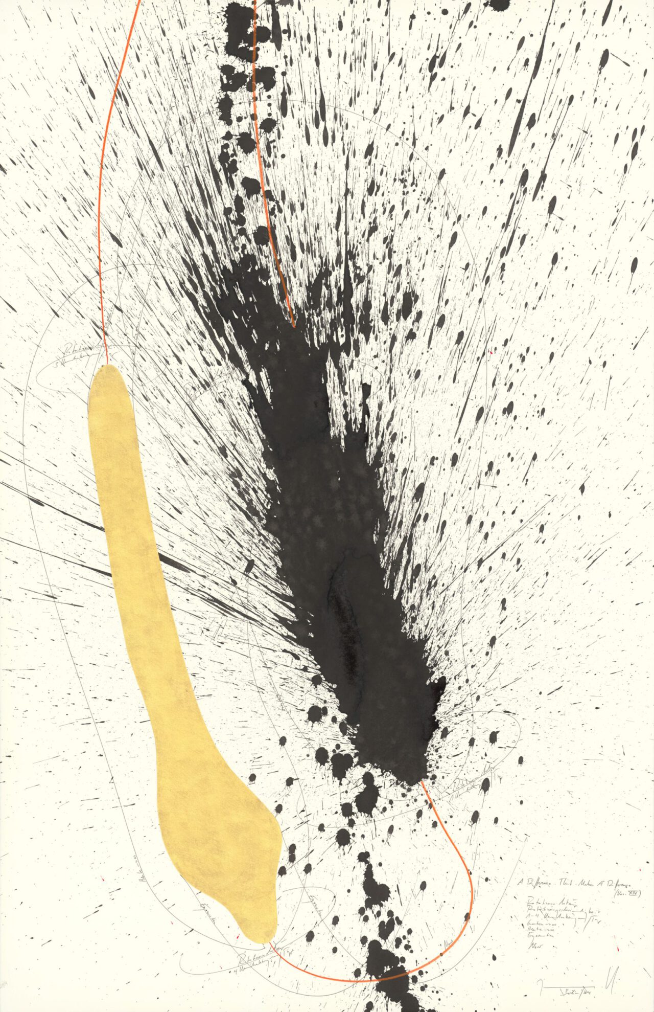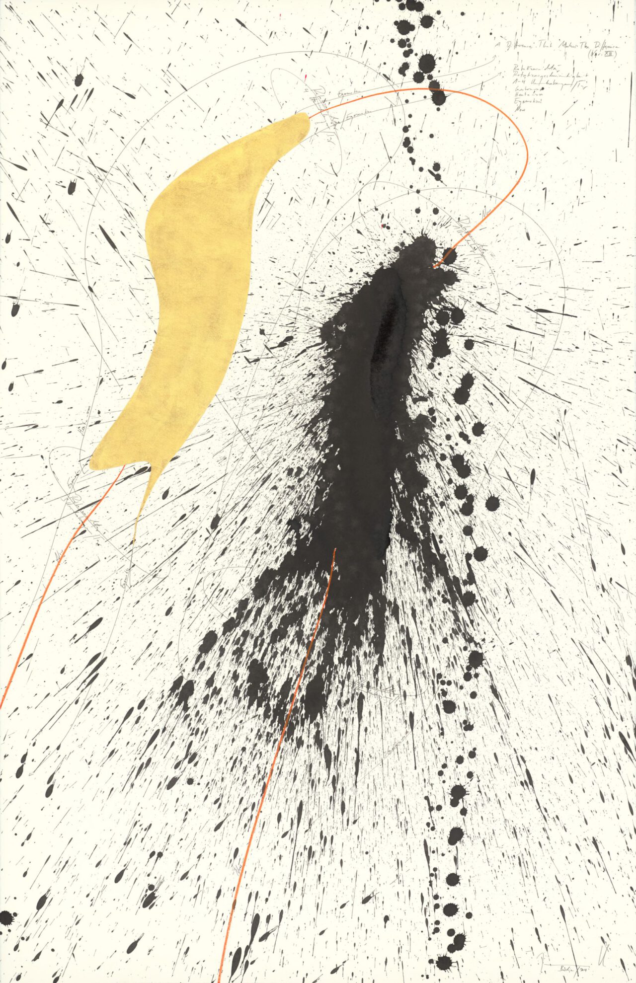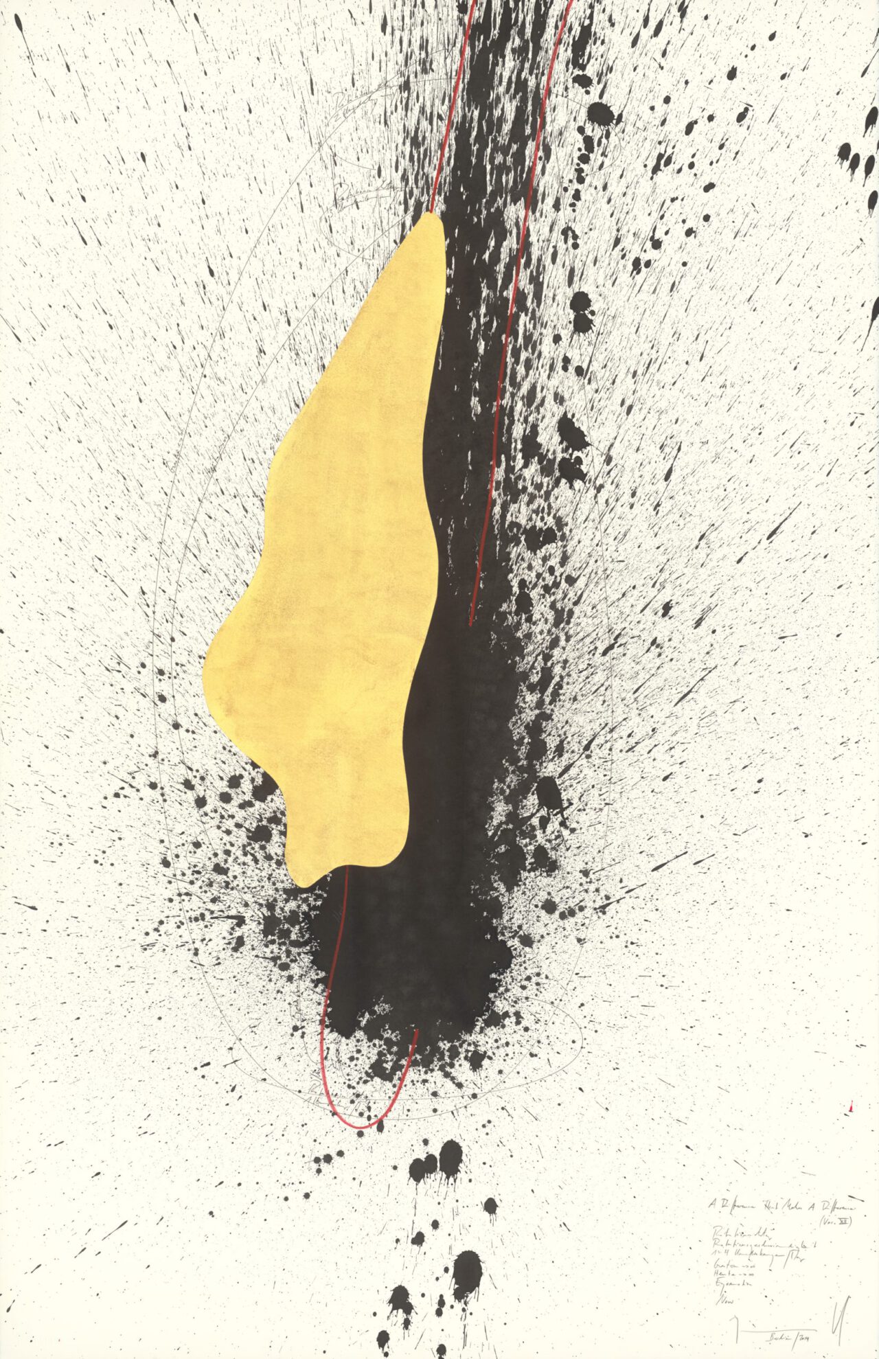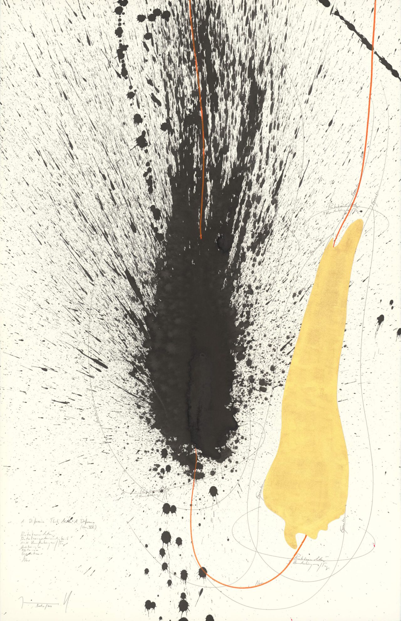 Ink, China ink, gold leaf, oil chalks, graphite on paper, mounted on canvas, unique, signed