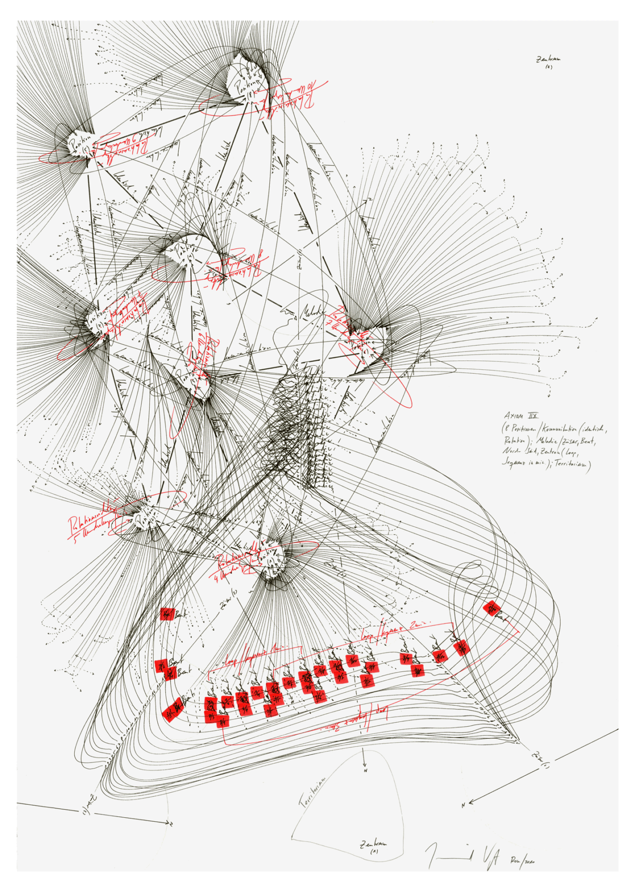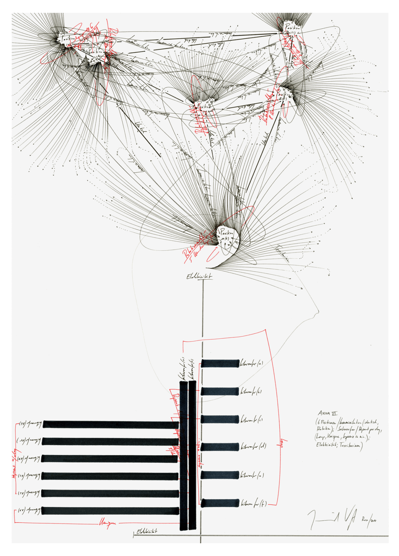 (1 Position / Kommunikation (identisch, Rotation); 1 Position / Supersymmetrie / N-S; Elektrizität, Zentrum, Territorium)