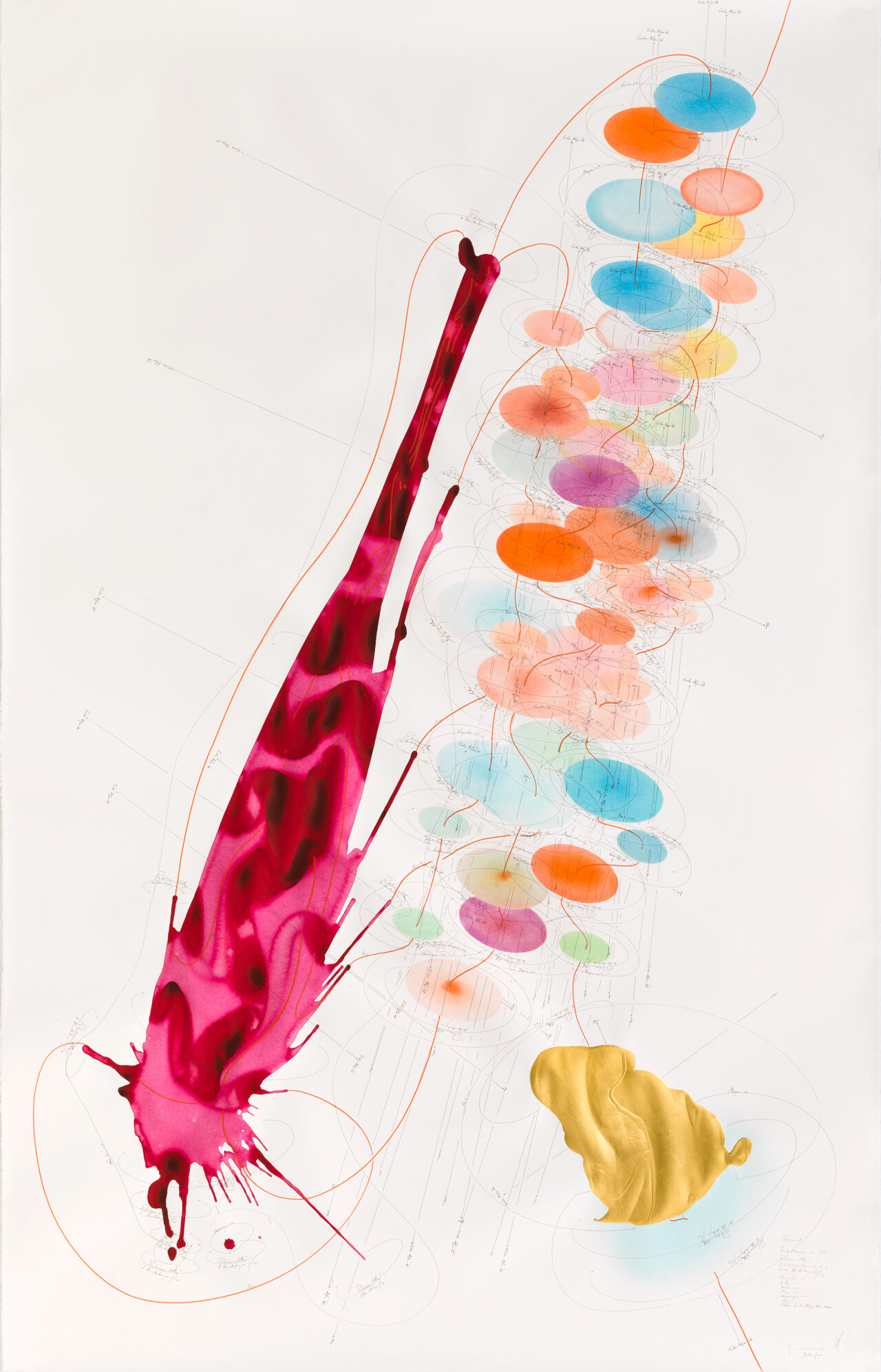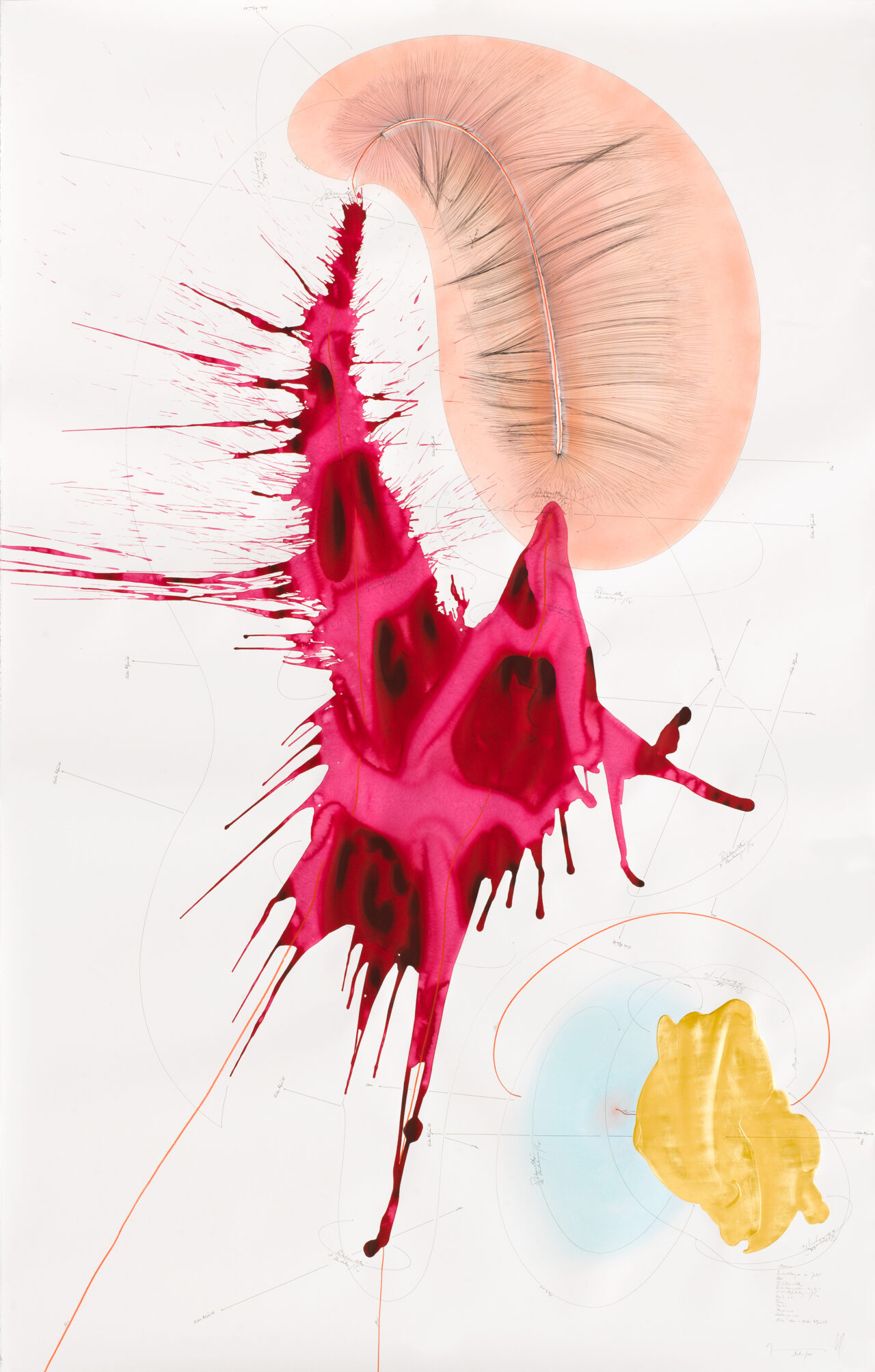 Ink, India ink, oil chalks, pastels, pencil on paper