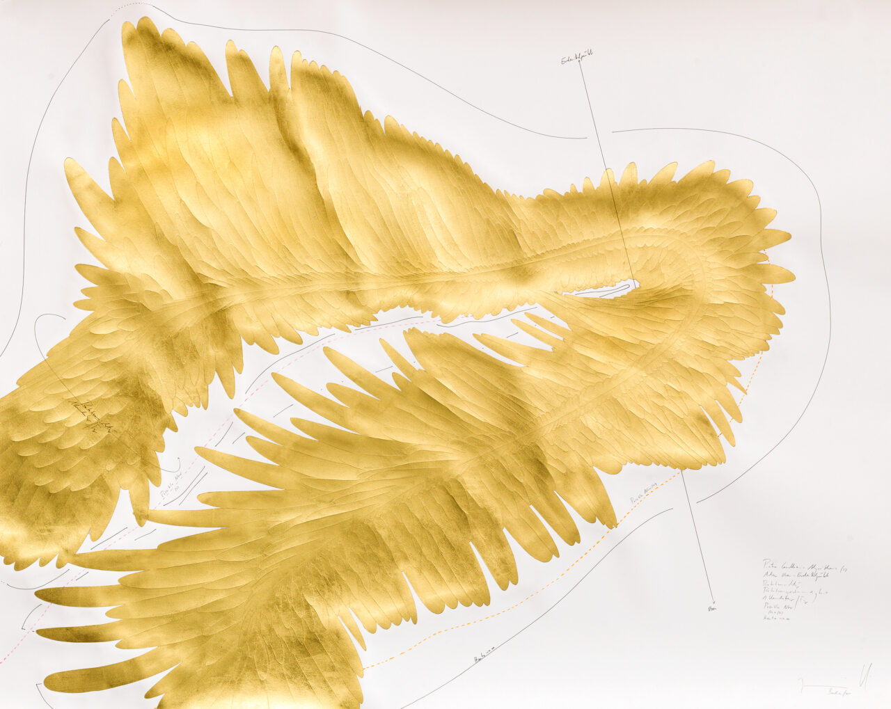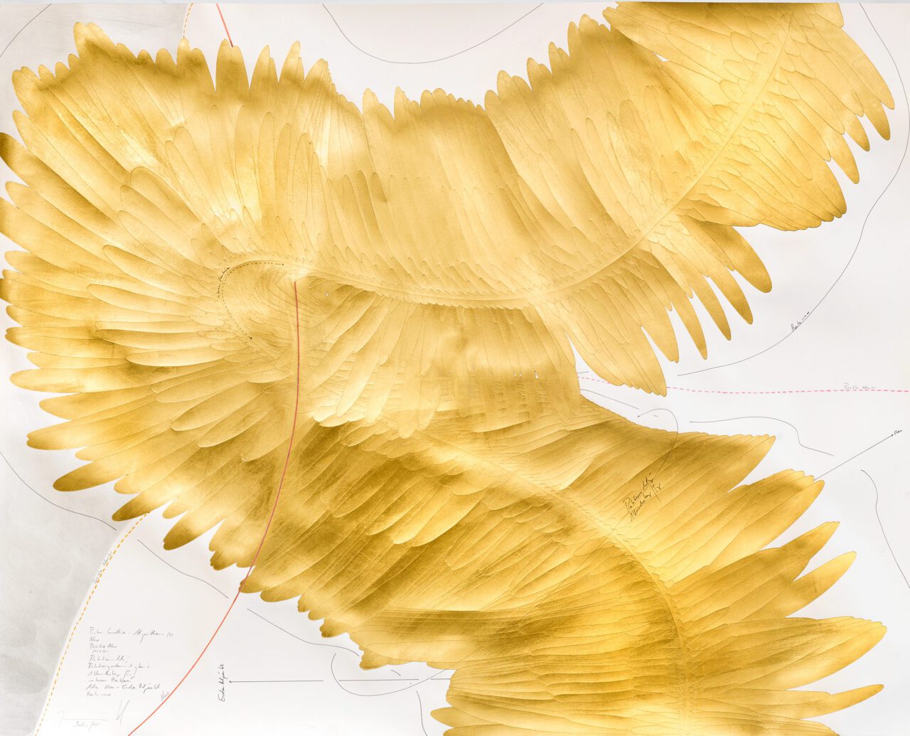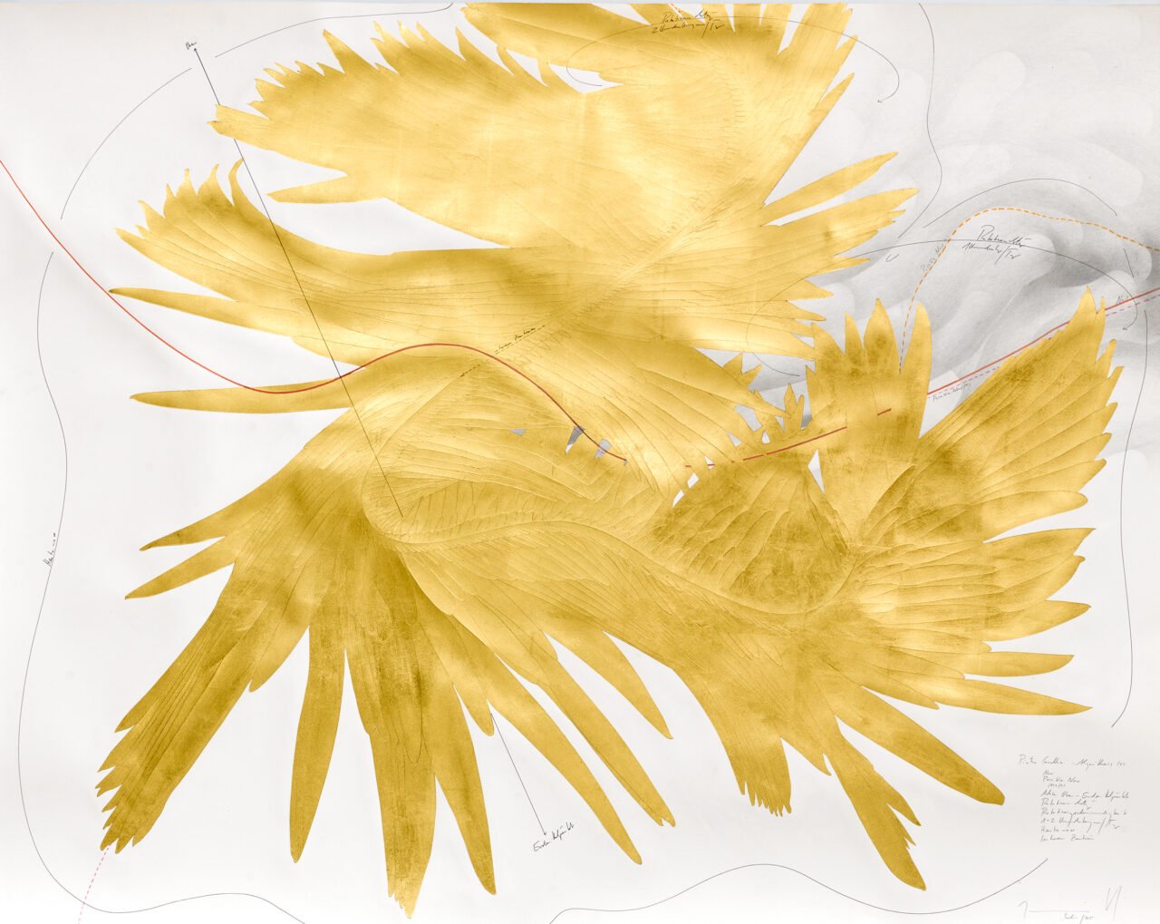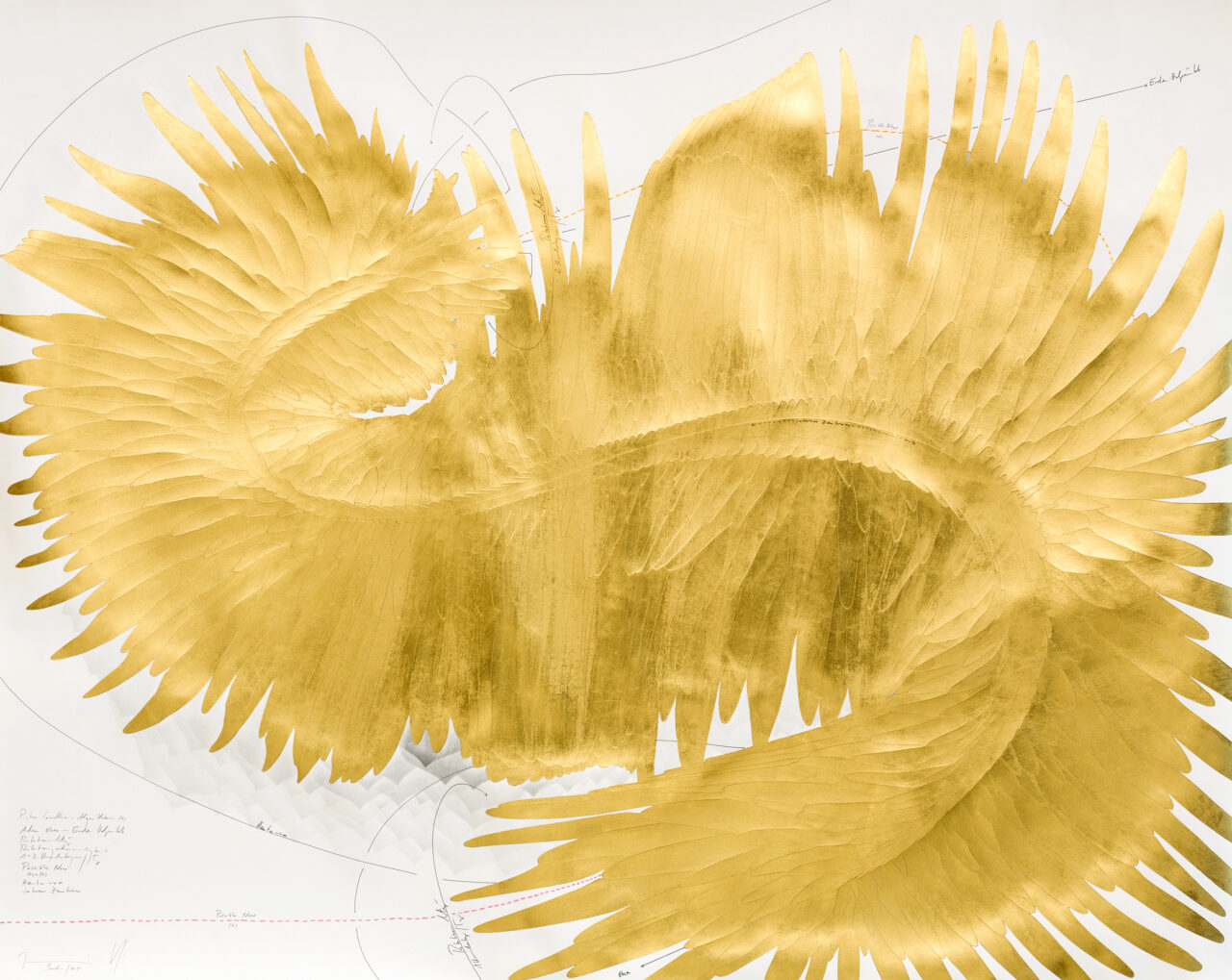 Ink, oil chalks, gold leaf, pastels, pencil on paper