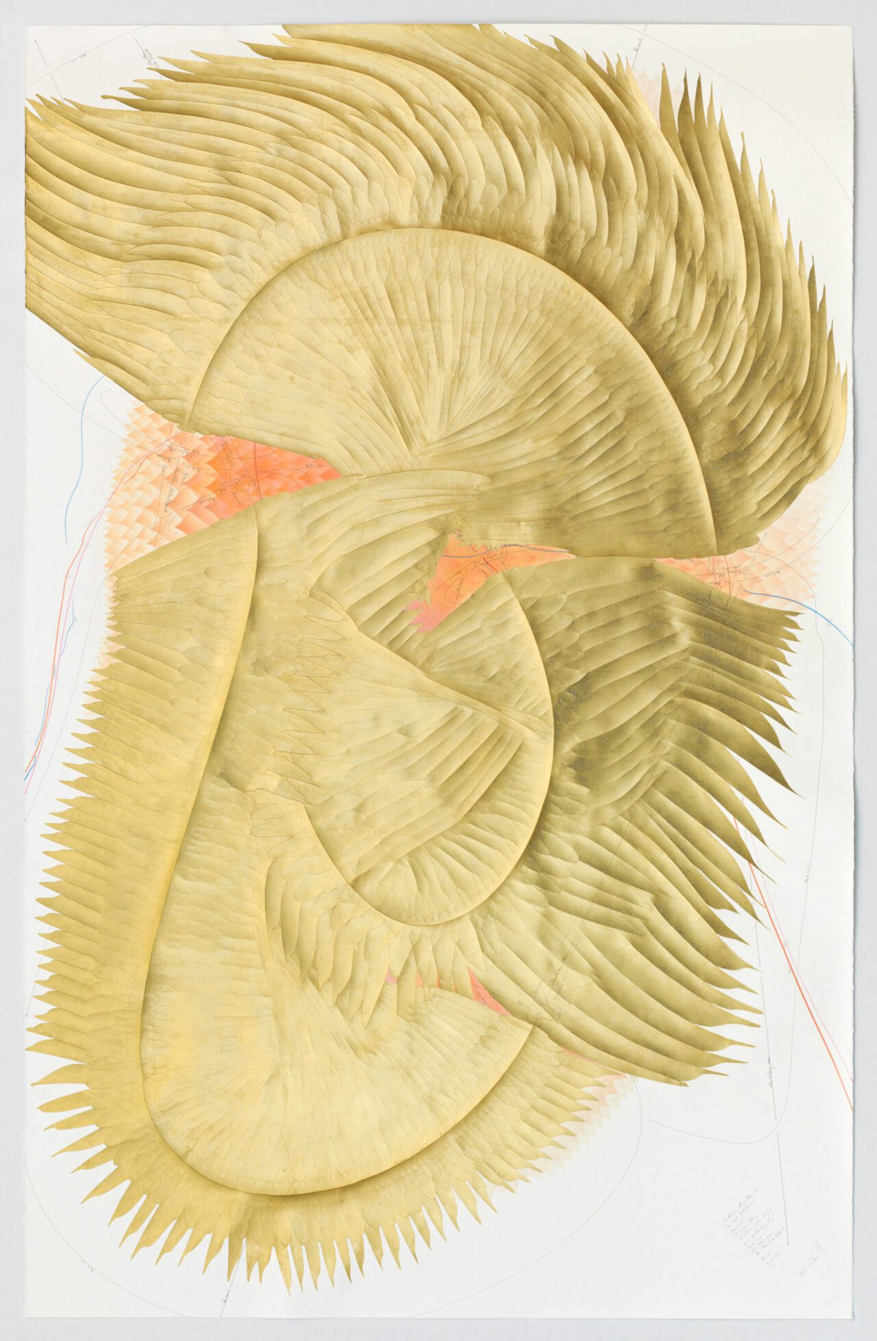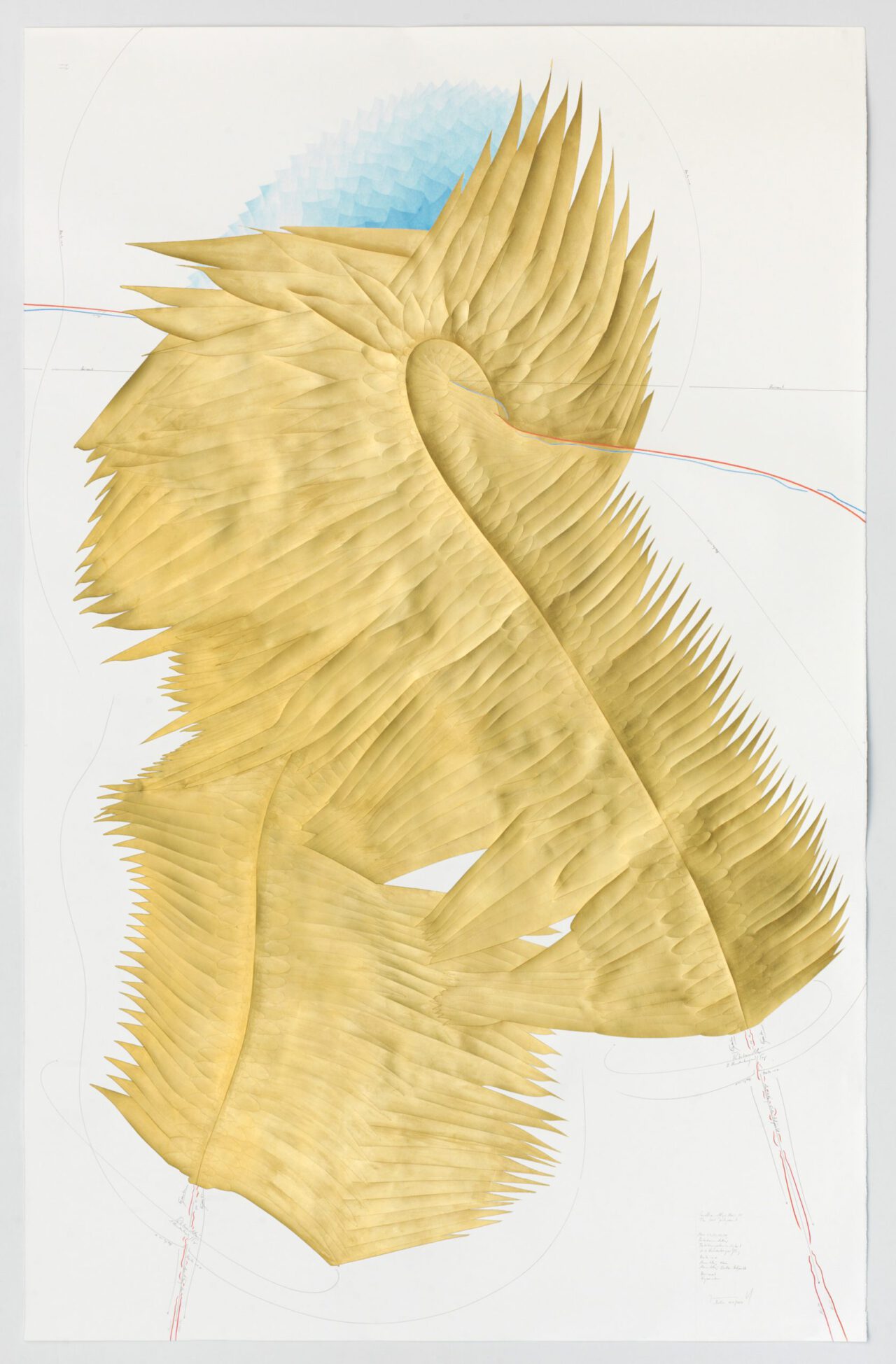 Ink, leaf gold, oil chalks, pastels, pencil on paper Unique work Signed