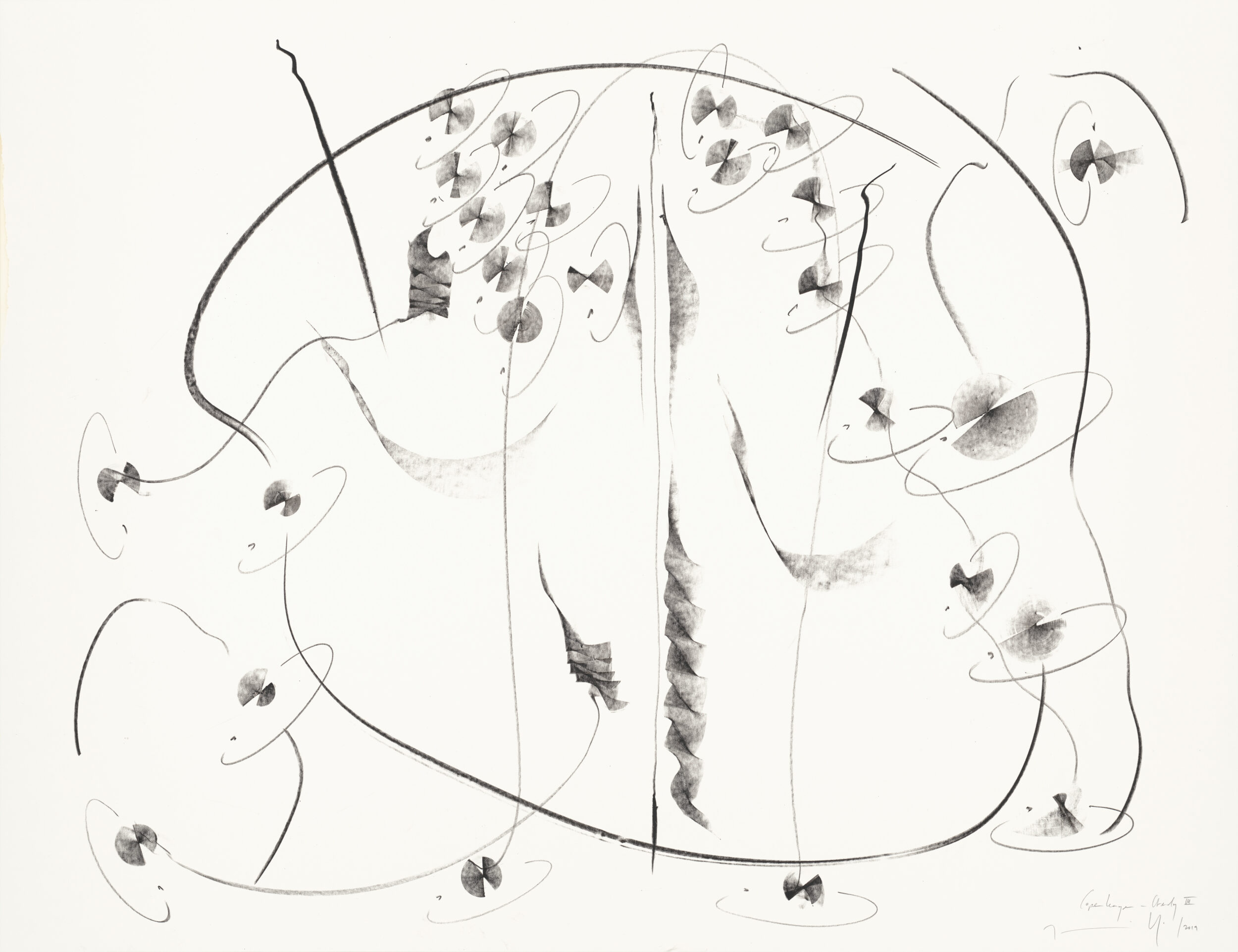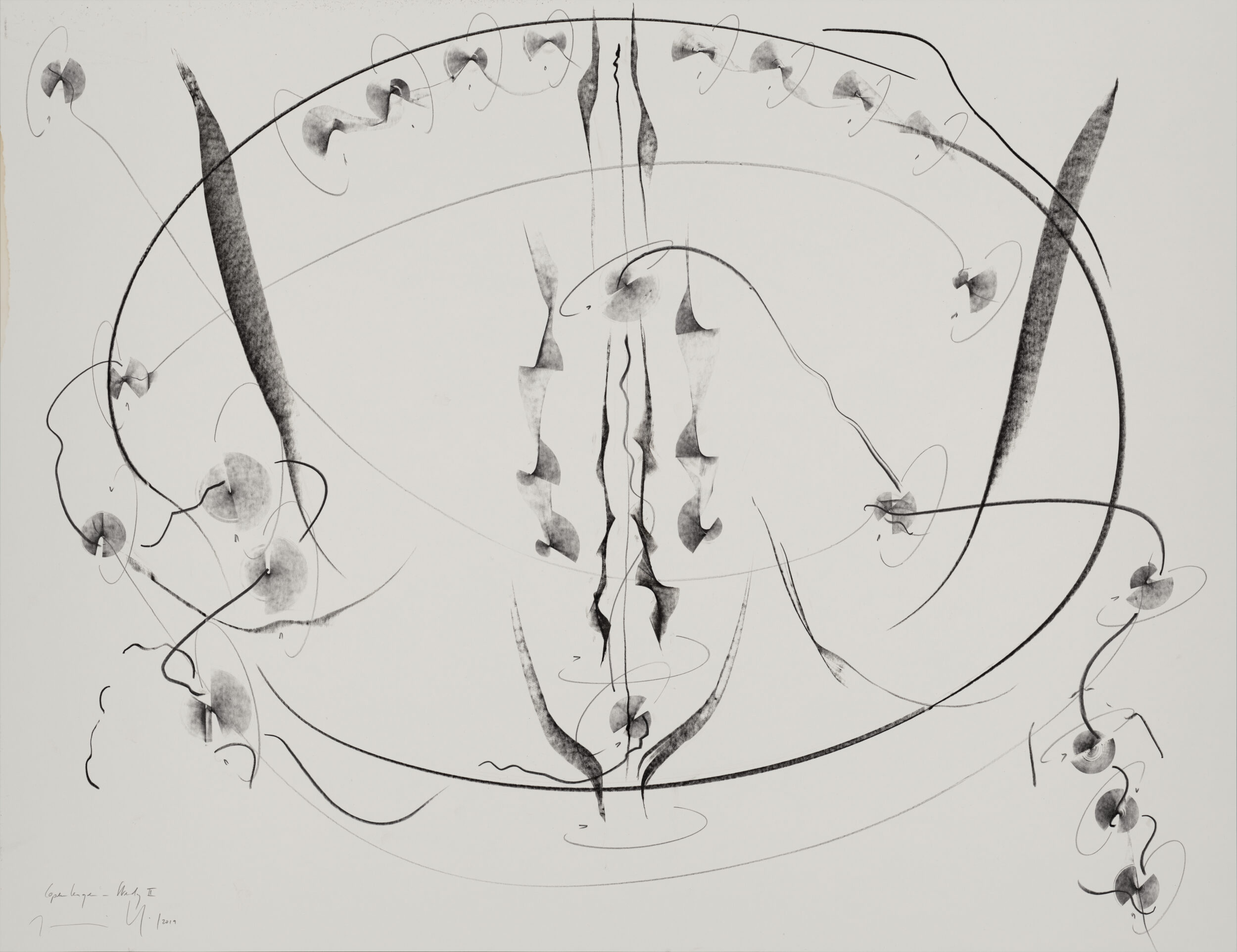 Lithographic chalk, graphite on paper, unique work, signed