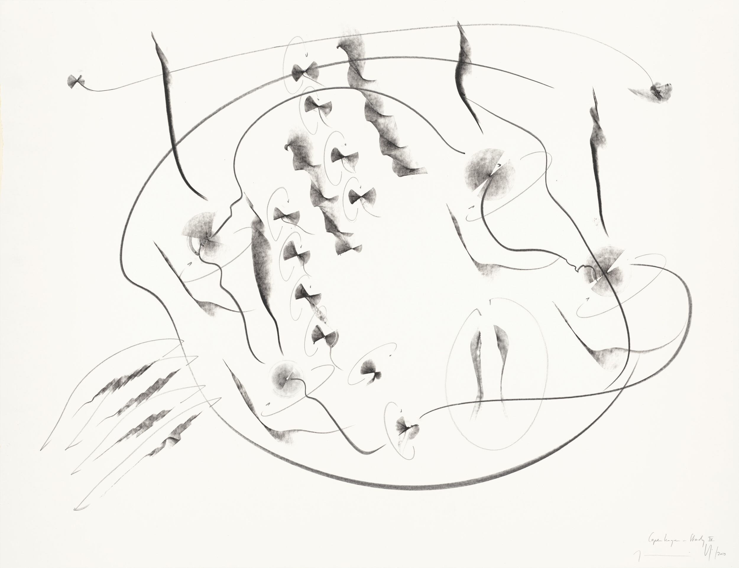Lithographiekreide, Graphit auf Papier, Unikat, Signiert