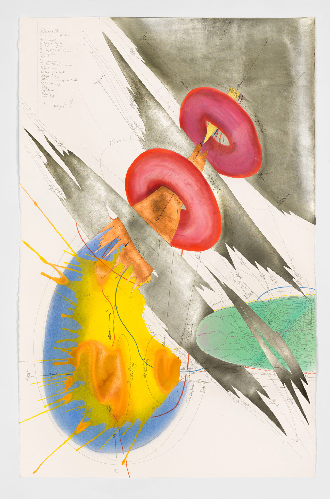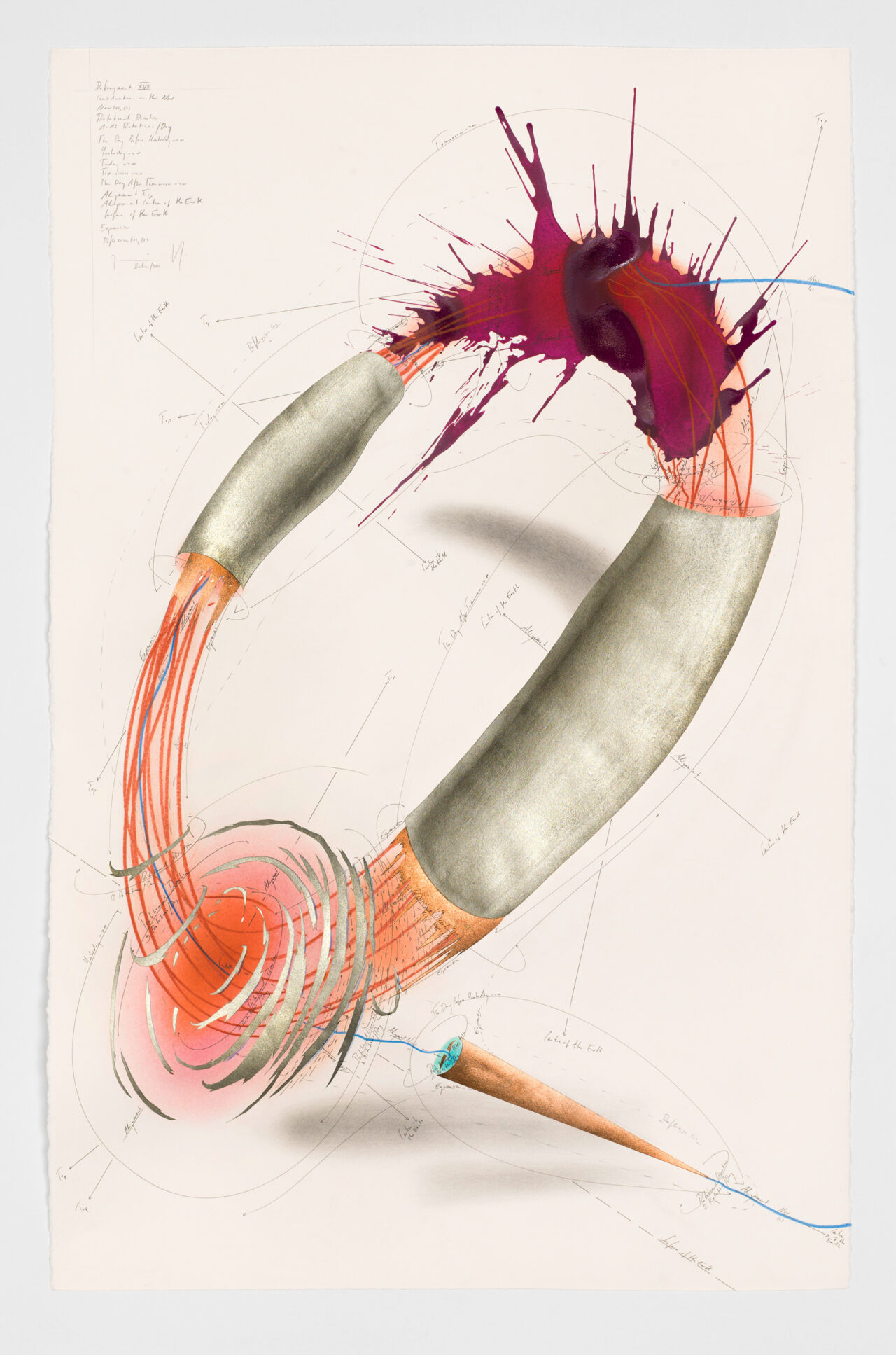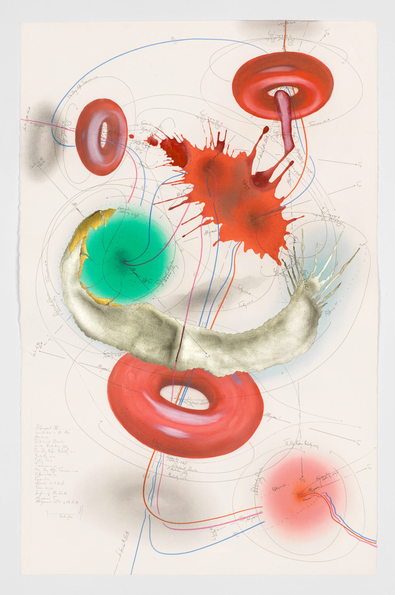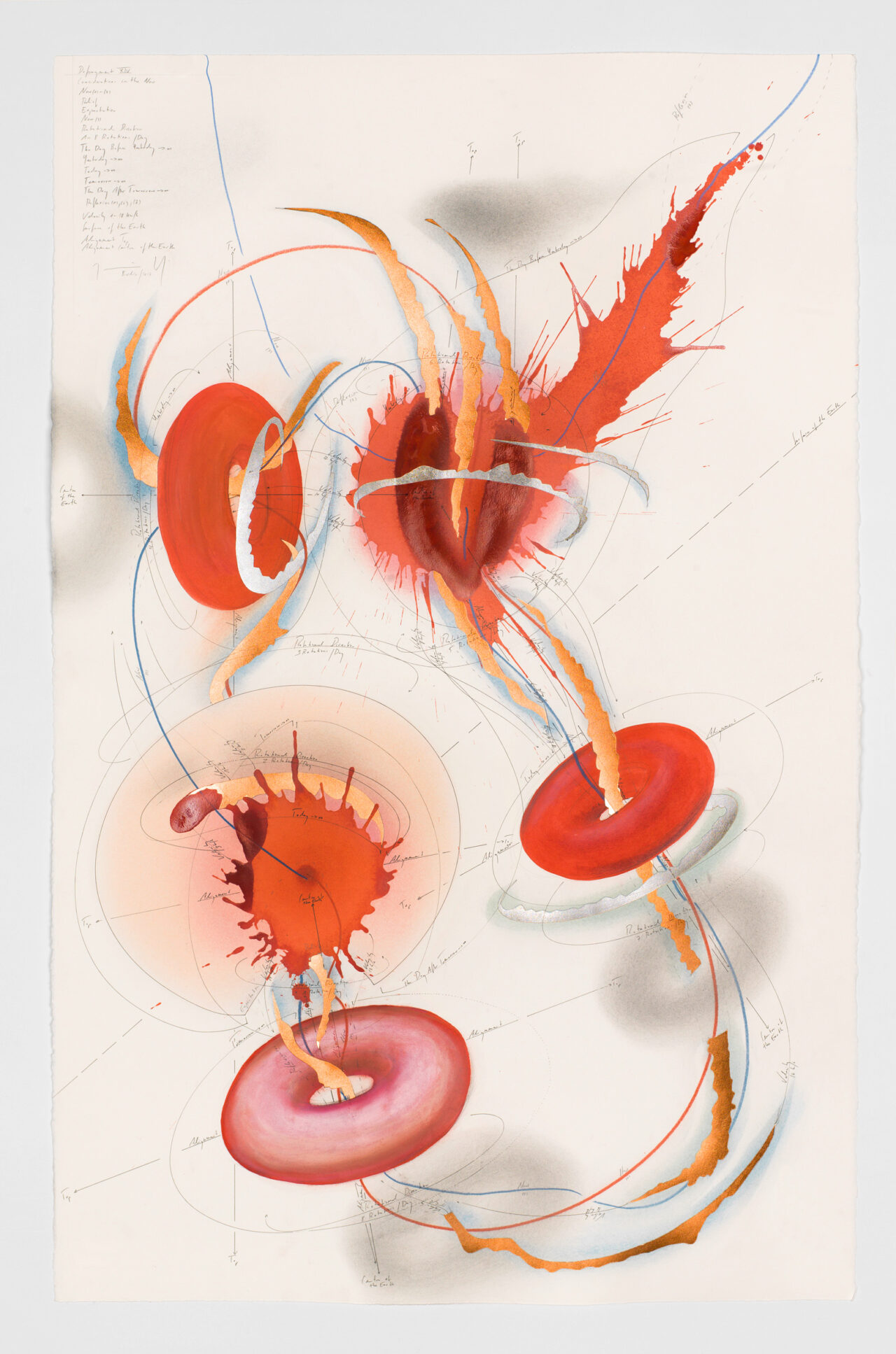 Ink, gold leaf, oil chalks, pastels, pencil on paper, unique, signed