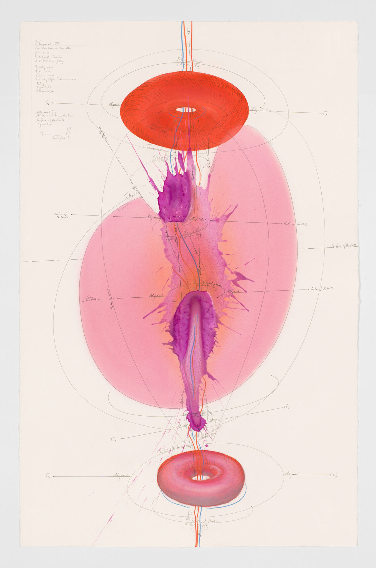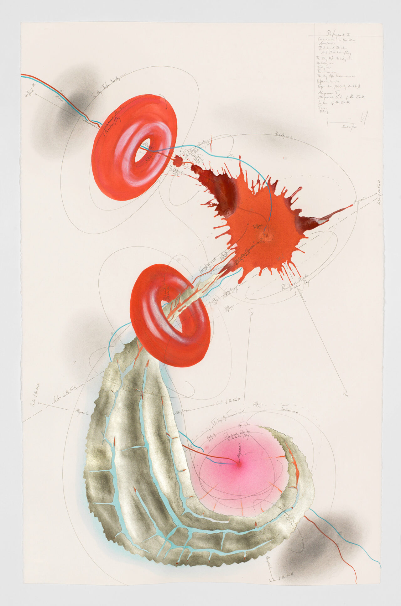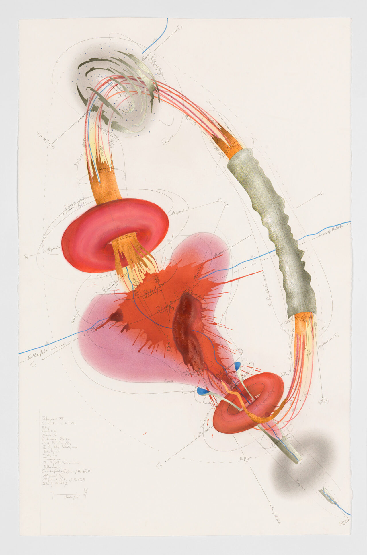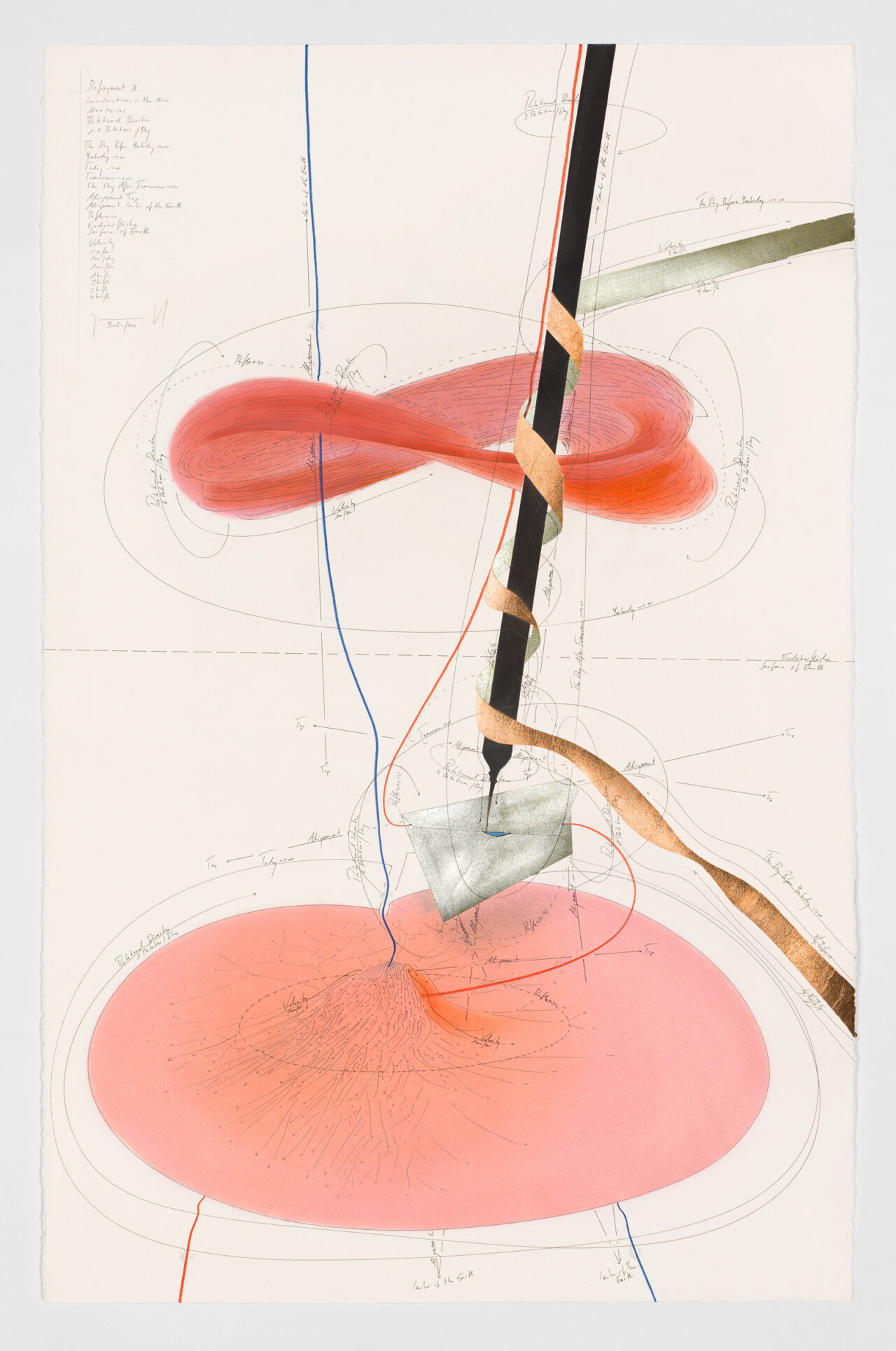 Ink, gold leaf, oil chalks, pastels, pencil on paper, unique, signed