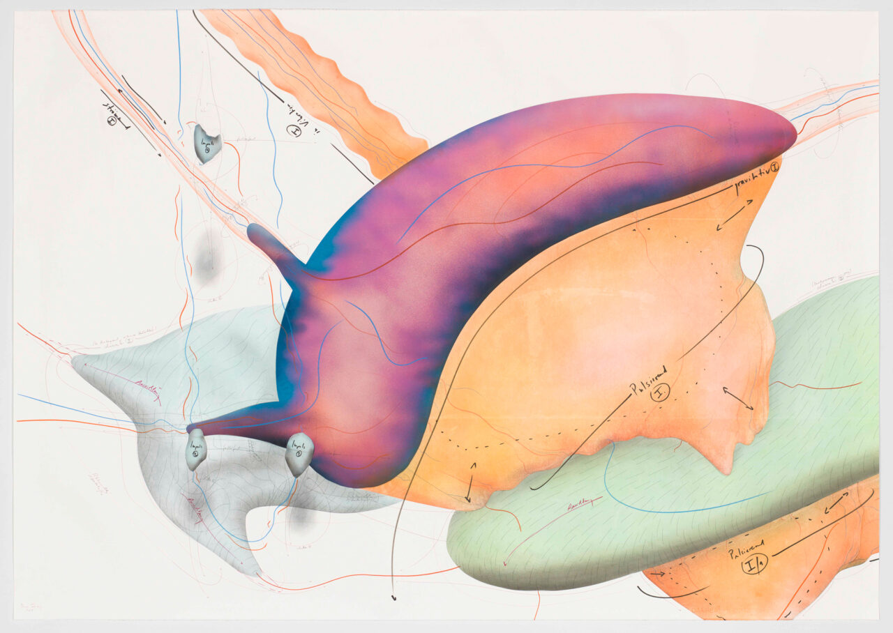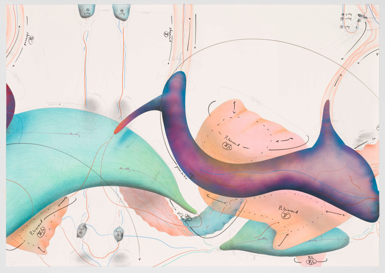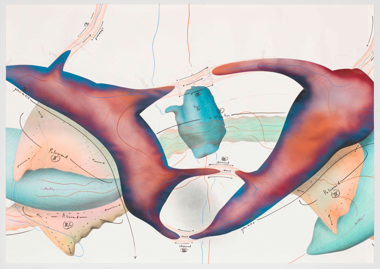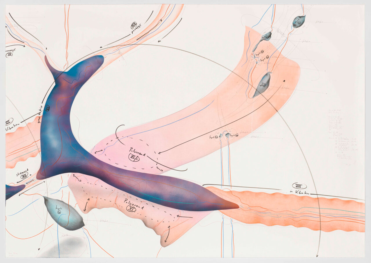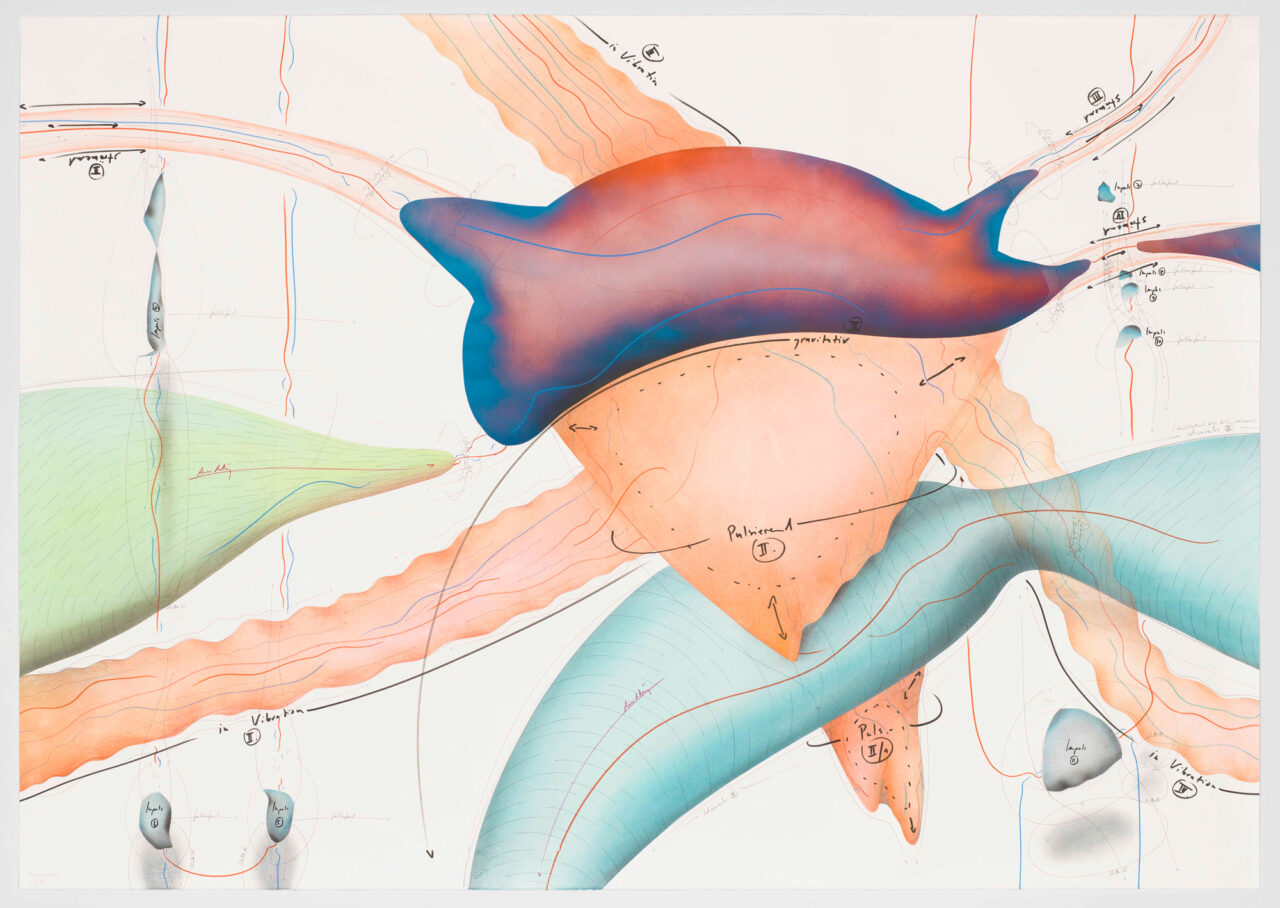 Ink, oil chalks, acrylic paint, pastels, pencil on paper, unique, signed
