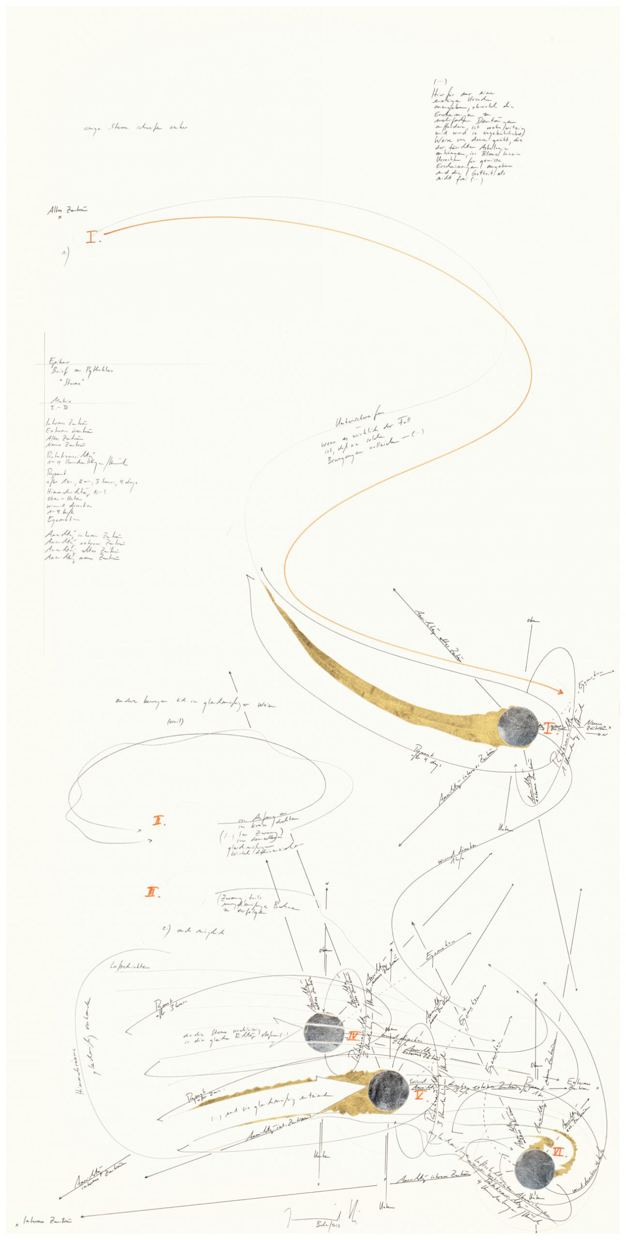 Matrix I – IV | Internes Zentrum | Externes Zentrum | Altes Zentrum | Neues Zentrum | Rotationsrichtung | 1-3 Umdrehungen/ Stunde | Repeat: after 1 sec, 2 min, 3 hours | Himmelsrichtung N-S | Oben – Unten | Wind direction: 1-4 km/ h | Egomotion | Ausrichtung altes Zentrum | Ausrichtung neues Zentrum | Ausrichtung internes Zentrum | Ausrichtung externes Zentrum