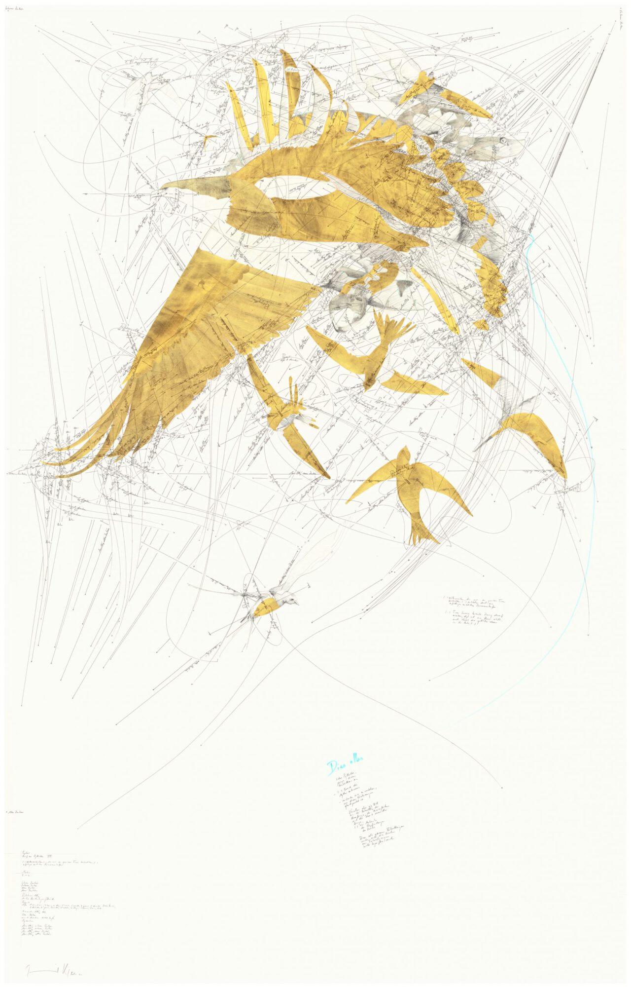 ink, pencil, gold leaf, silver leaf on paper, unique, signed