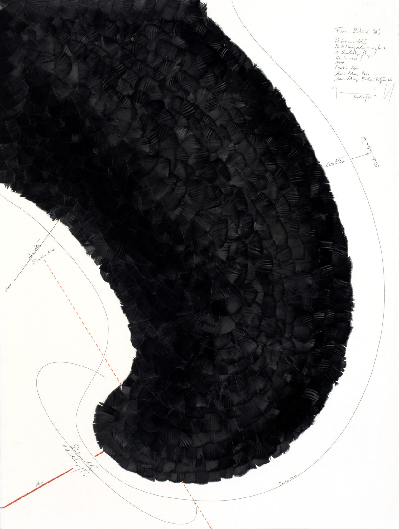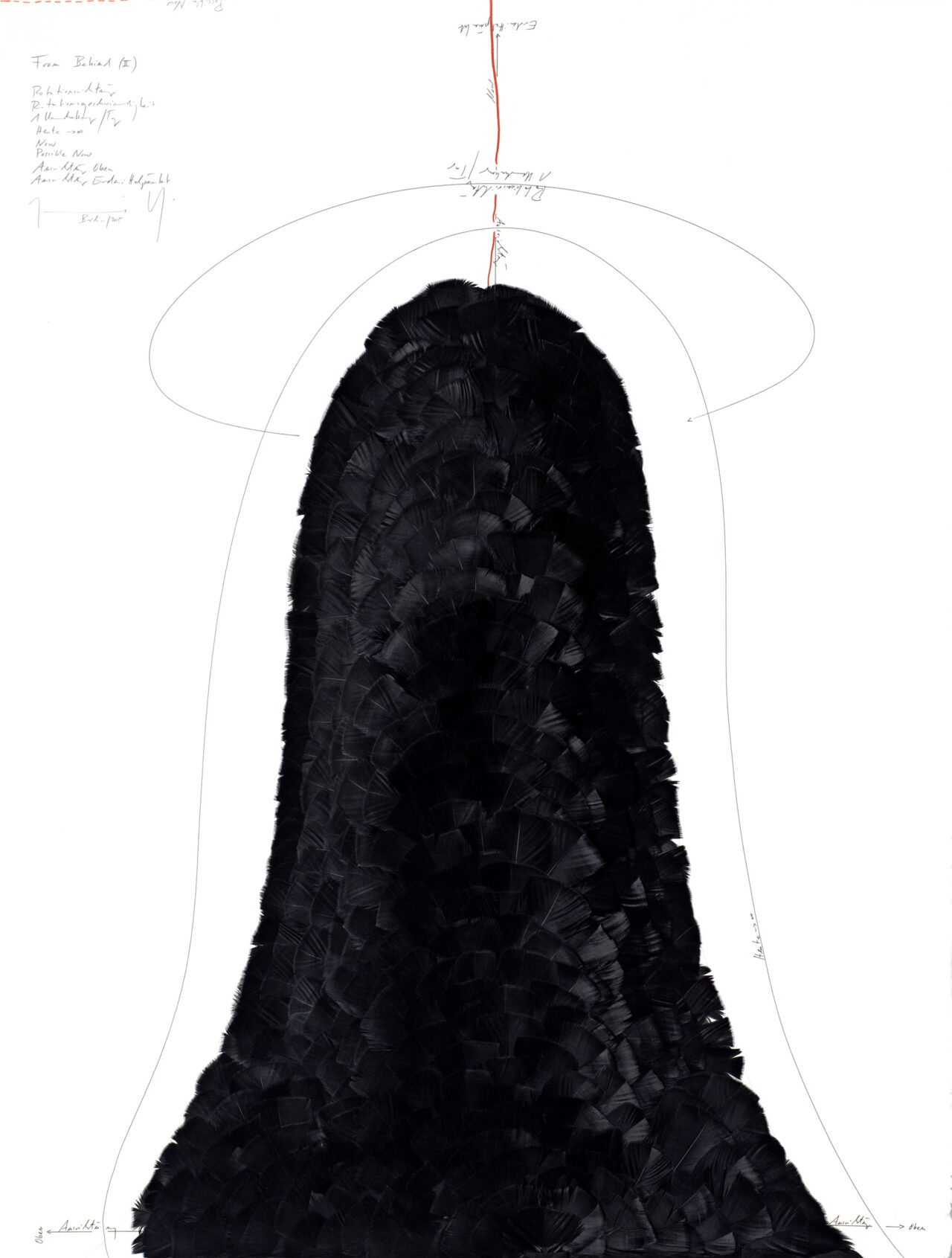 Ink, feathers, oil chalks, India ink, pencil on paper