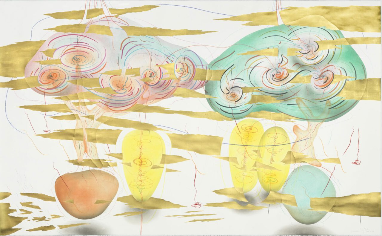 Tinte, Blattgold, Ölkreide, Pastell, Bleistift auf Papier, Unikat, Signiert Ink, gold leaf, oil chalks, pastels, pencil on paper, unique, signed WV 2018–187