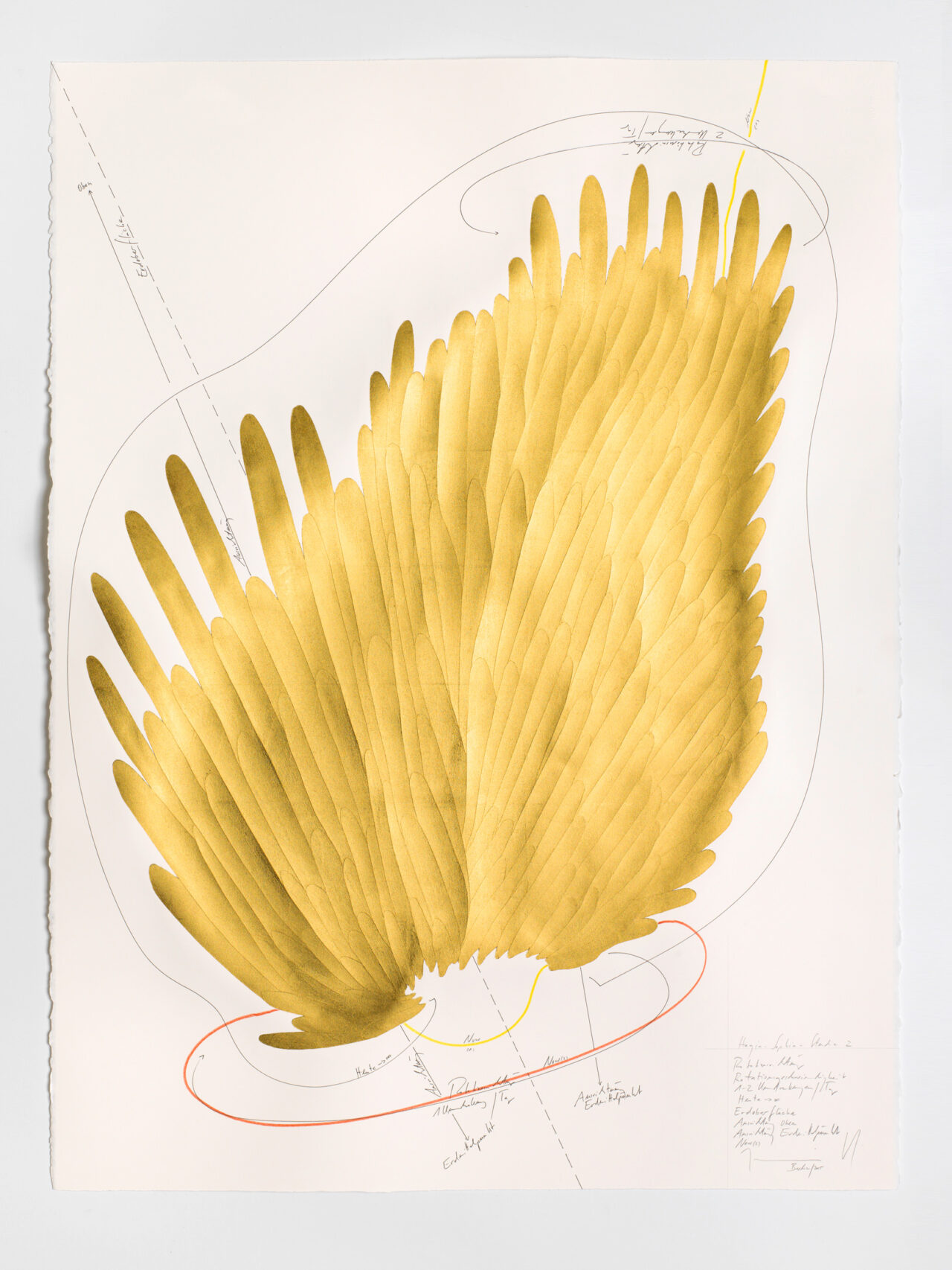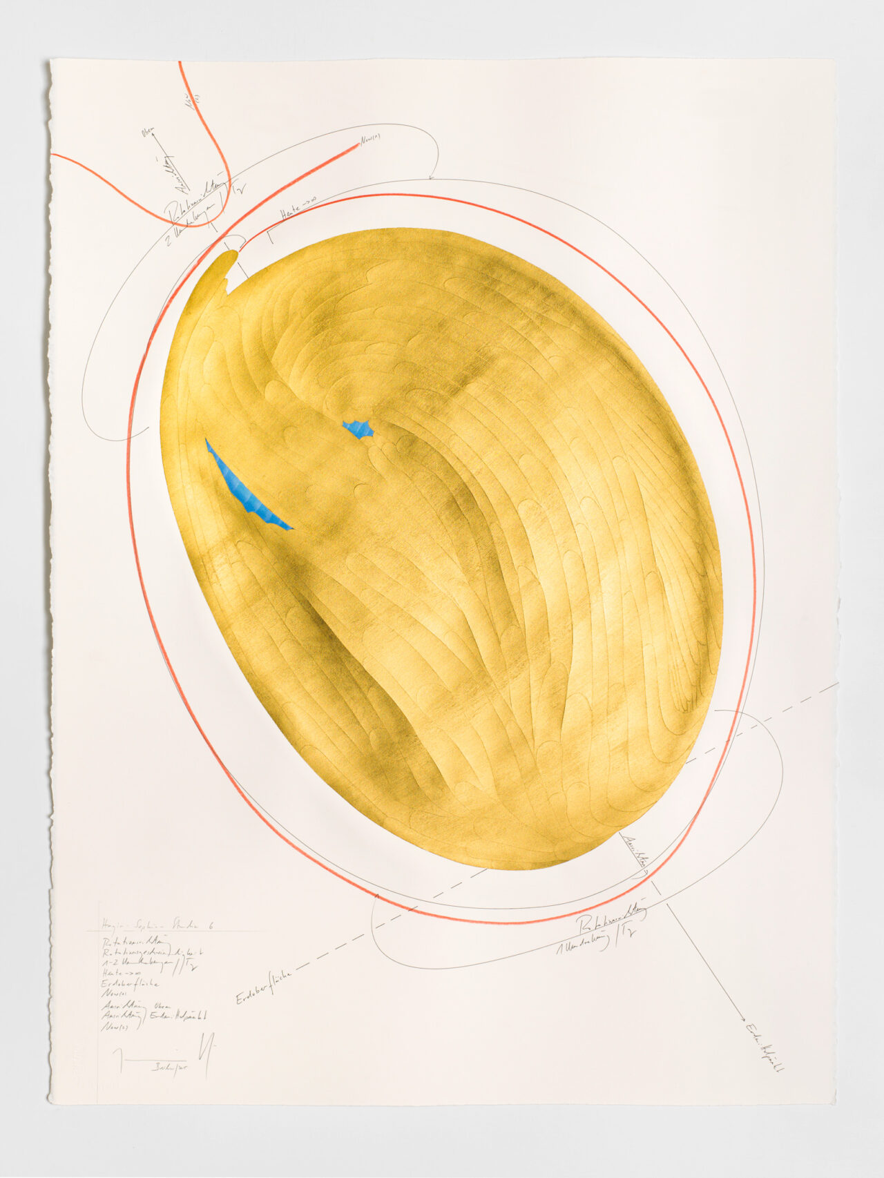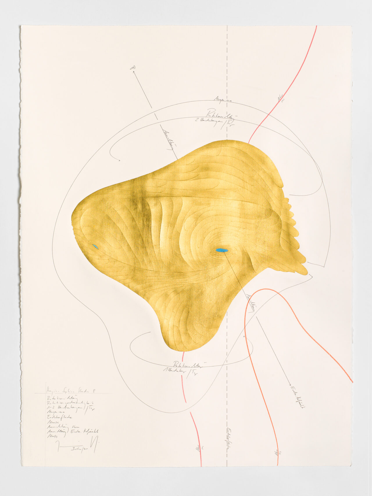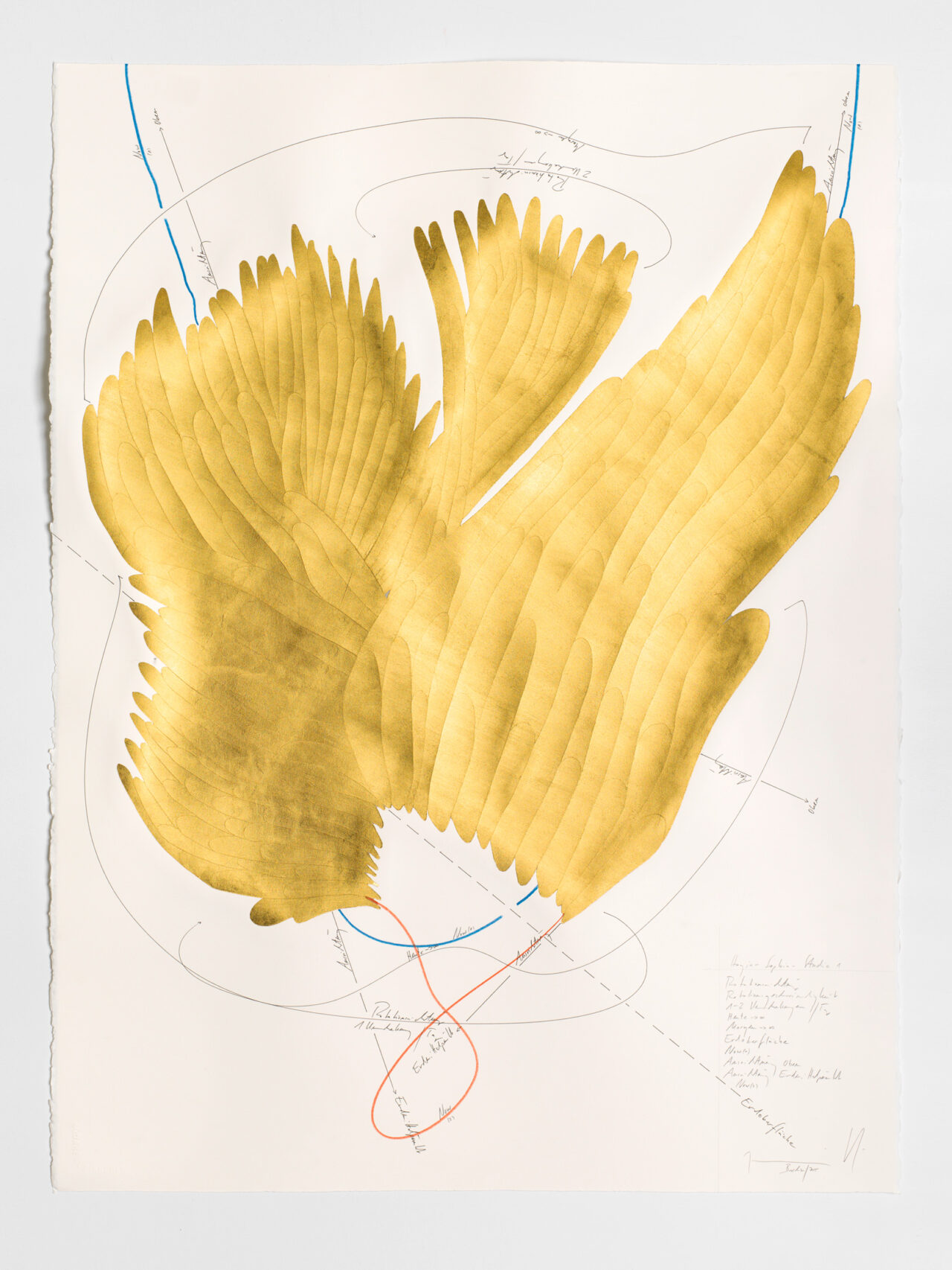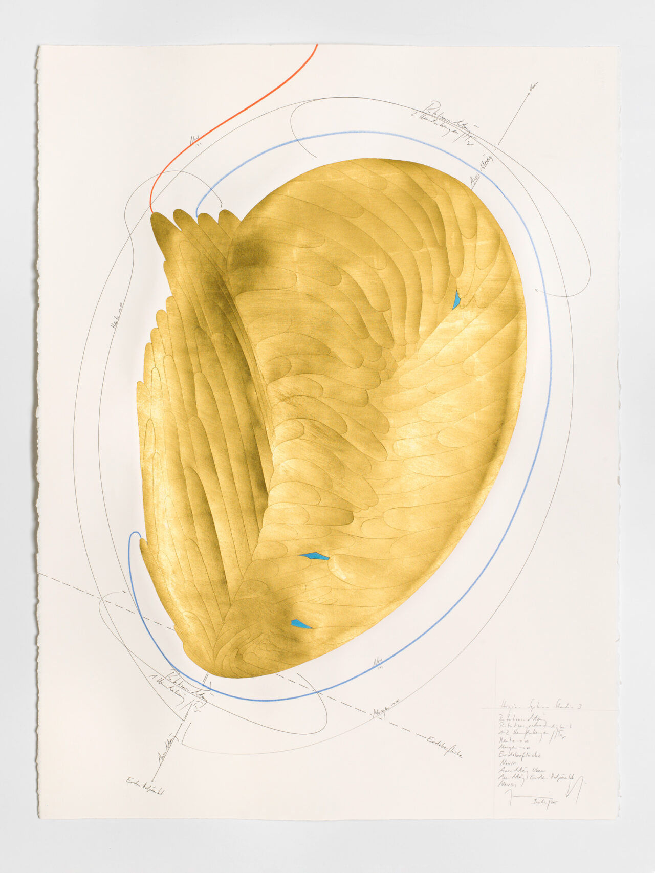 Tinte, Ölkreide, Blattgold, Pastell, Bleistift auf Papier Unikat Signiert