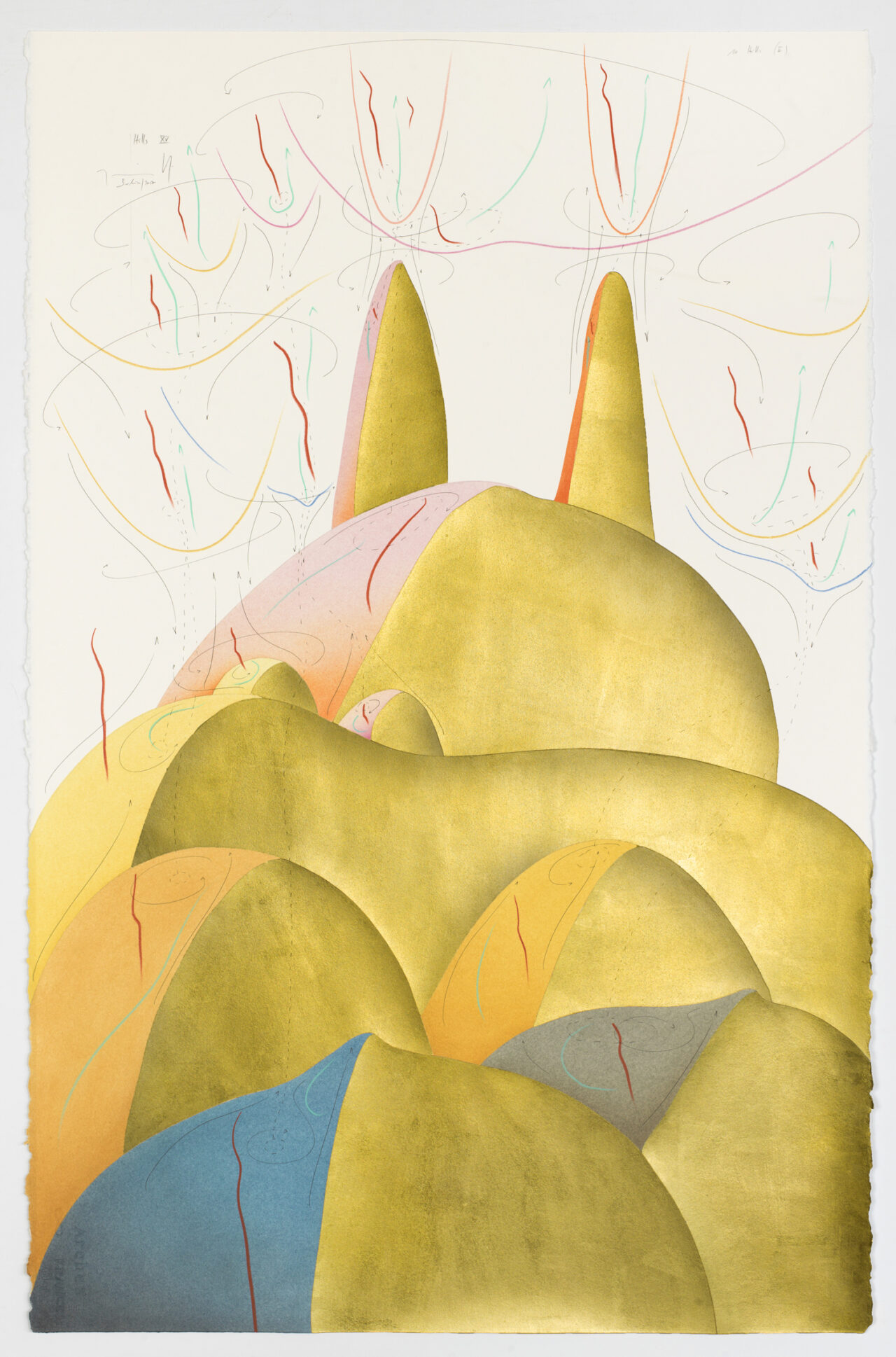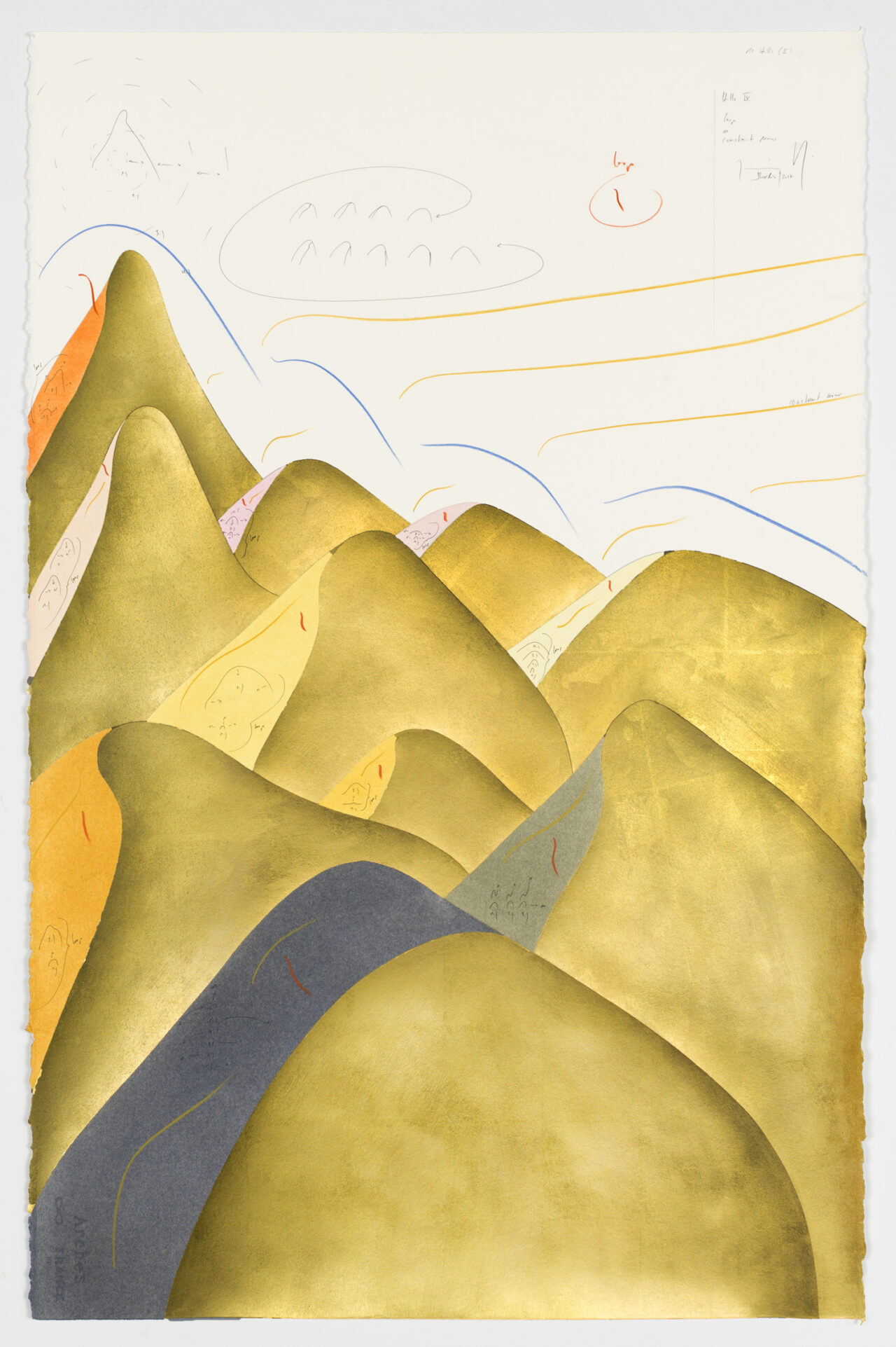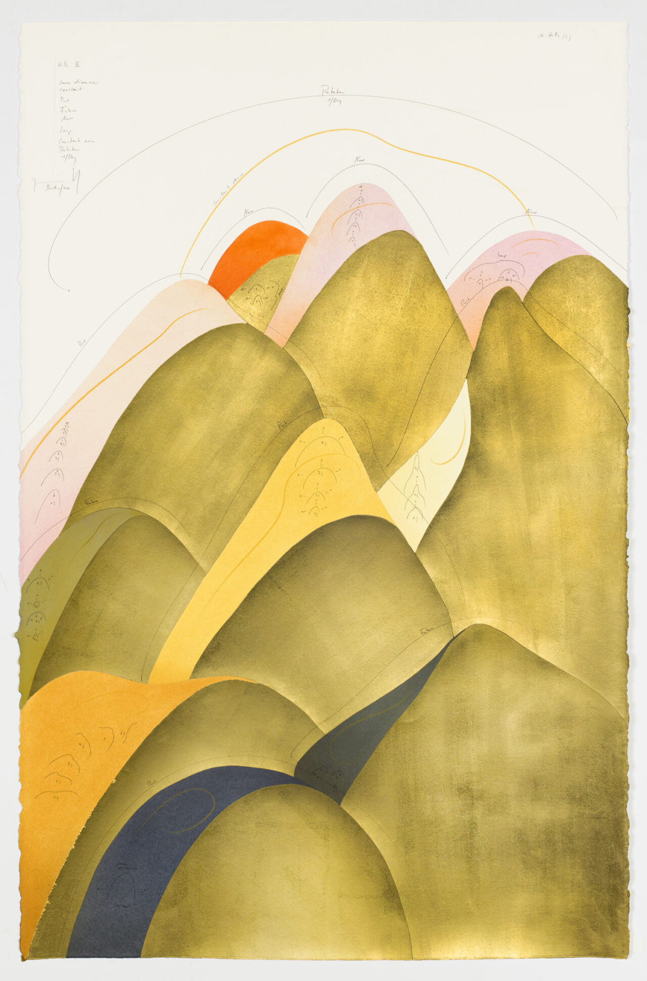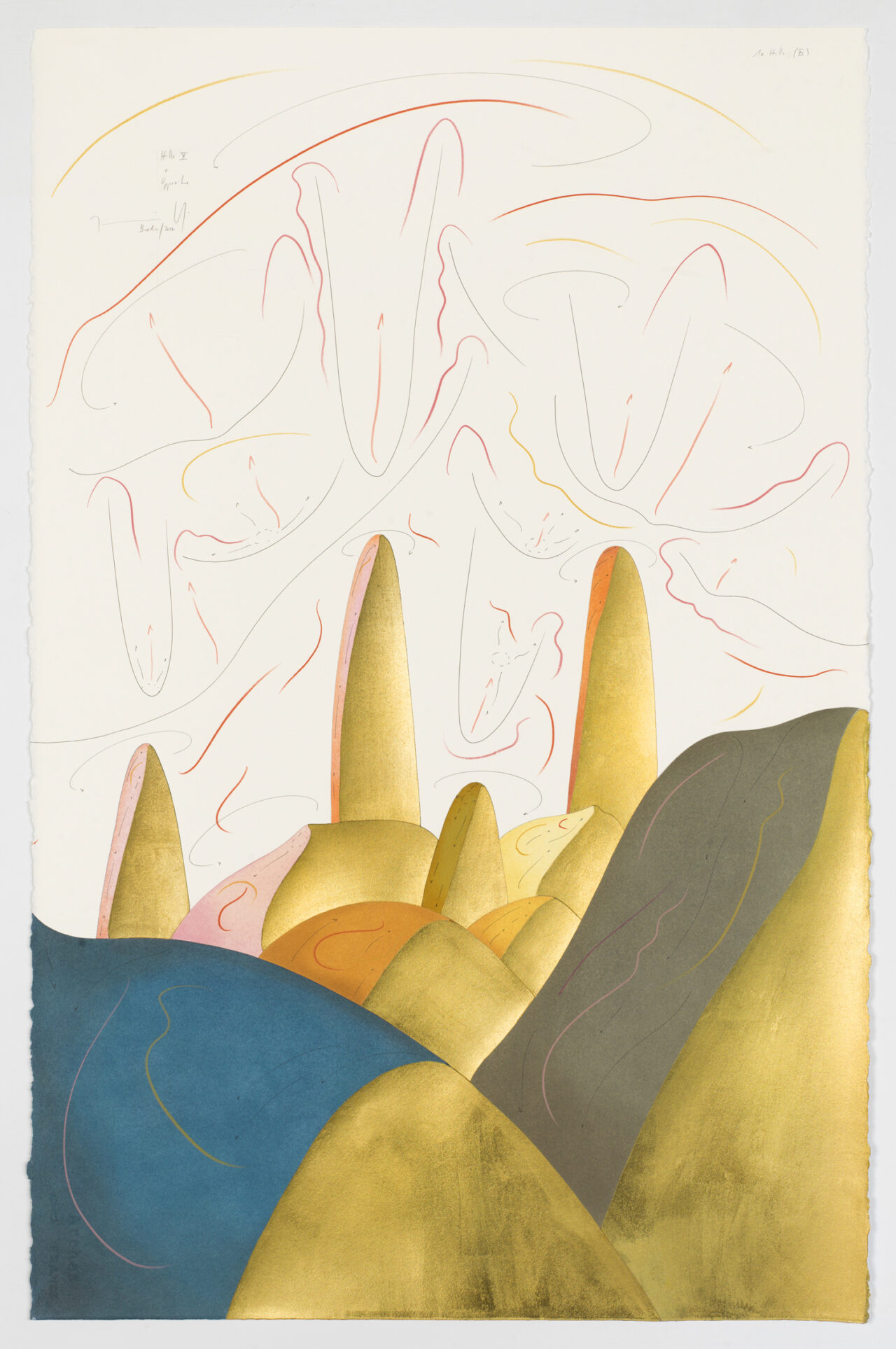 Ink, gold leaf, pastels, oil chalks, pencil on paper Unique work Signed
