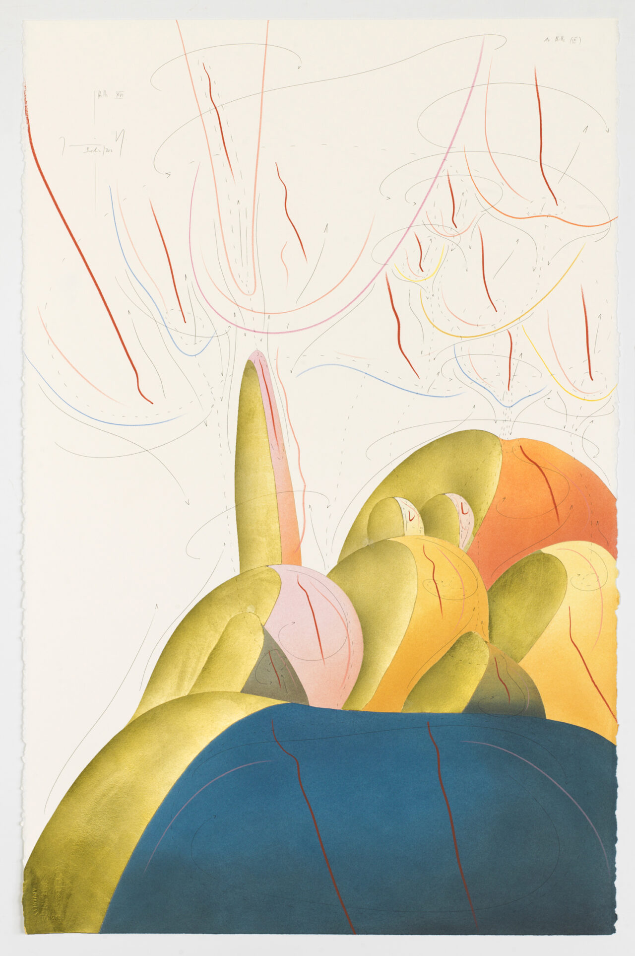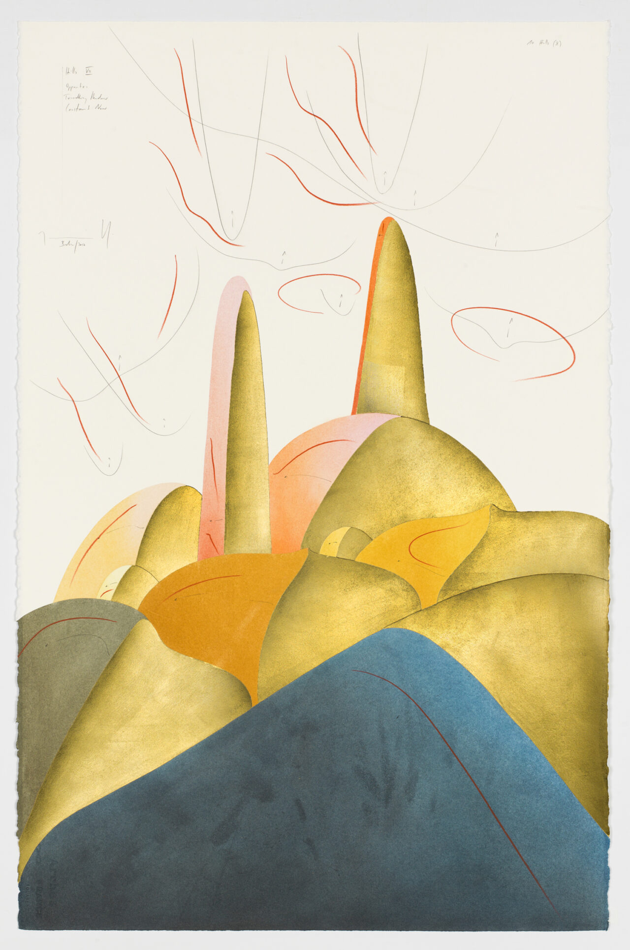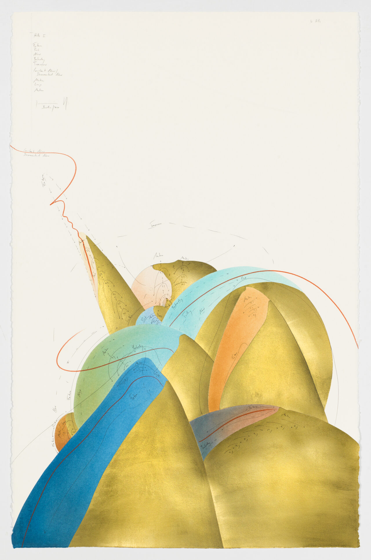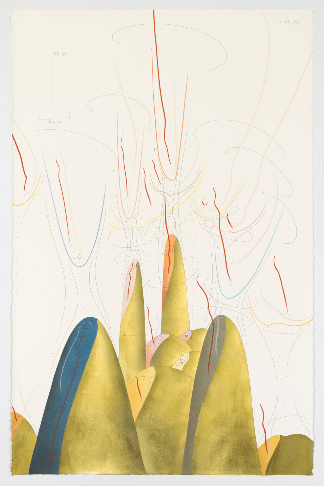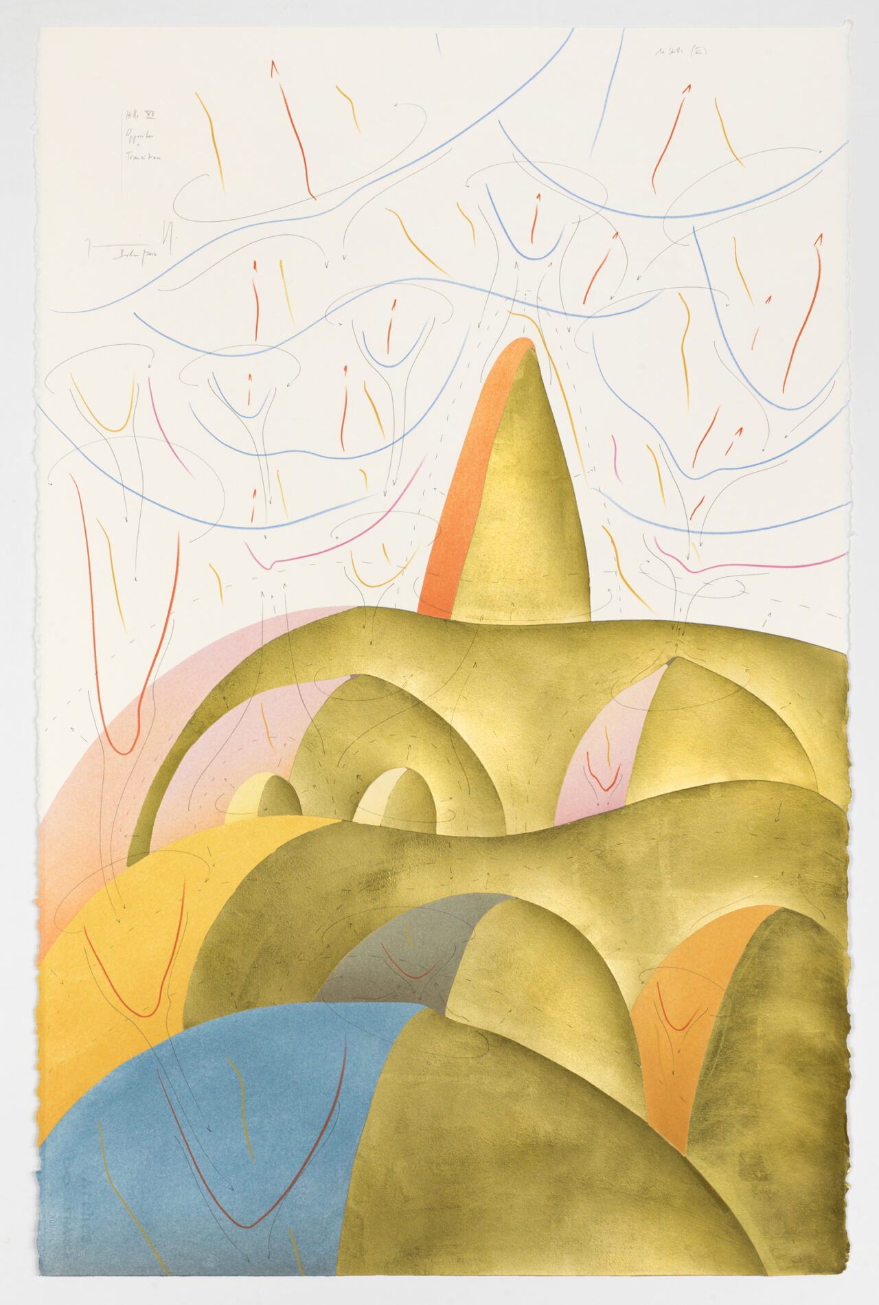 Ink, gold leaf, pastels, oil chalks, pencil on paper Unique work Signed
