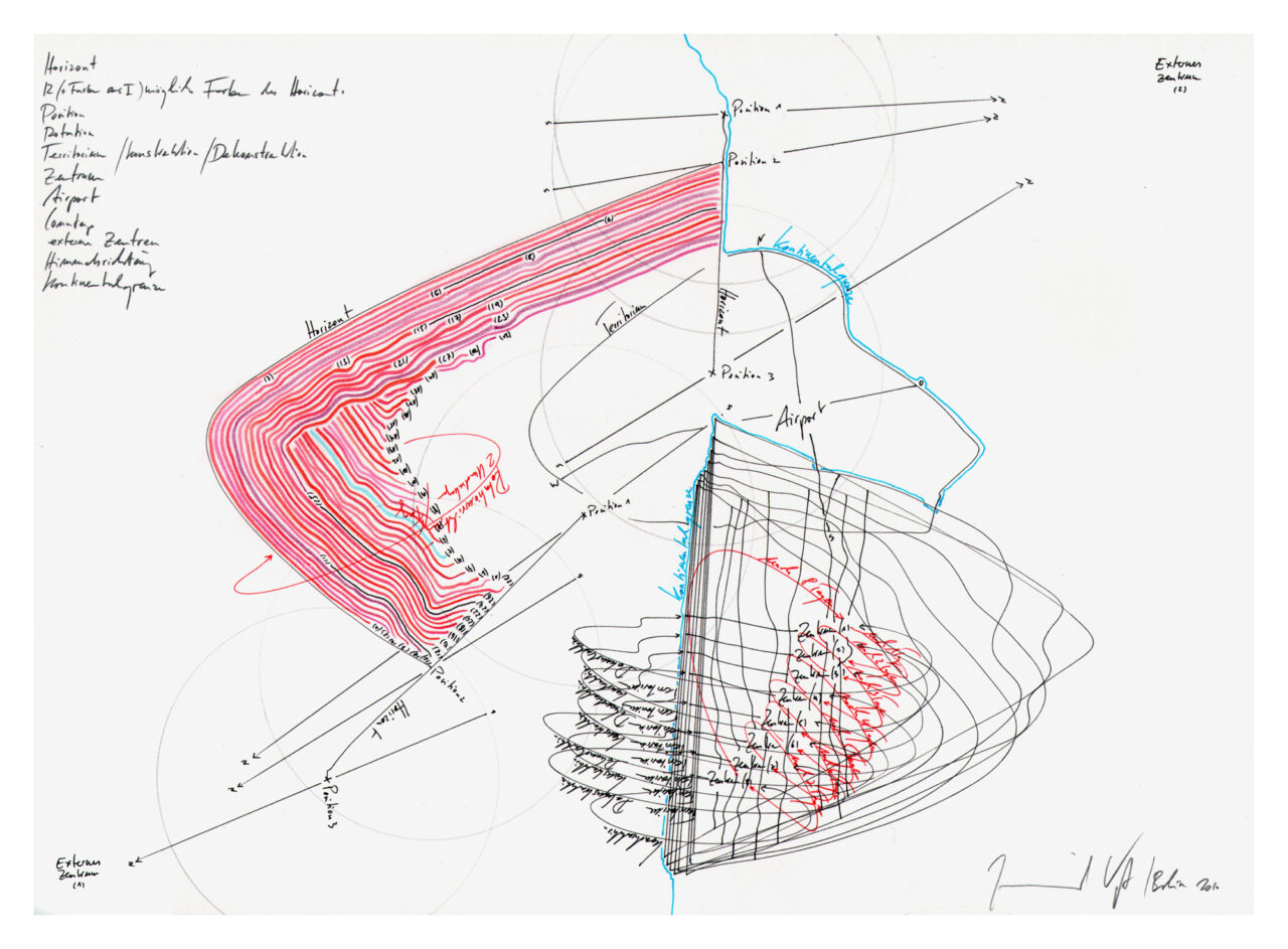 Horizont; 12 mögliche Farben des Horizonts; Position; Rotation; Territorium / Konstruktion / Dekonstruktion; Zentrum; Airport; Countup; externe Zentren; Himmelsrichtung; Kontinentalgrenze