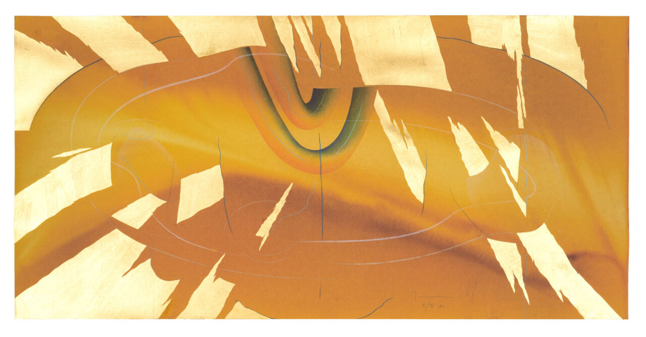 Ditone Print, Ölkreide, Blattgold, Bleistift auf Papier, Unikat mit Ölkreide überarbeitet und handvergoldet, signiert und nummeriert, Edition: 25 + 9 AP