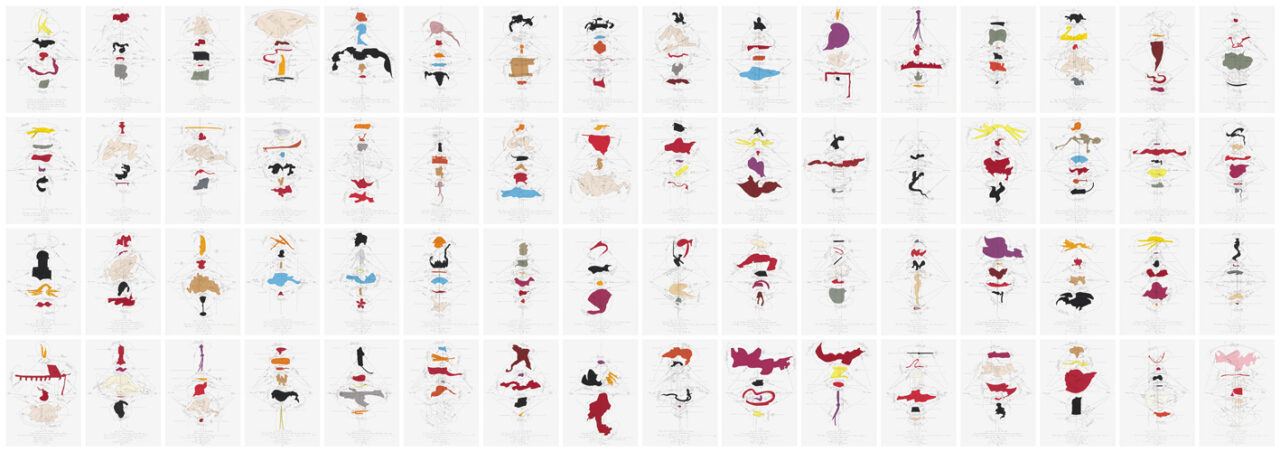 Coloured vellum and Ingres Papers, pencil, ink on watercolour paper, unique, signed