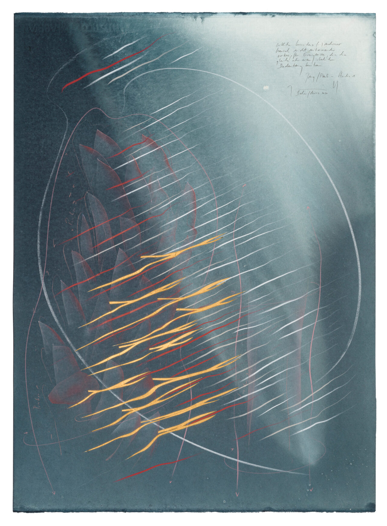 Tusche, Blattgold, Pastell, Ölkreide, Graphit auf Papier, Unikat, signiert
