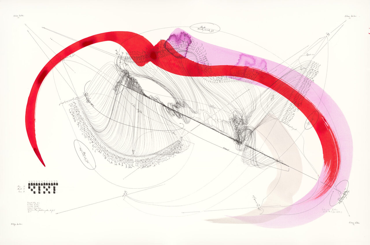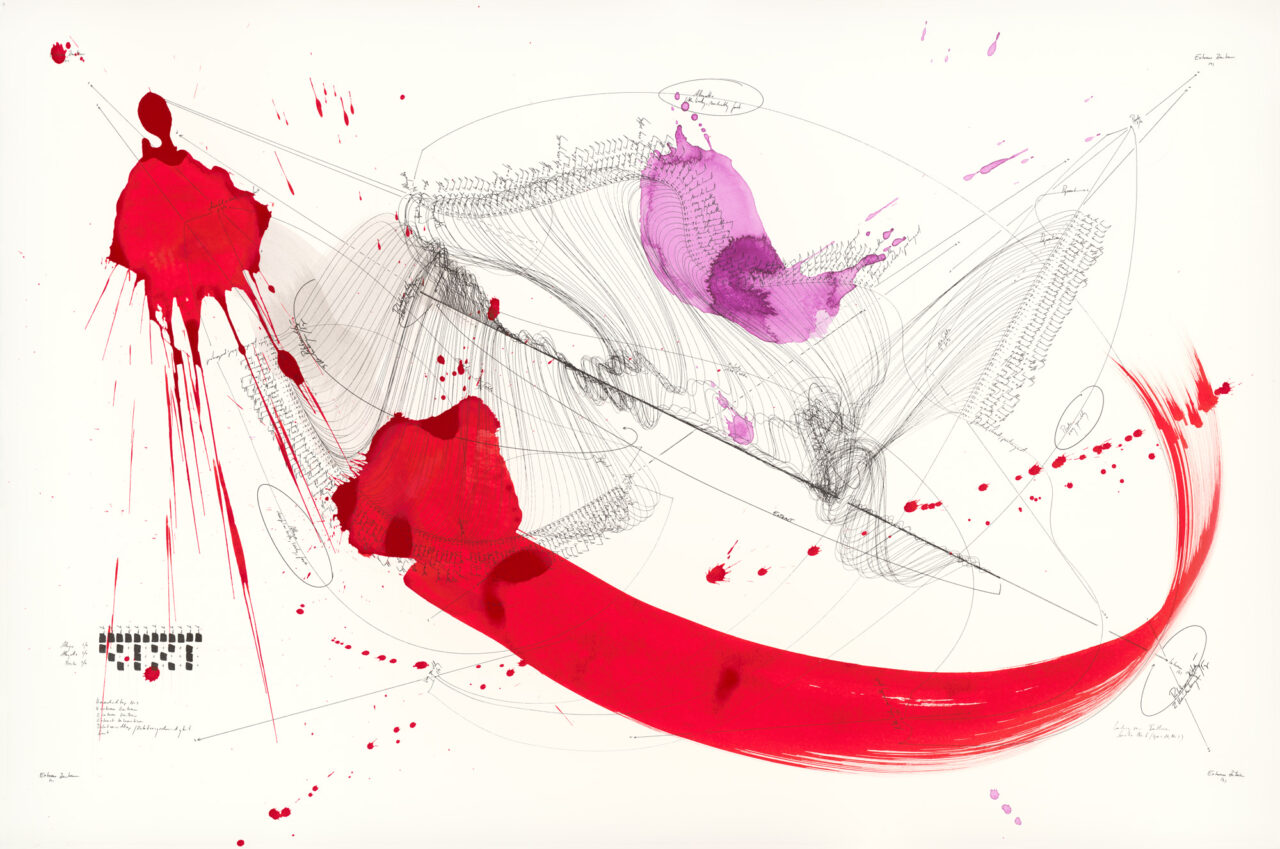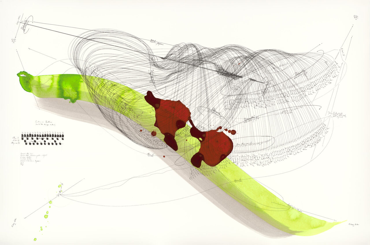 Flachdruck, jeweils mit Zeichentusche überarbeitet, Bleistift