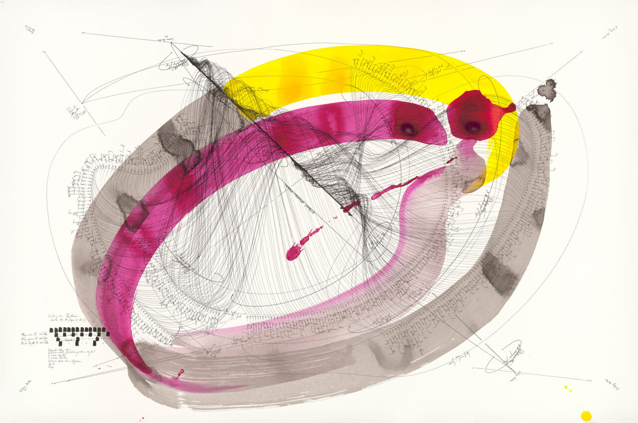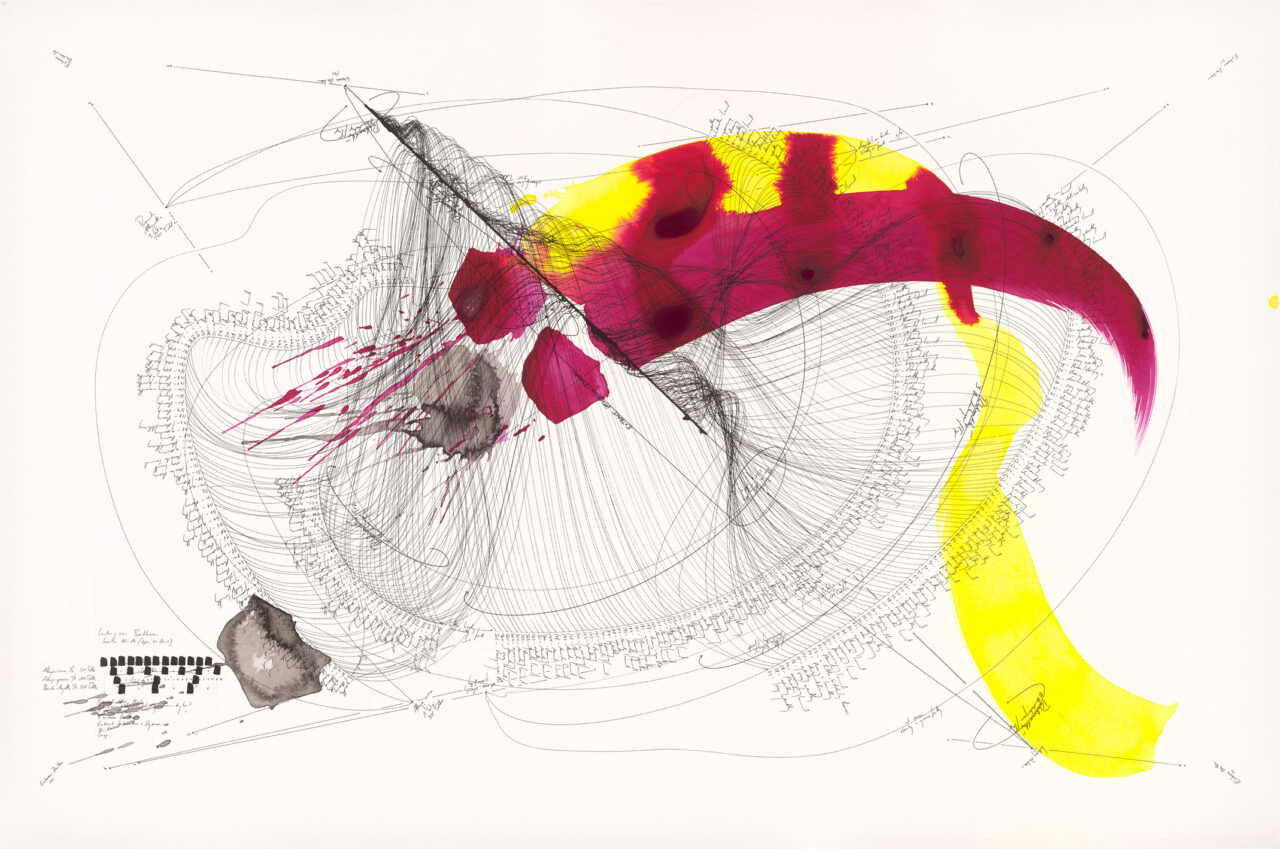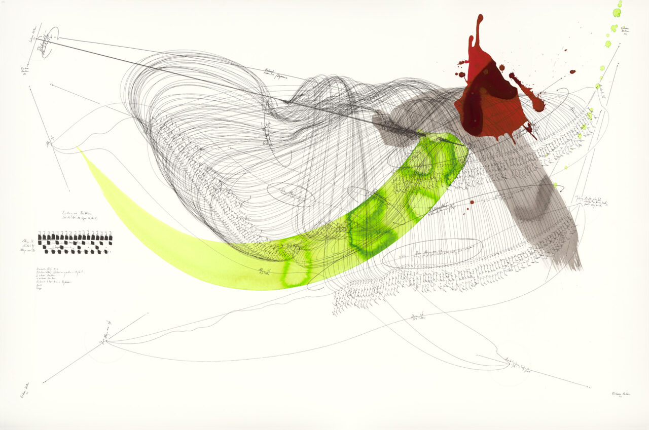 Flachdruck, jeweils mit Zeichentusche überarbeitet, Bleistift