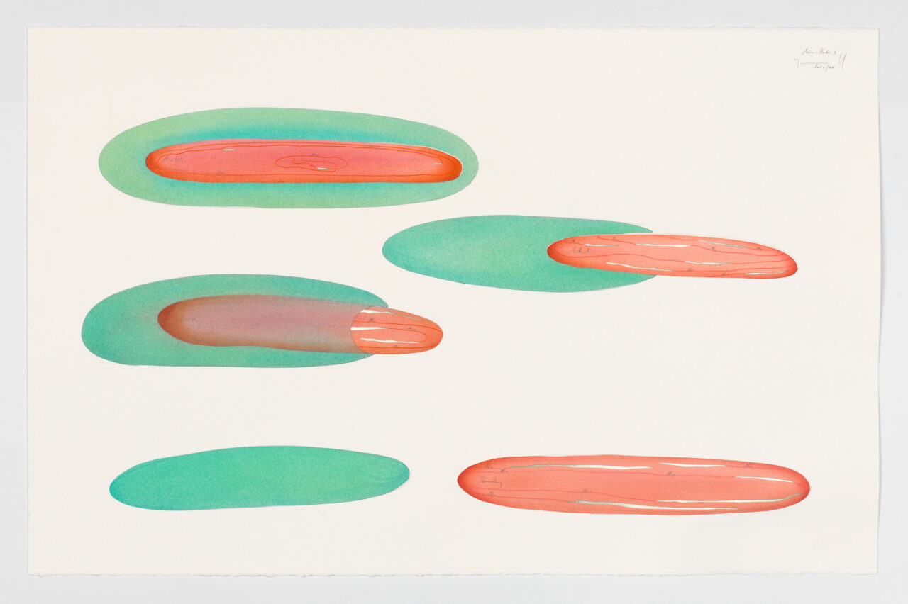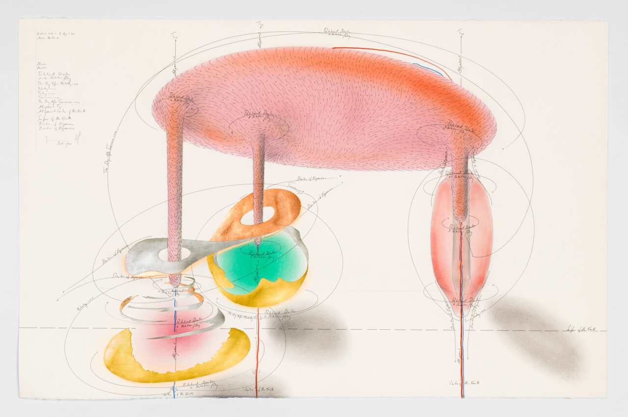 Ink, gold leaf, oil chalks, pastels, pencil on paper, unique, signed