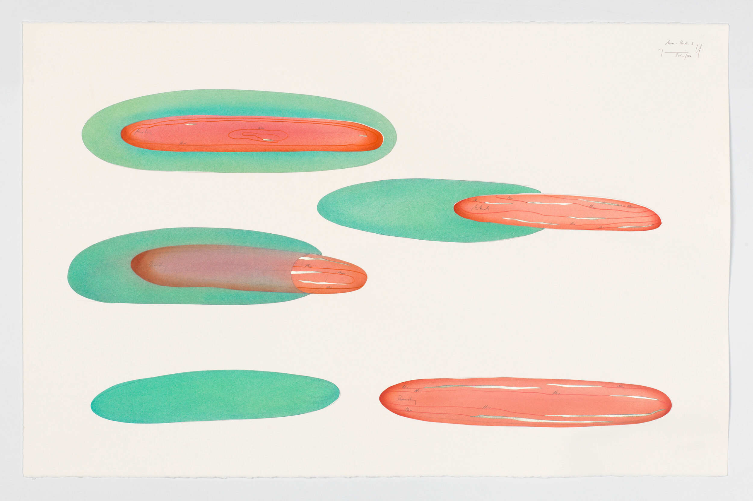 Tinte, Blattgold, Ölkreide, Pastell, Bleistift auf Papier Unikat Signiert