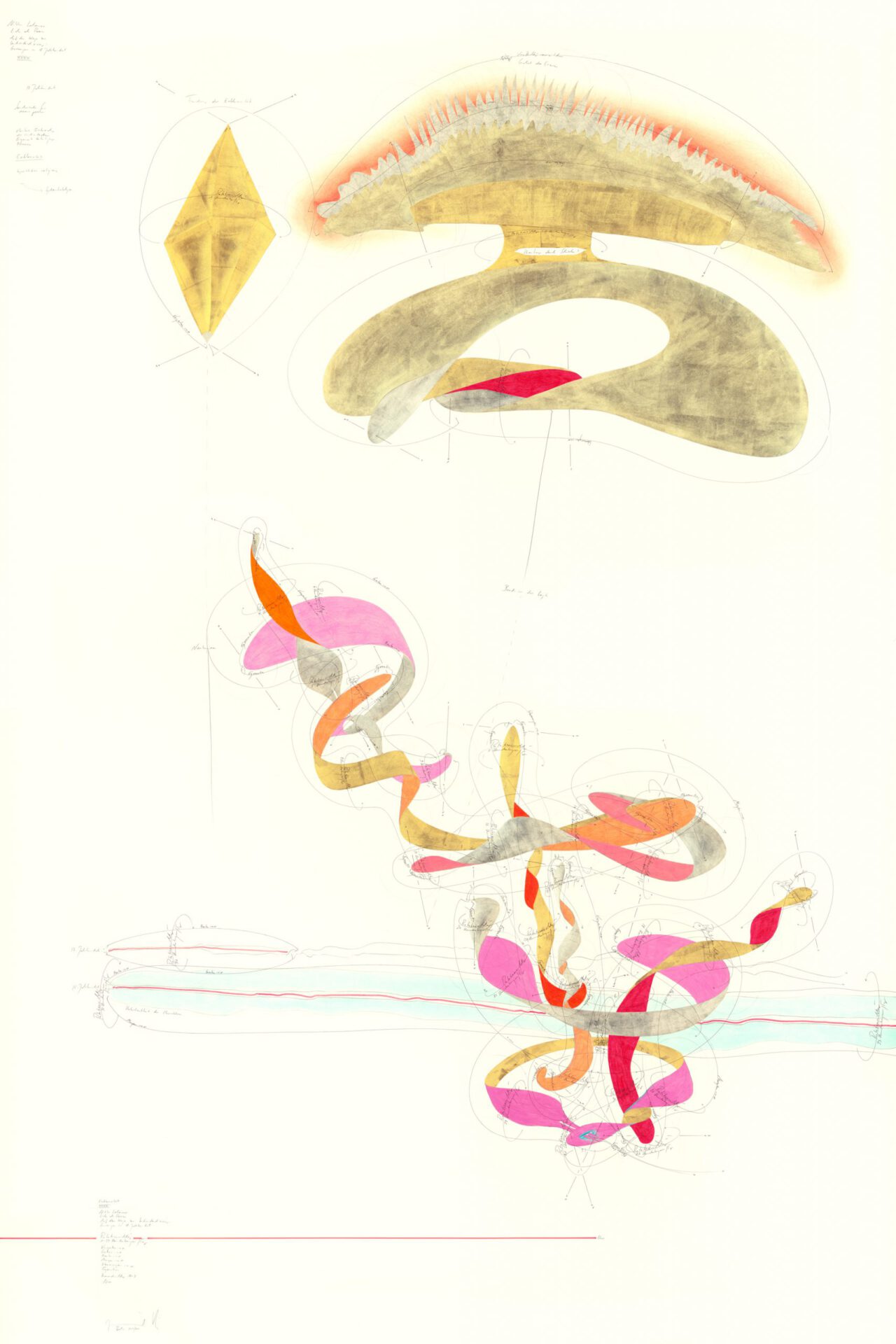 Ink, gold leaf, graphite, pastels, oil chalks, unique, signed