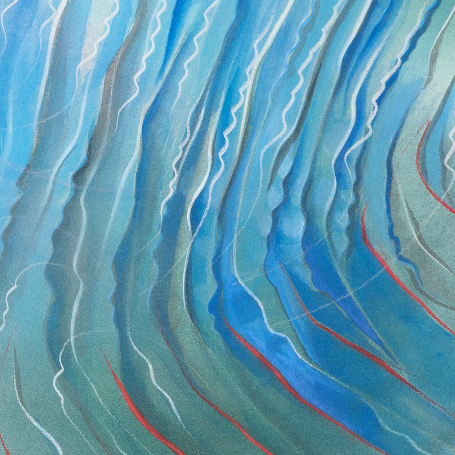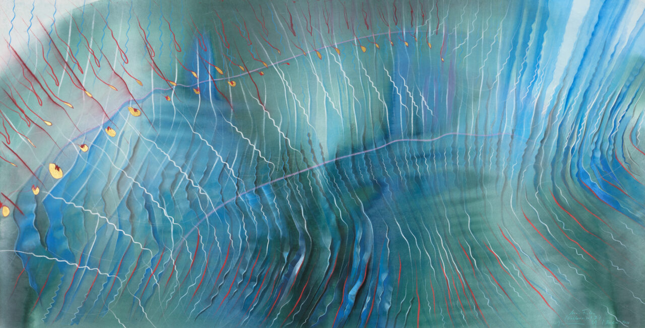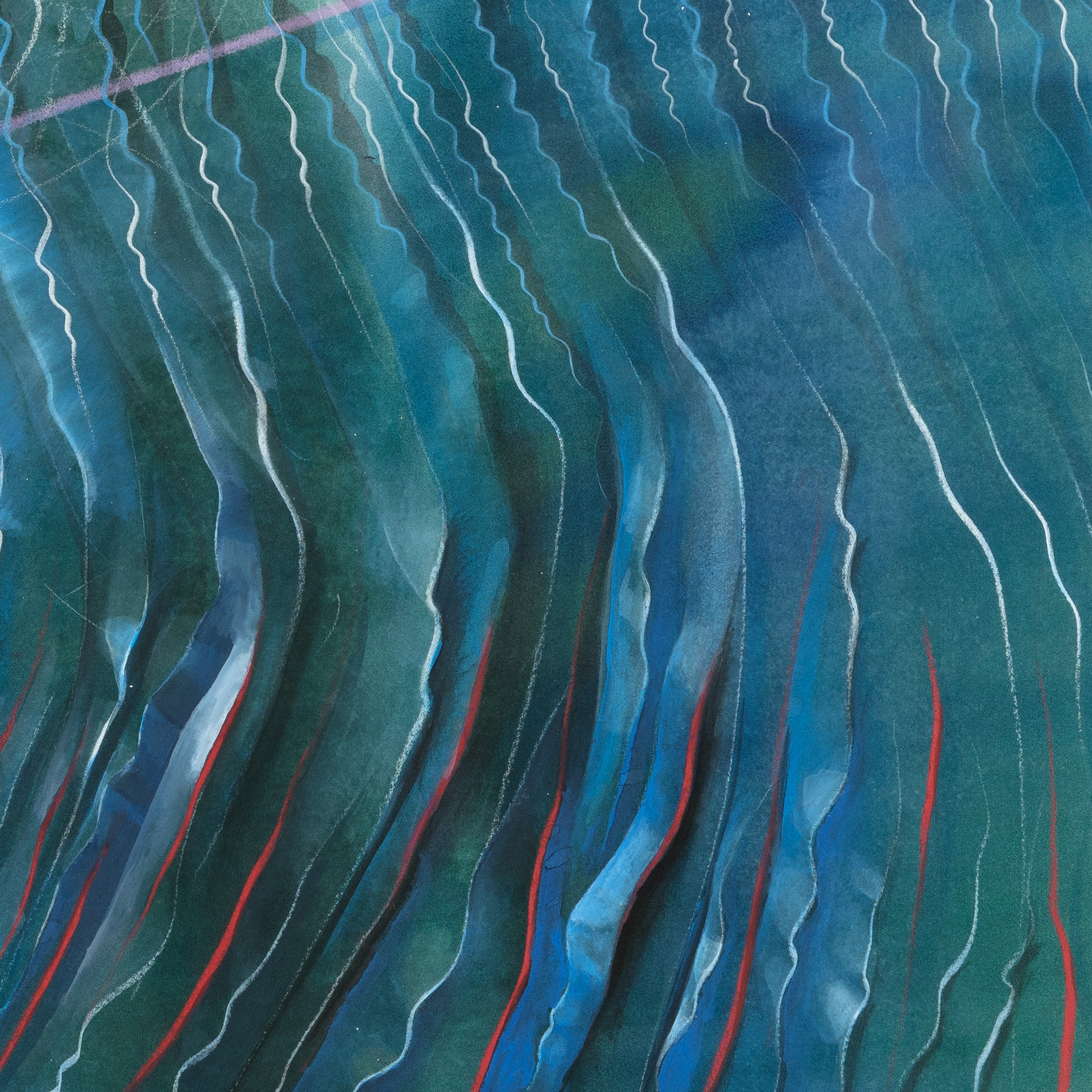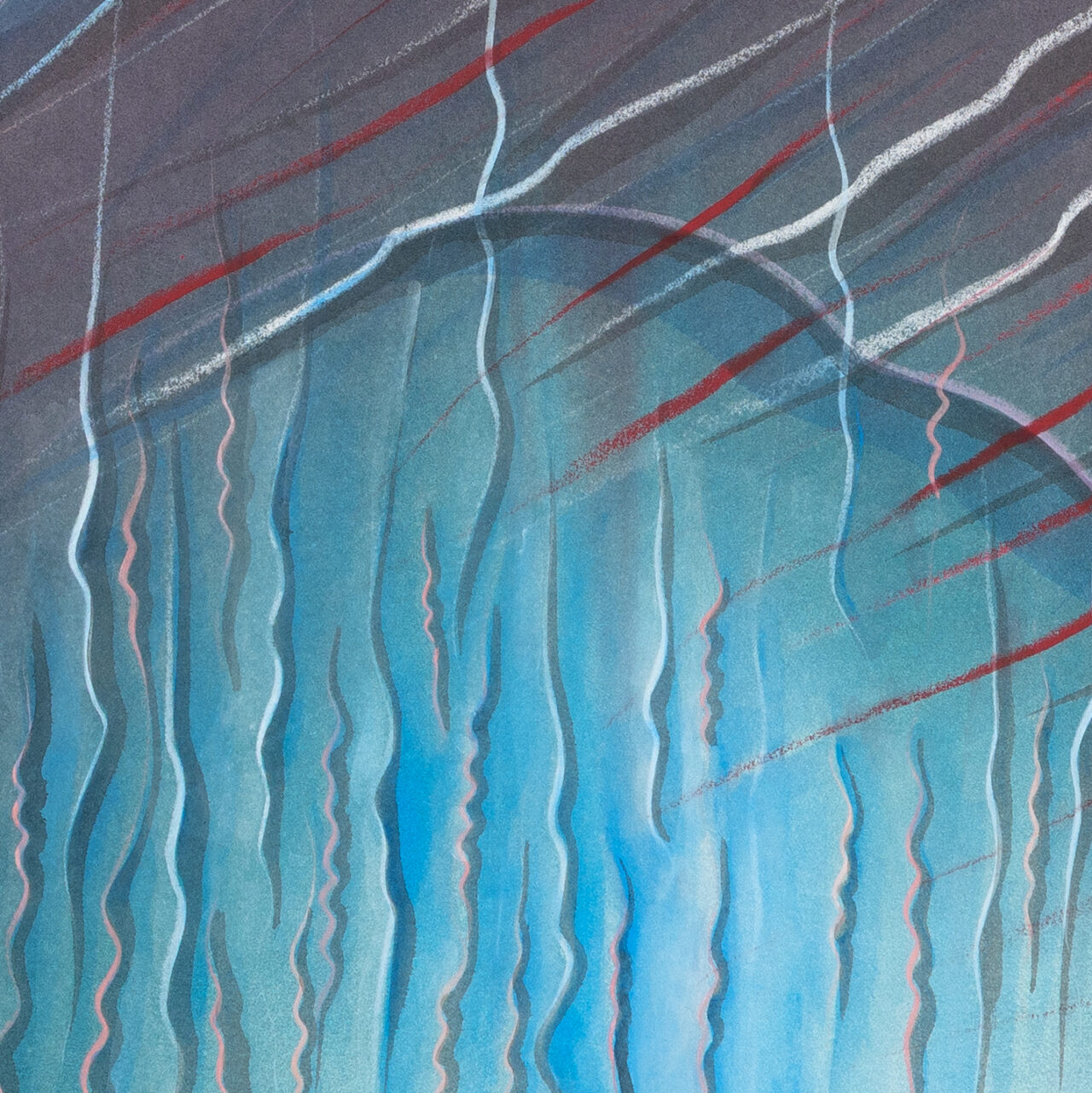 Tinte, Pastell, Farbstift, Gold auf Papier