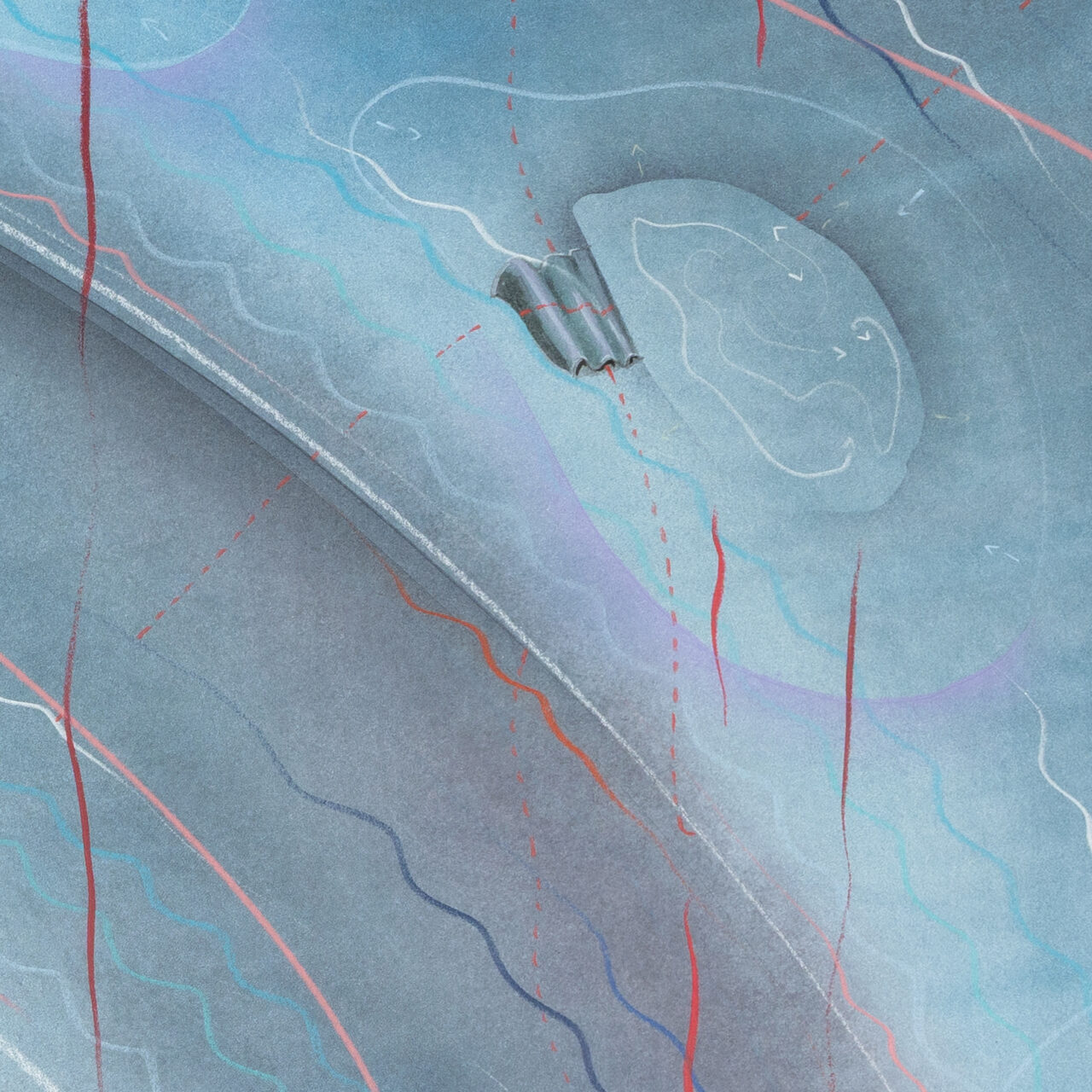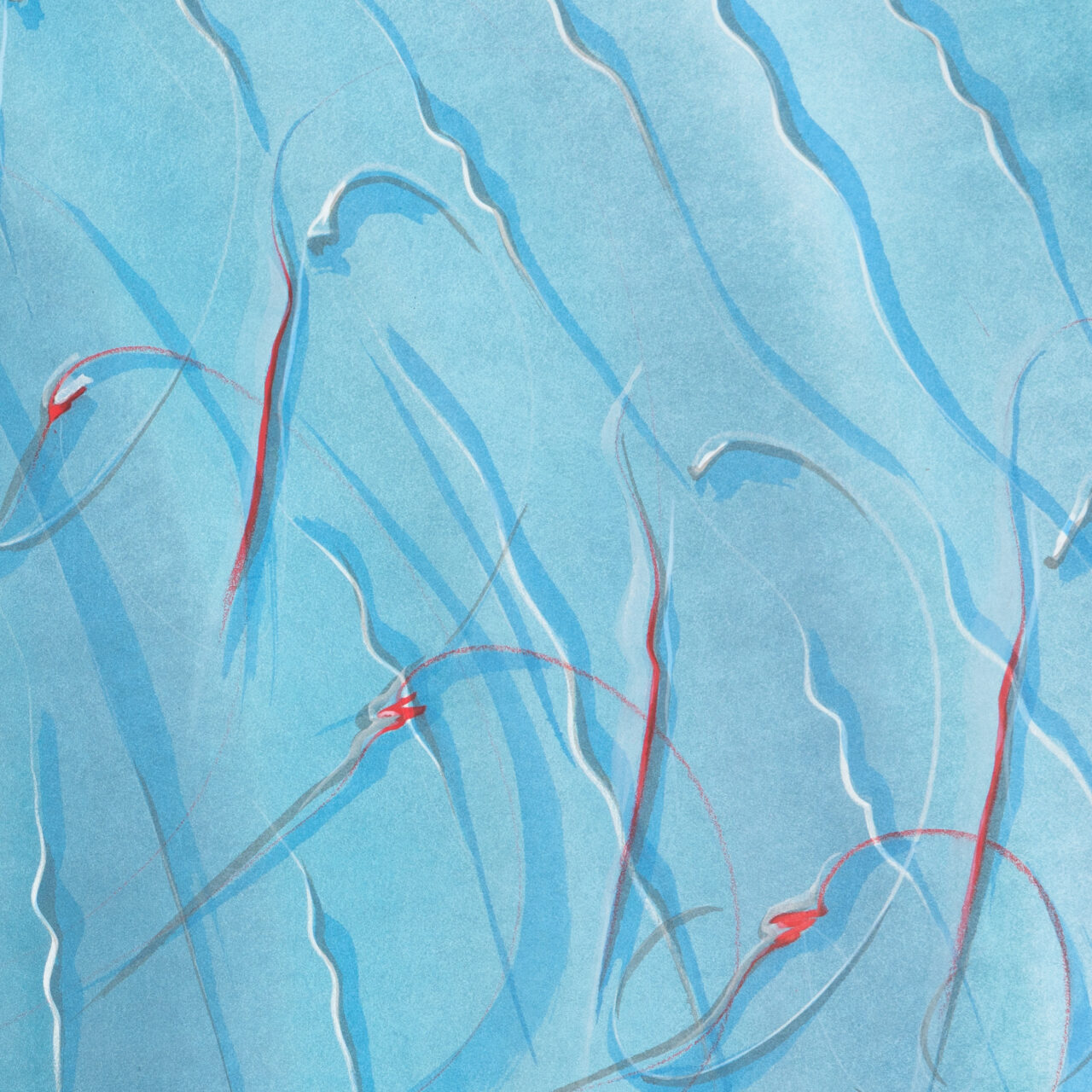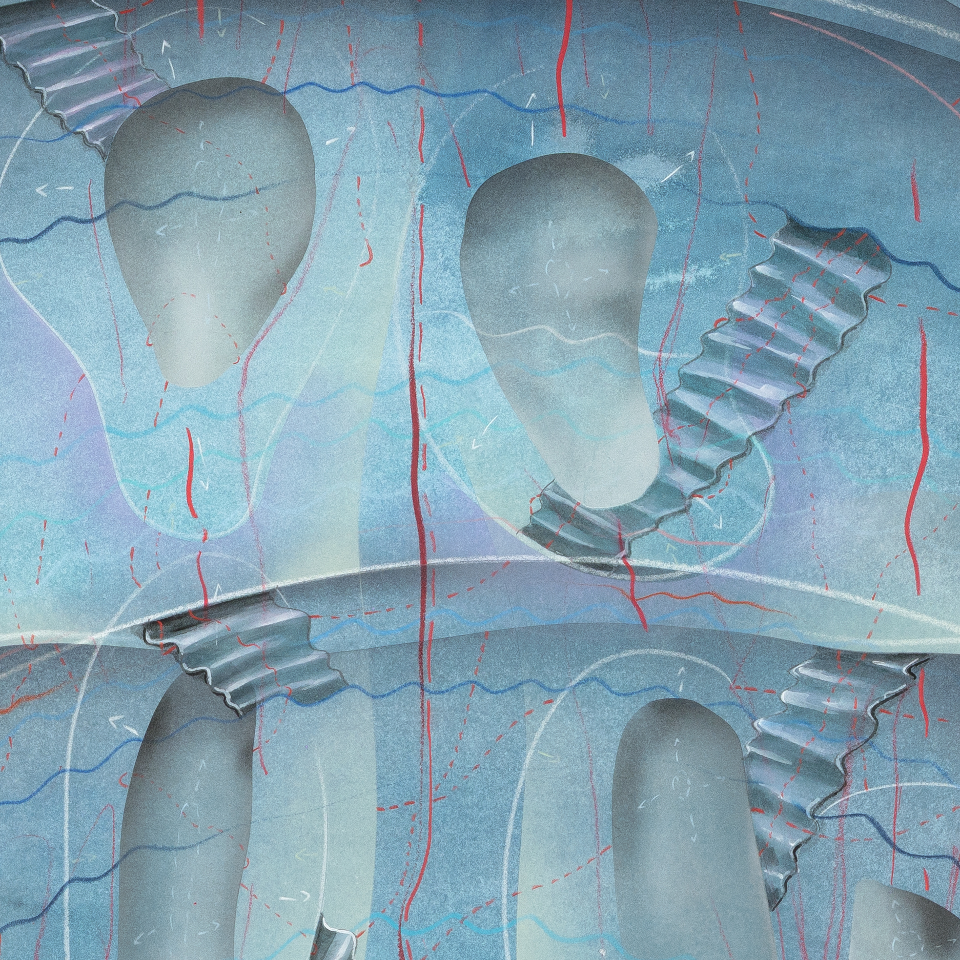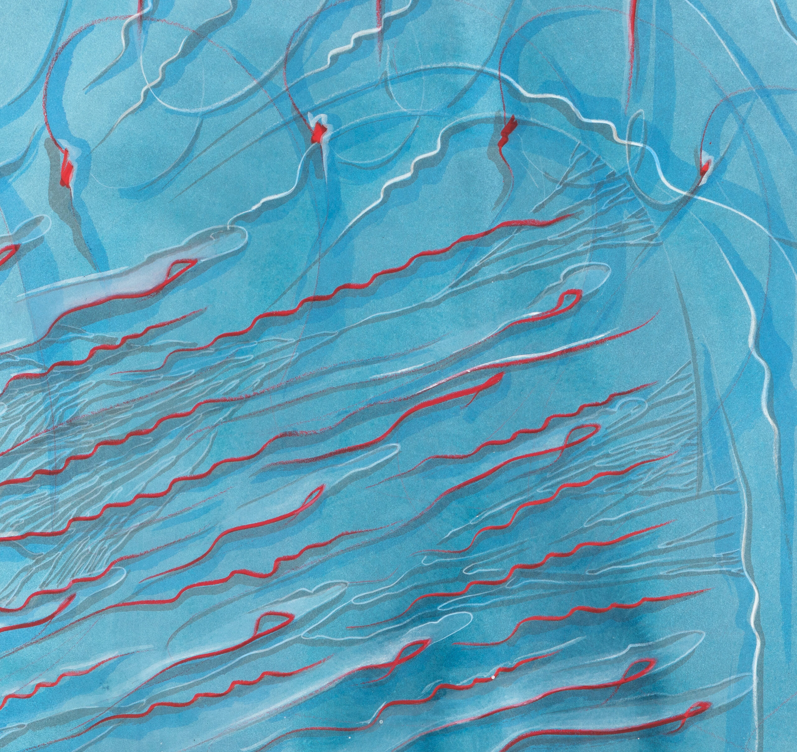 Tinte, Pastell, Farbstift, Gold auf Papier