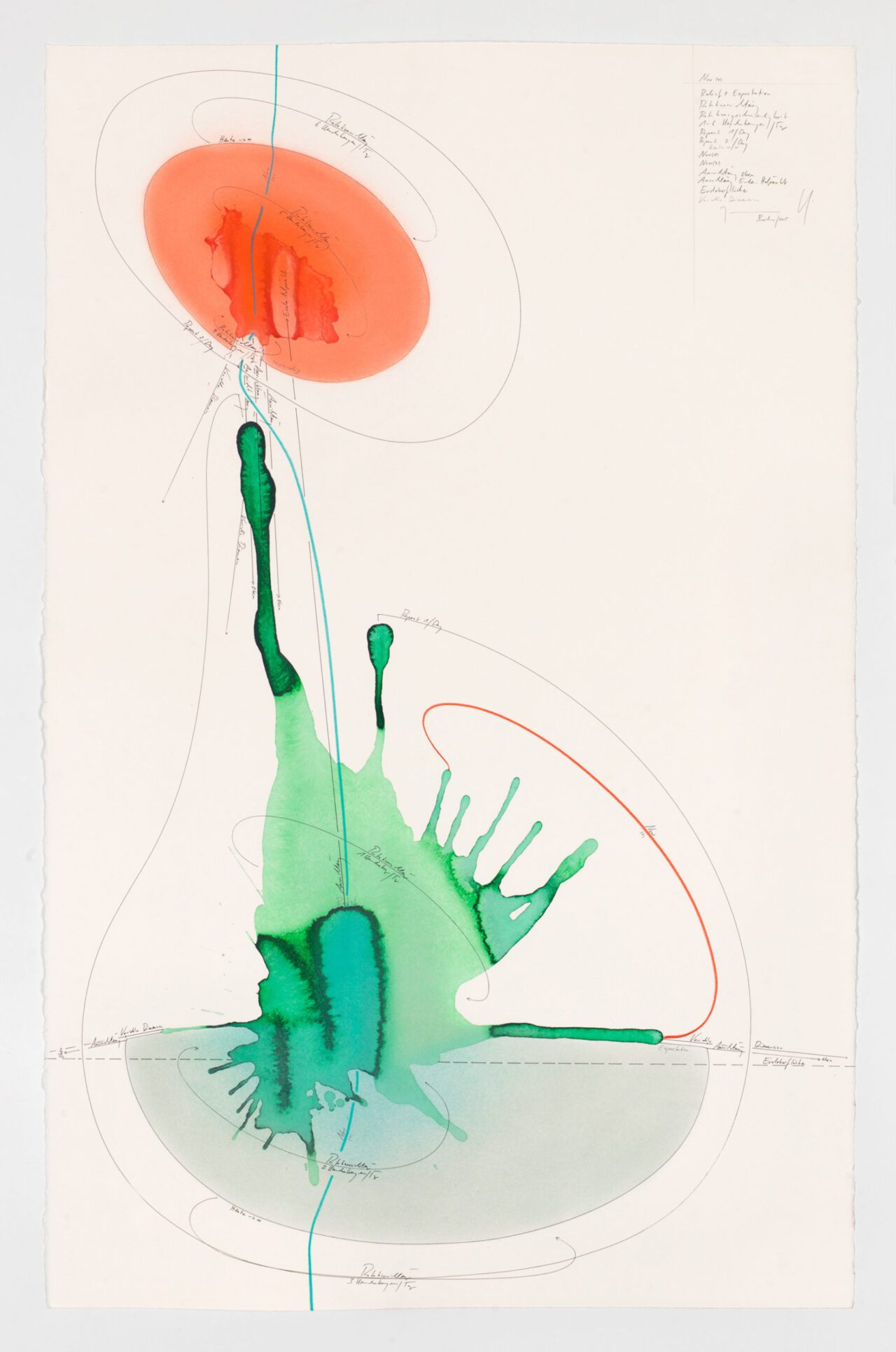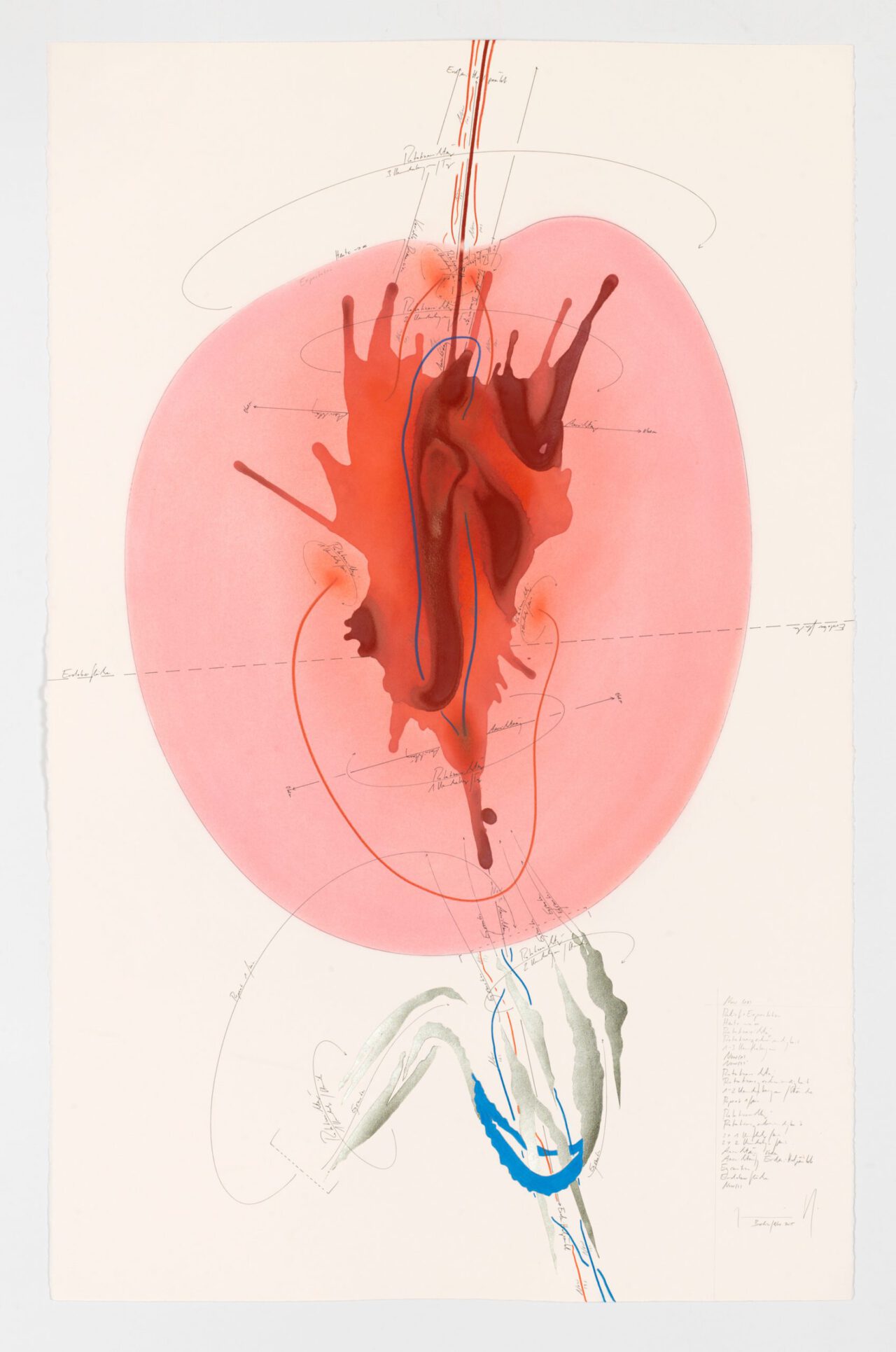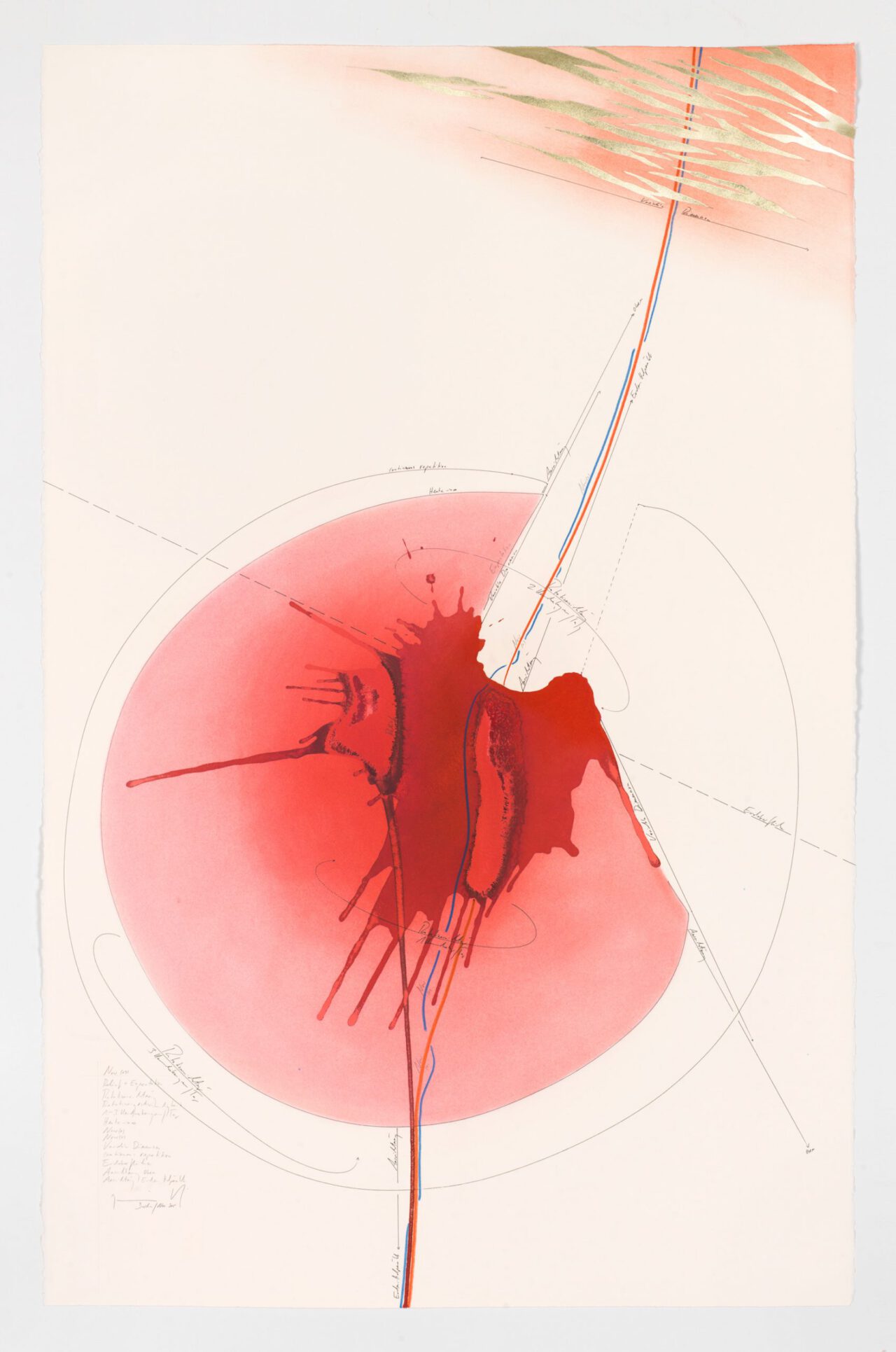 Tinte, Tusche, Ölkreide, Blattgold, Pastell, Bleistift auf Papier Unikat Signiert