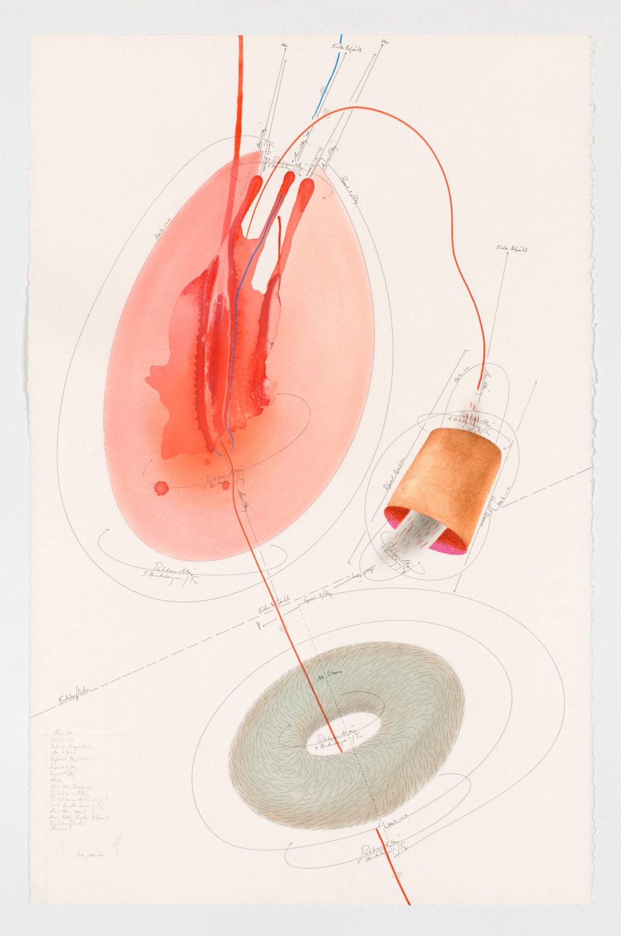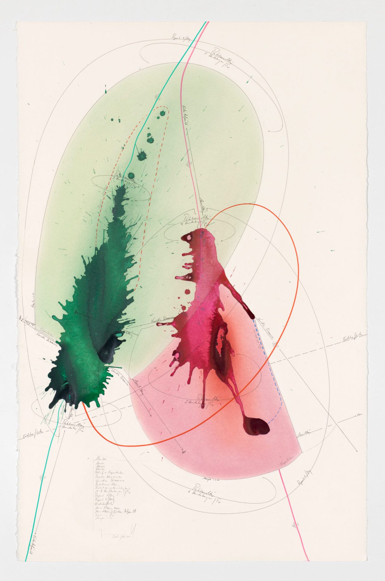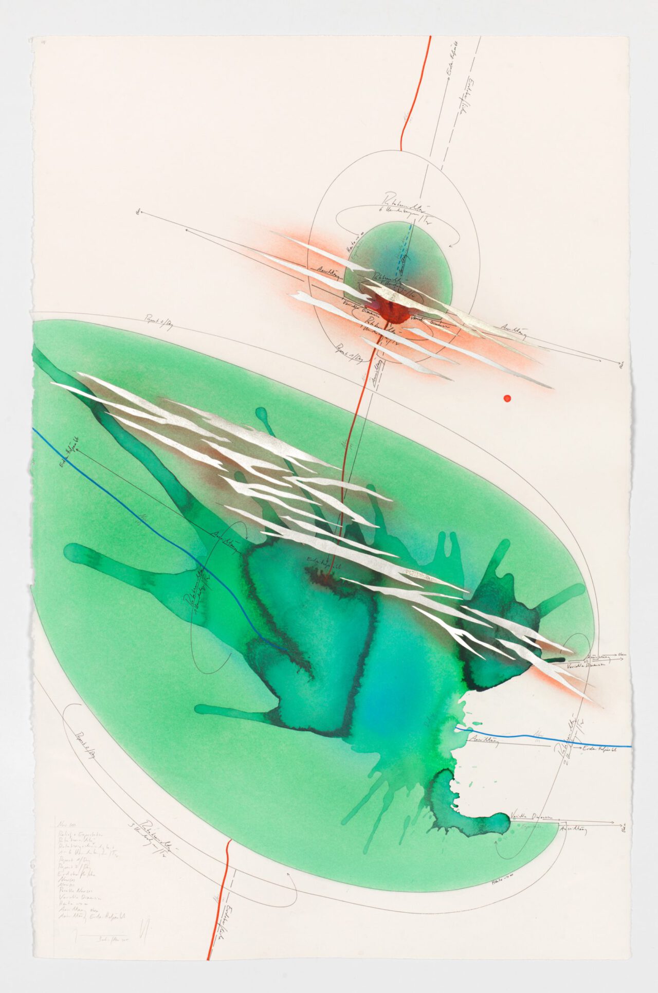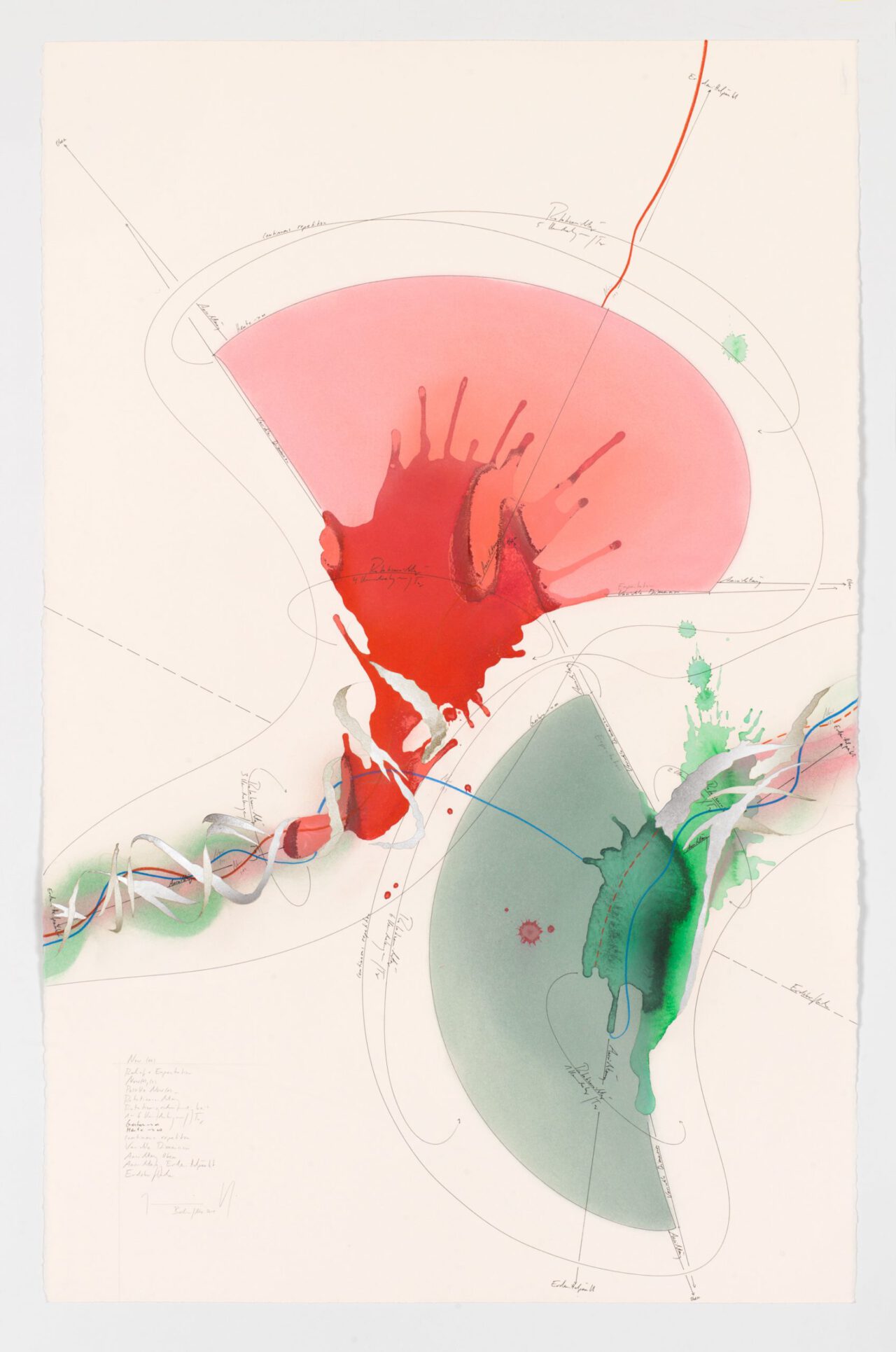 Tinte, Tusche, Ölkreide, Blattgold, Pastell, Bleistift auf Papier Unikat Signiert