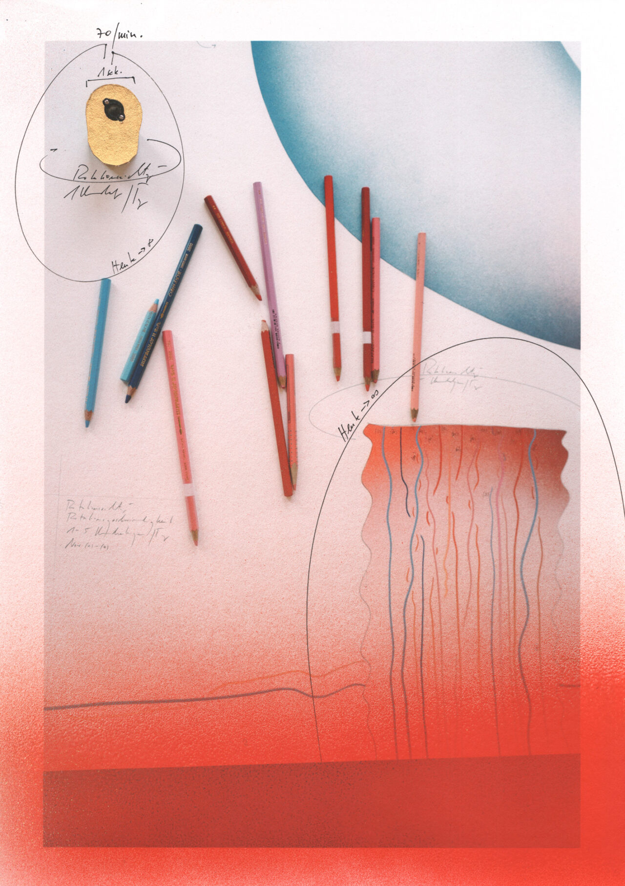 Tinte, Ölkreide, Acrylfarbe auf Fine Art Print Unikat