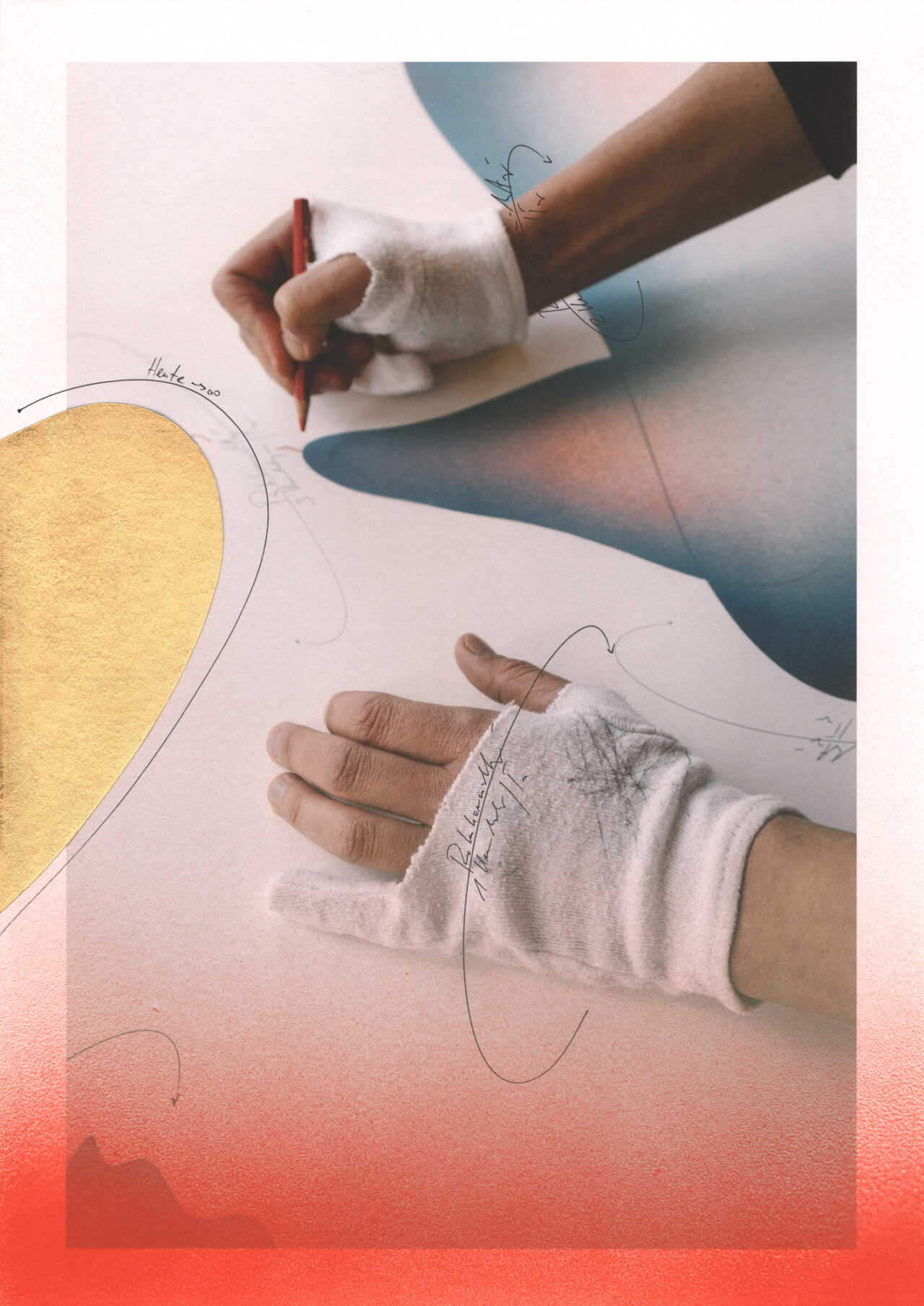 Ink, gold leaf, acrylic paint on Fine Art Print, unique