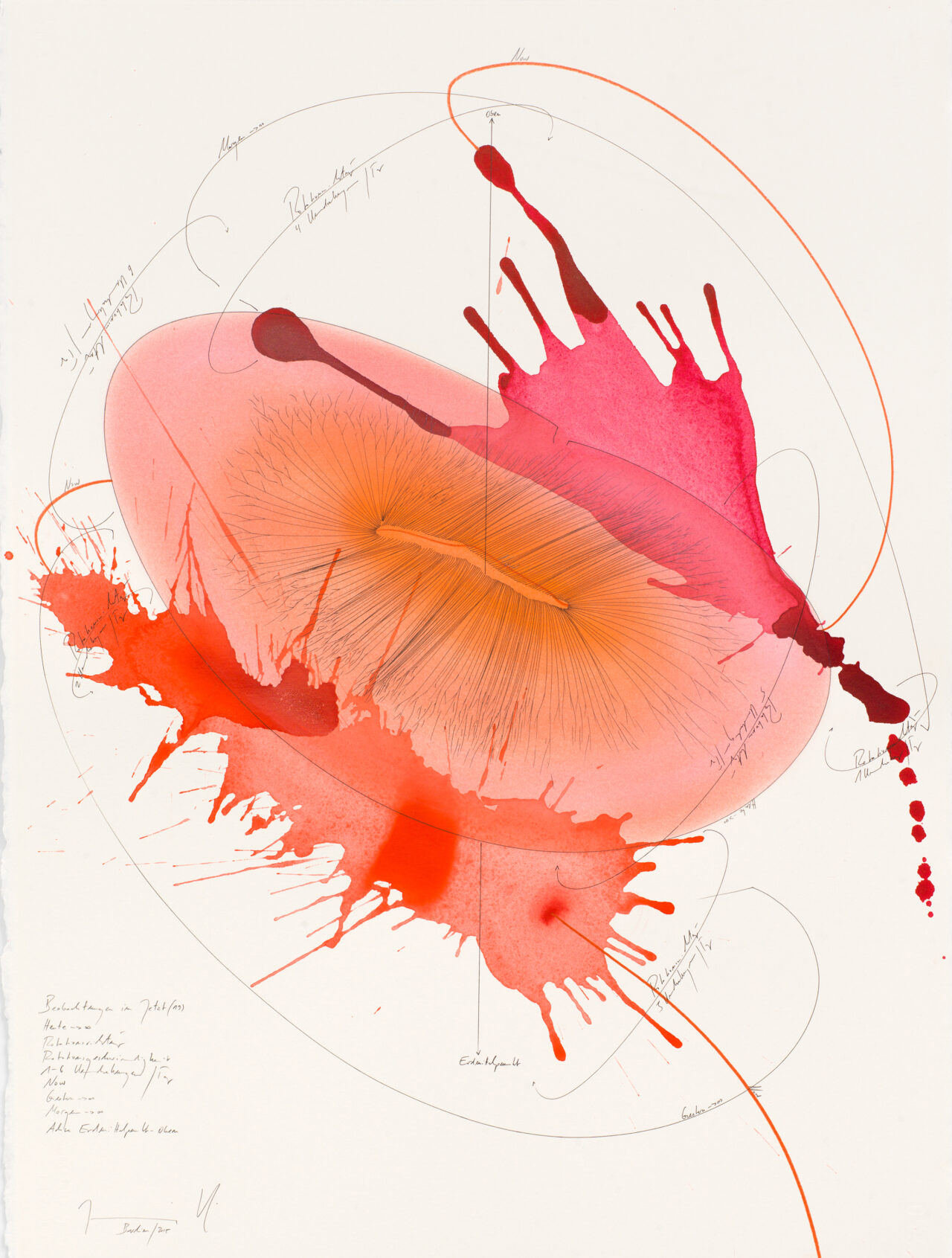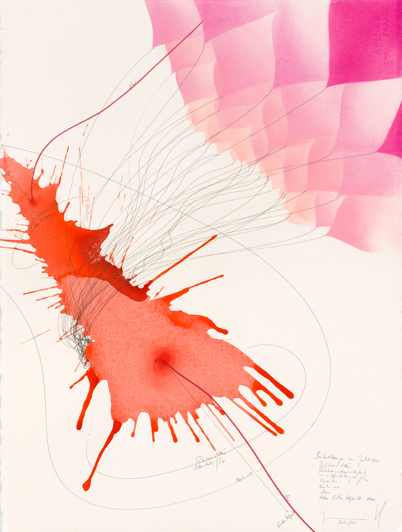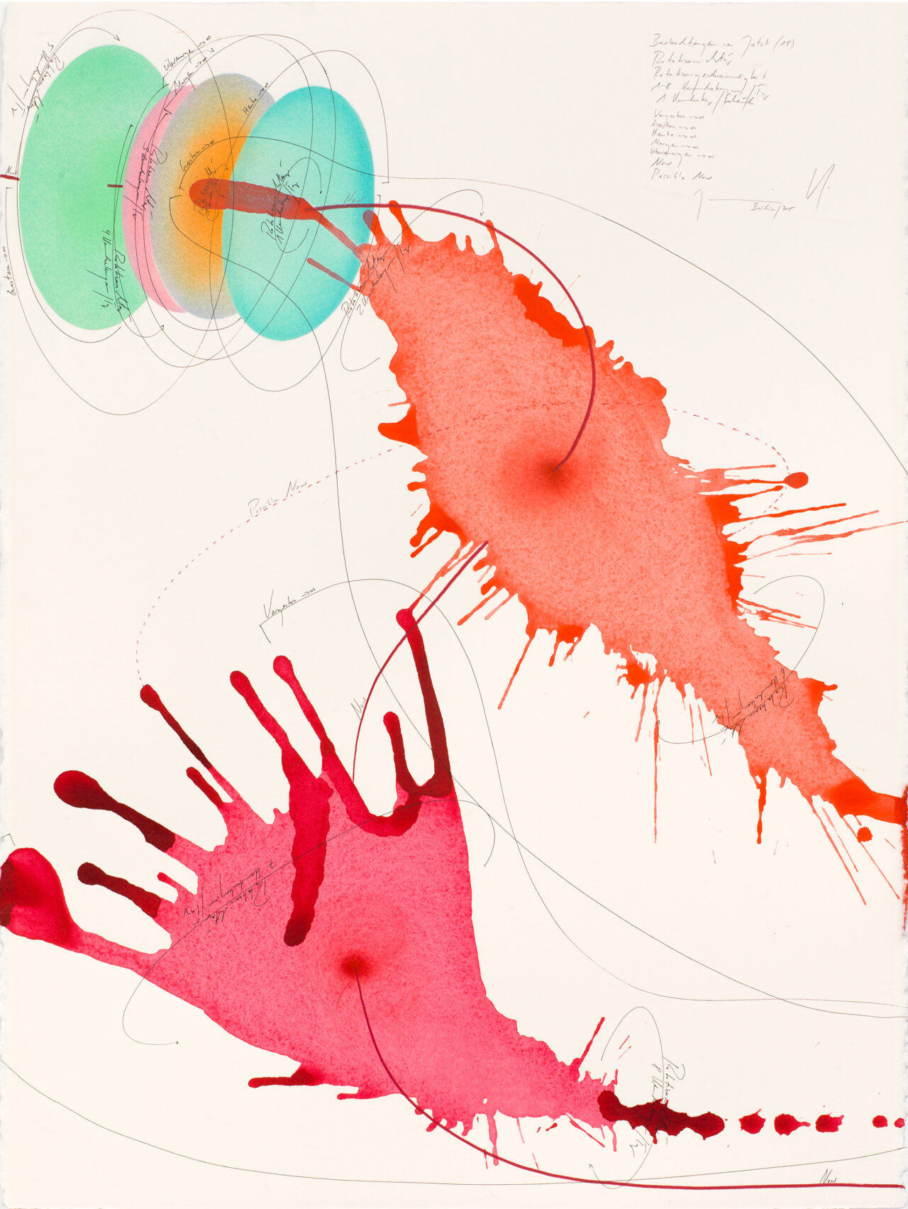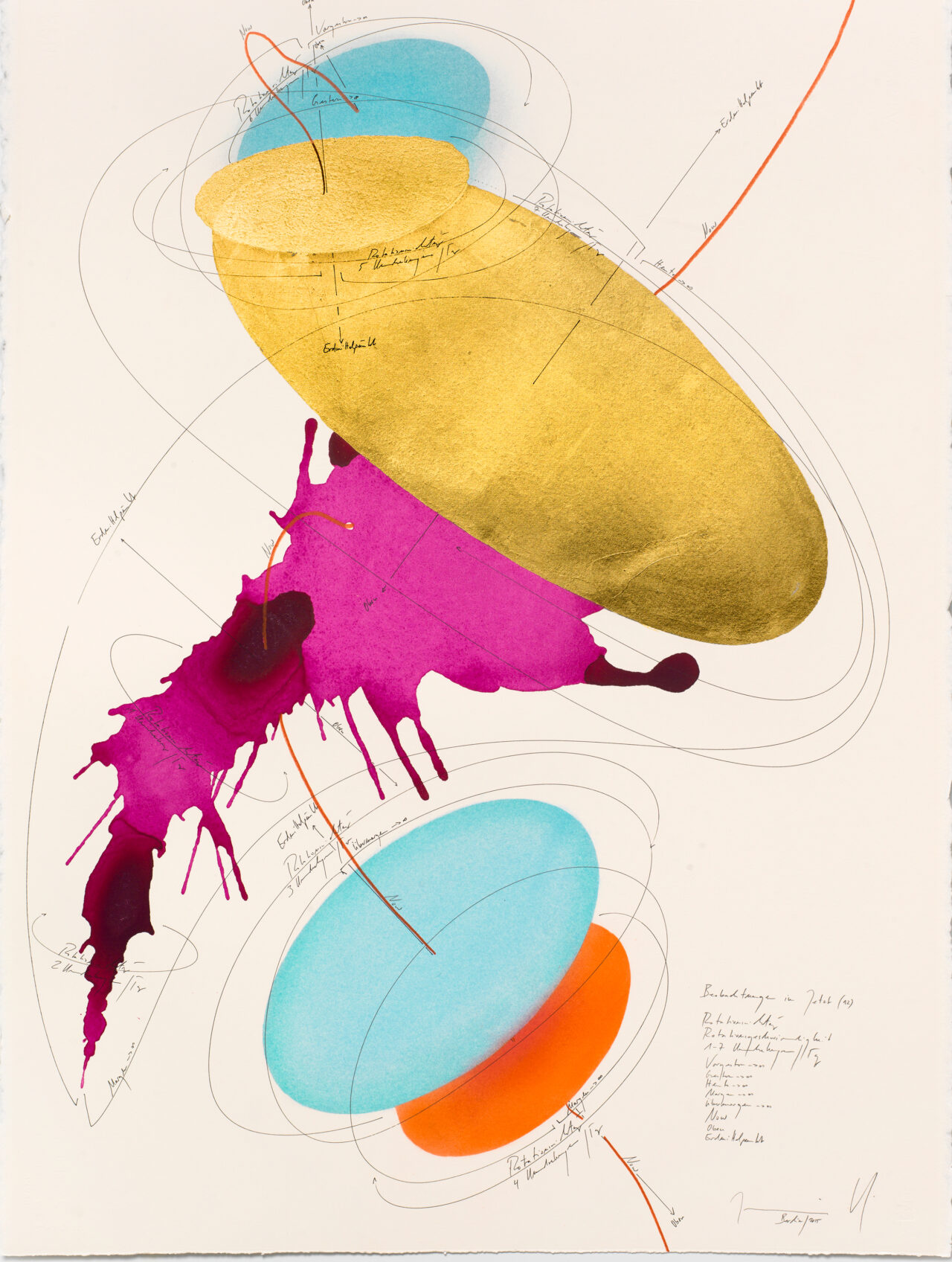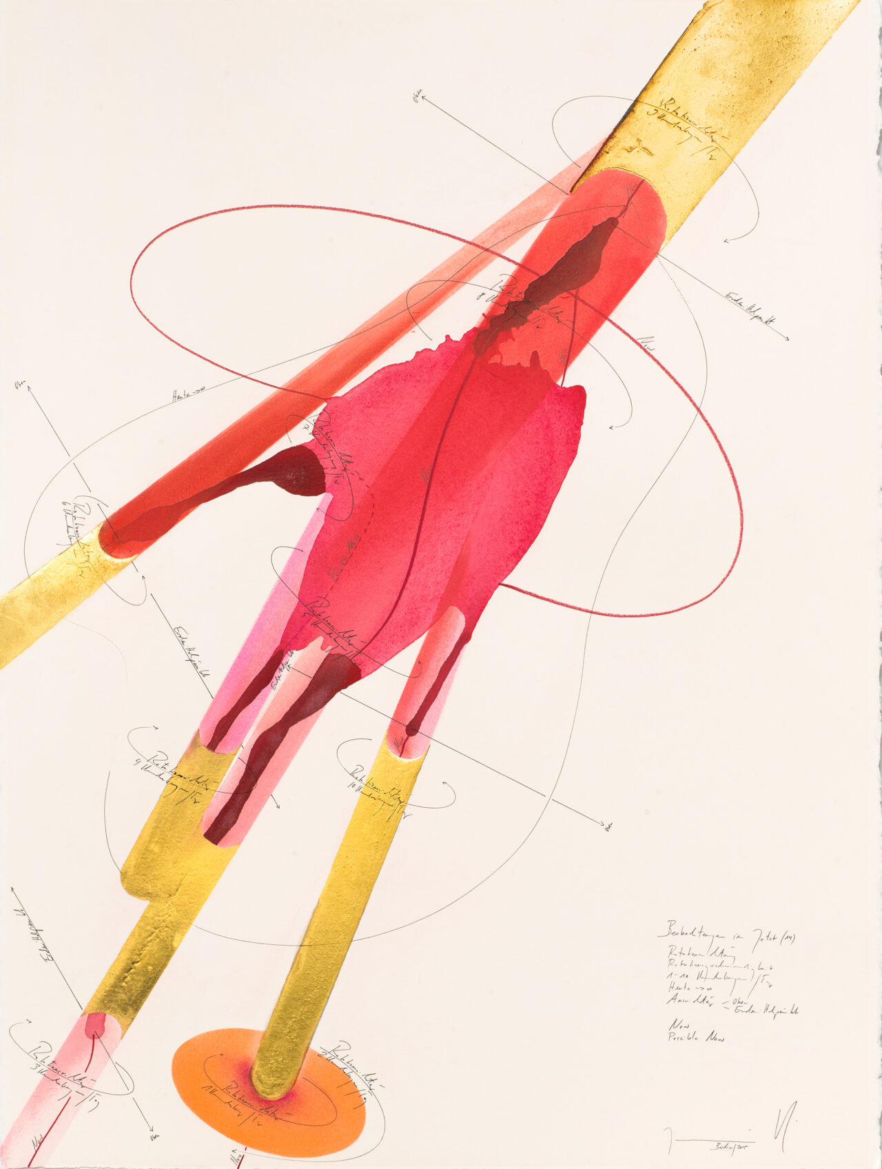 Ink, India ink, gold leaf, oil chalks, pastels, pencil on paper