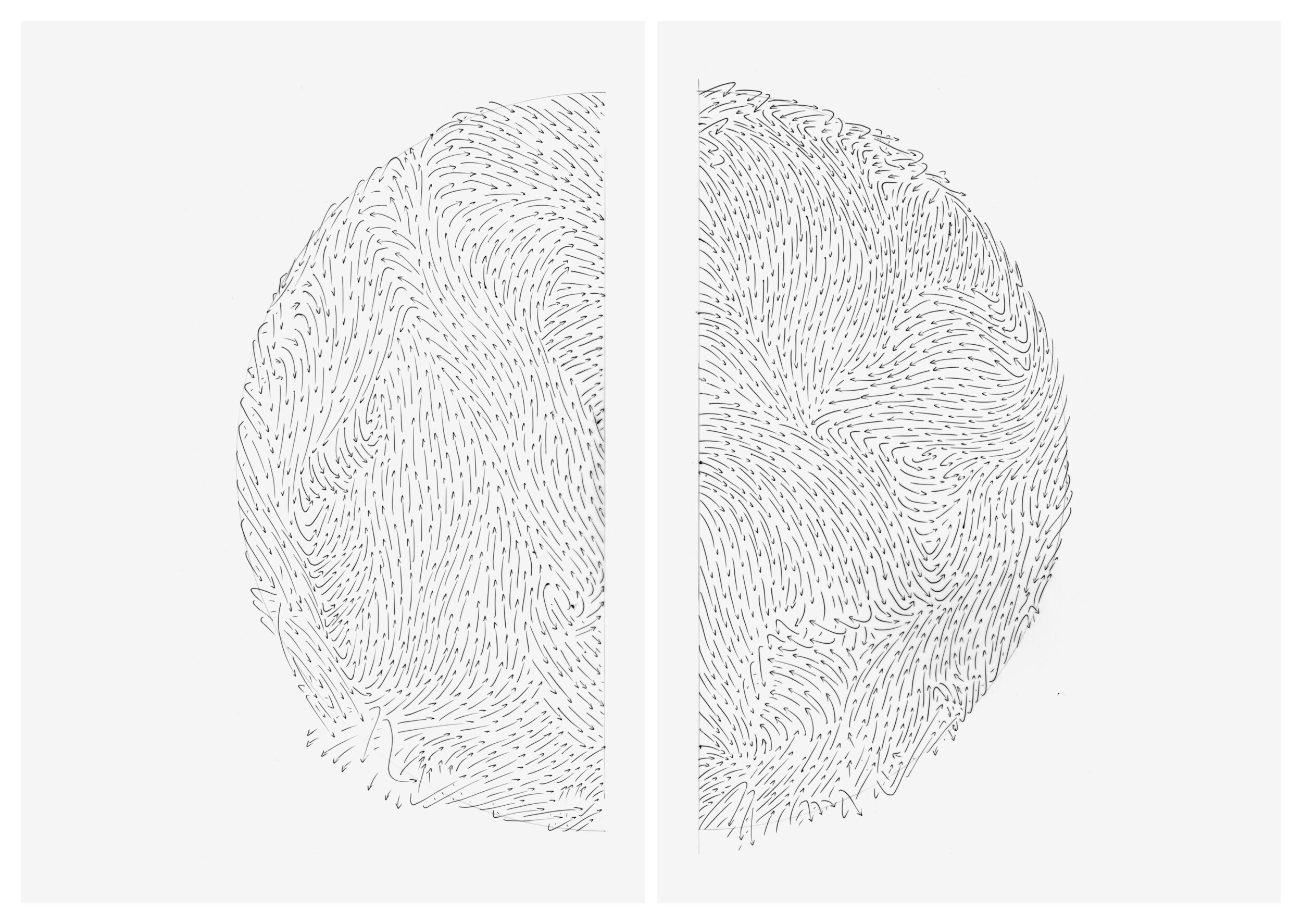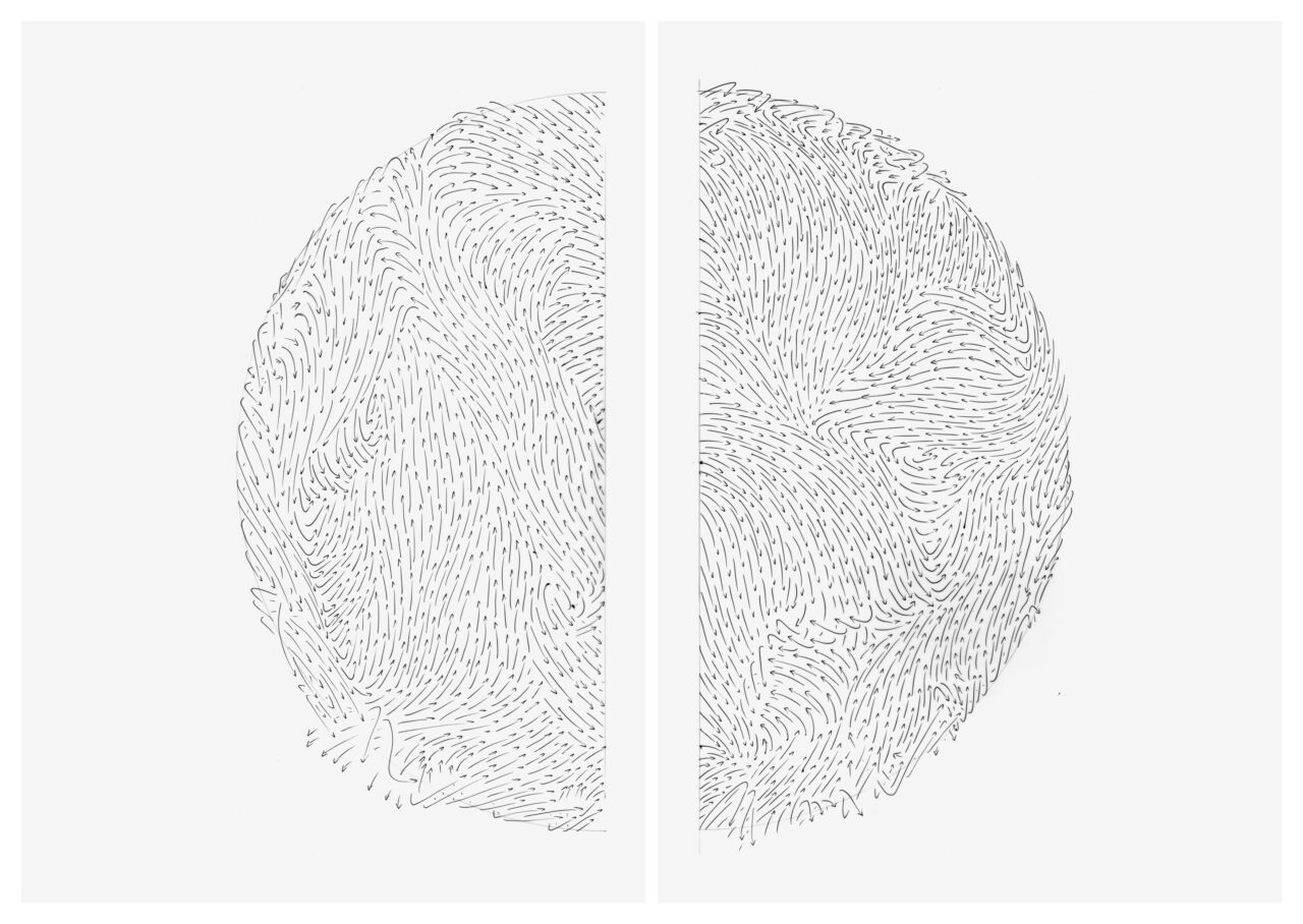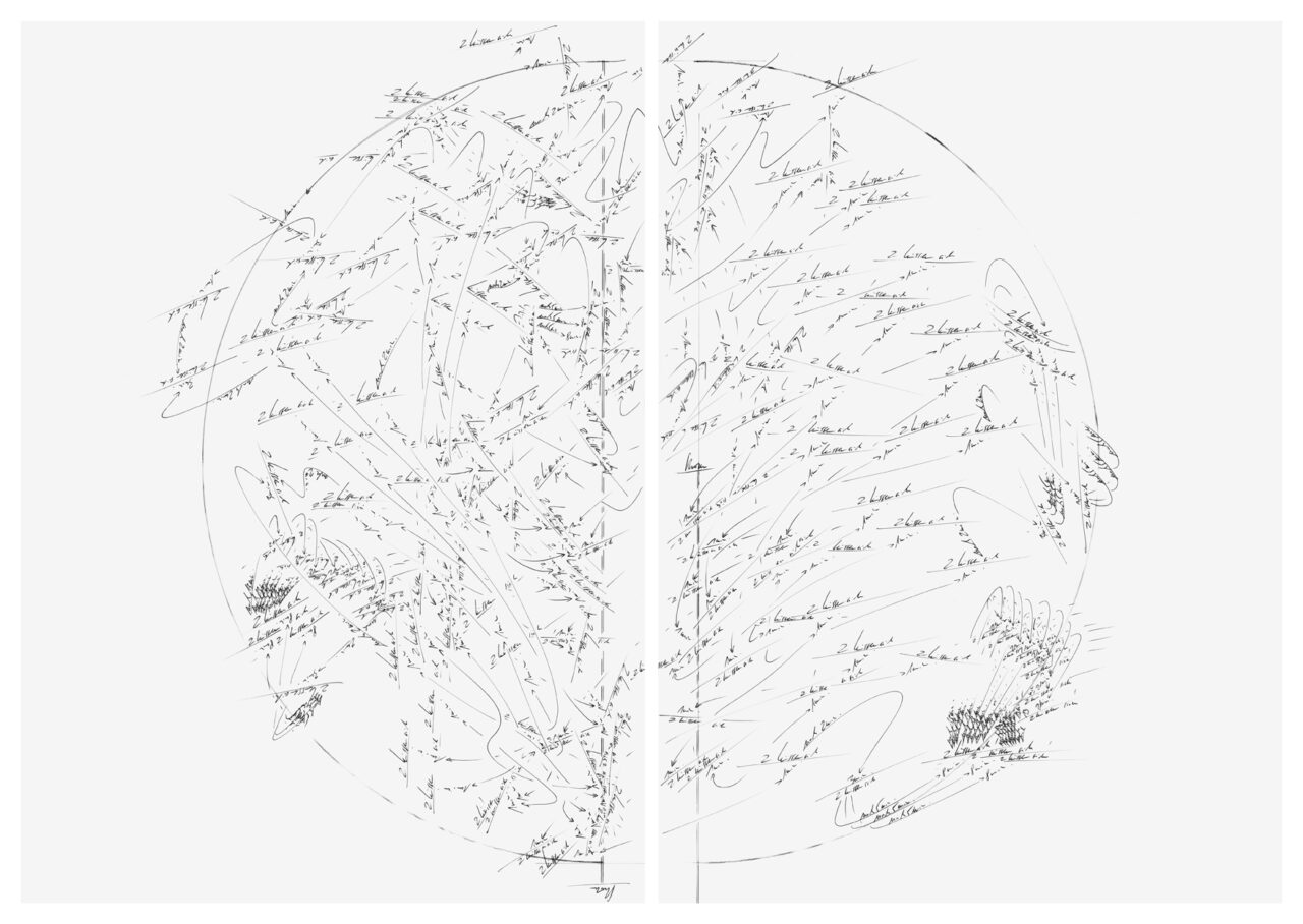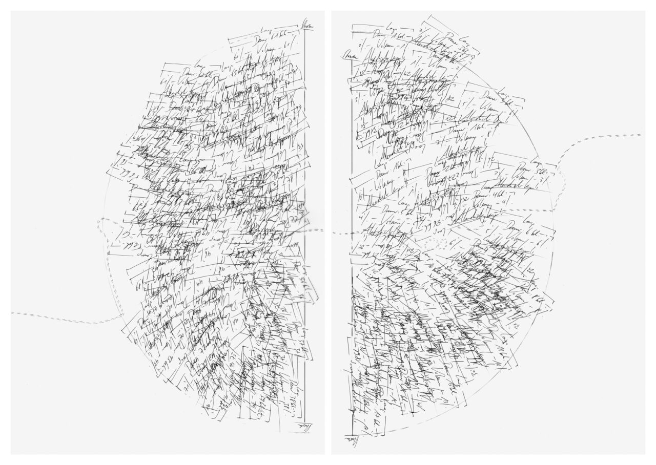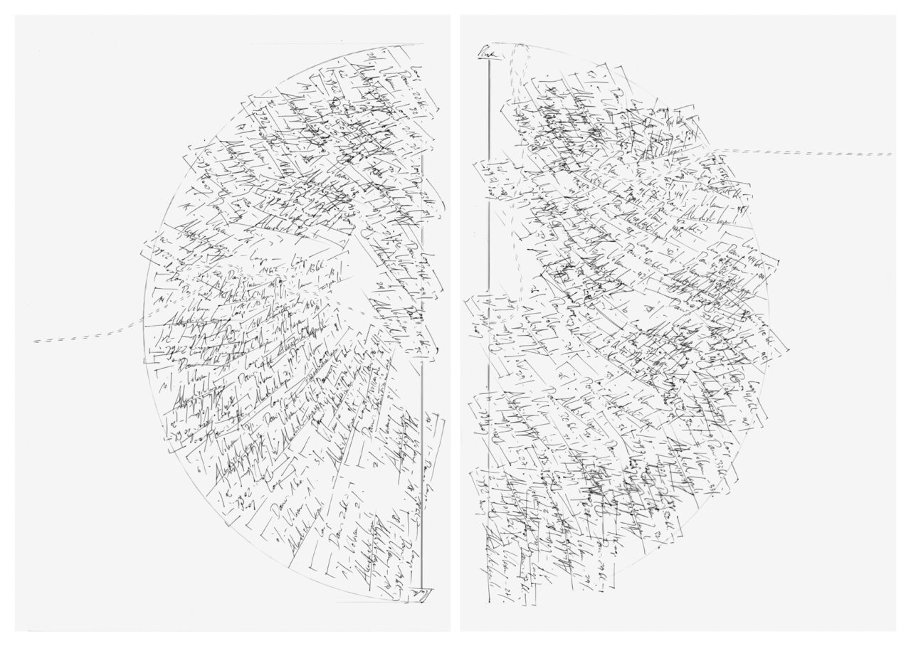 Bleistift, Kugelschreiber auf Umdruck-Papier, Unikat