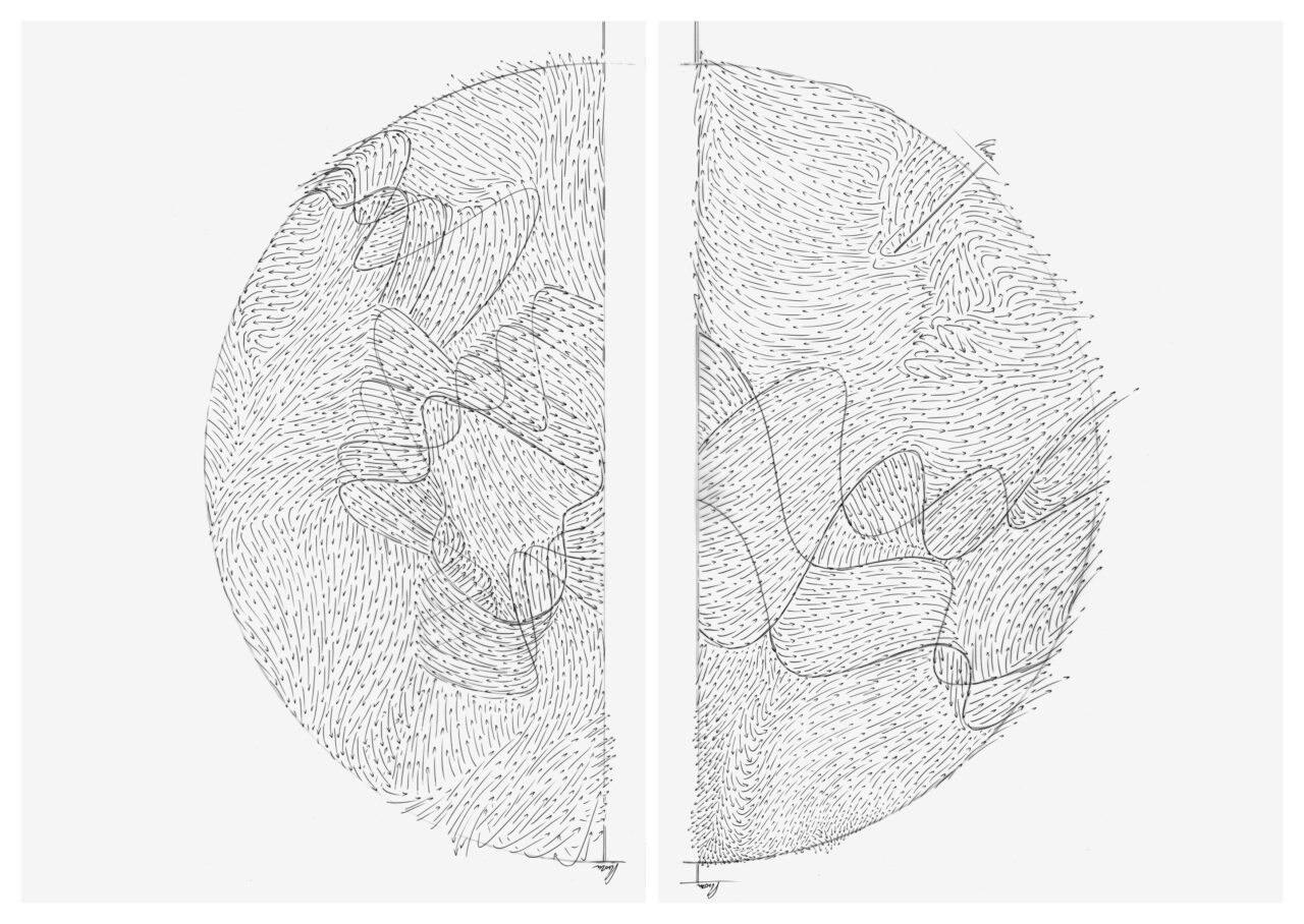 Pencil, ballpoint pen on transfer paper, unique