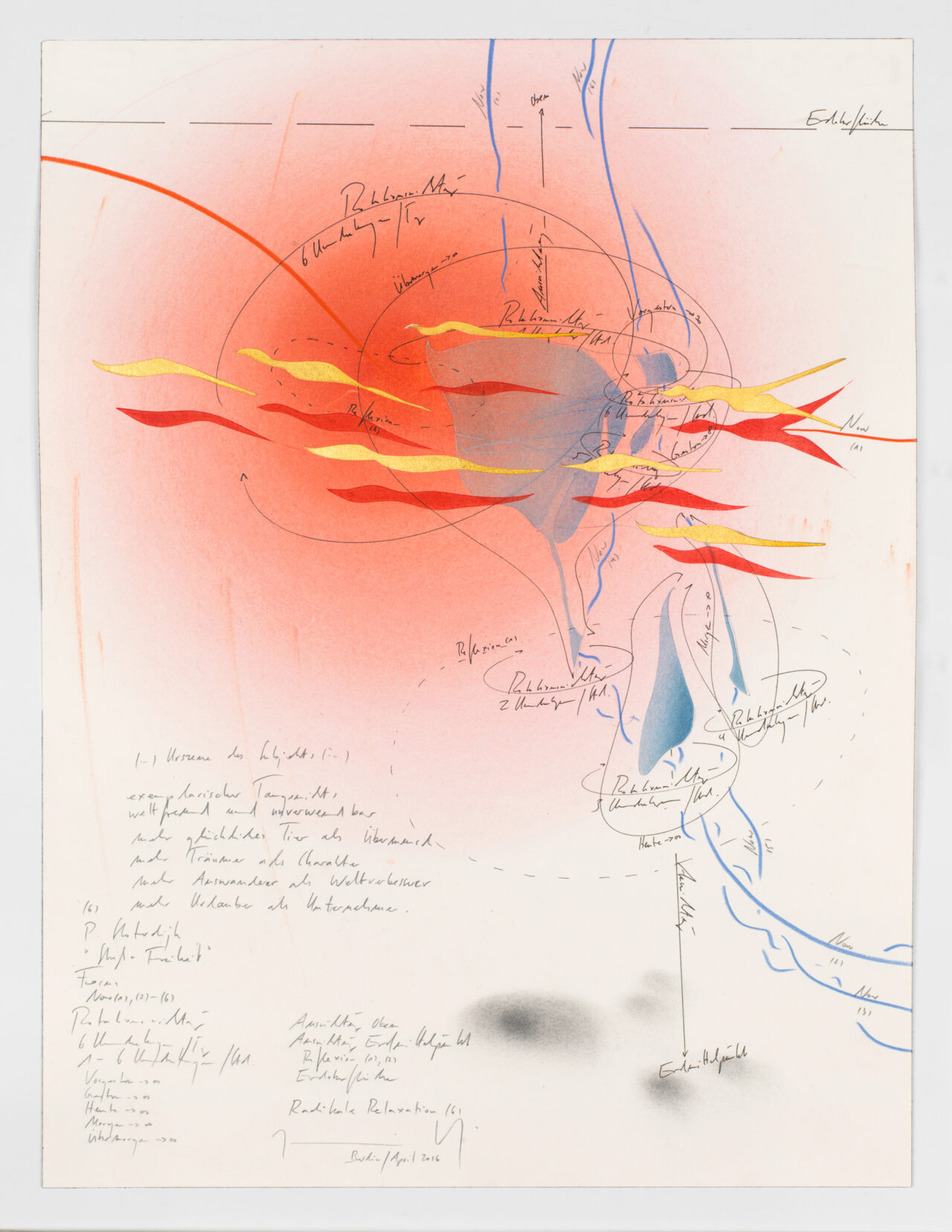 P. Sloterdijk “Streß + Freiheit” Now (1), (2), (3) Focus Rotationsrichtung 1 Umdrehung/ Tag 1, 2 Umdrehungen/ Stunde Heute → ∞ Reflexion (1) Erdoberfläche Ausrichtung oben Ausrichtung Erdmittelpunkt